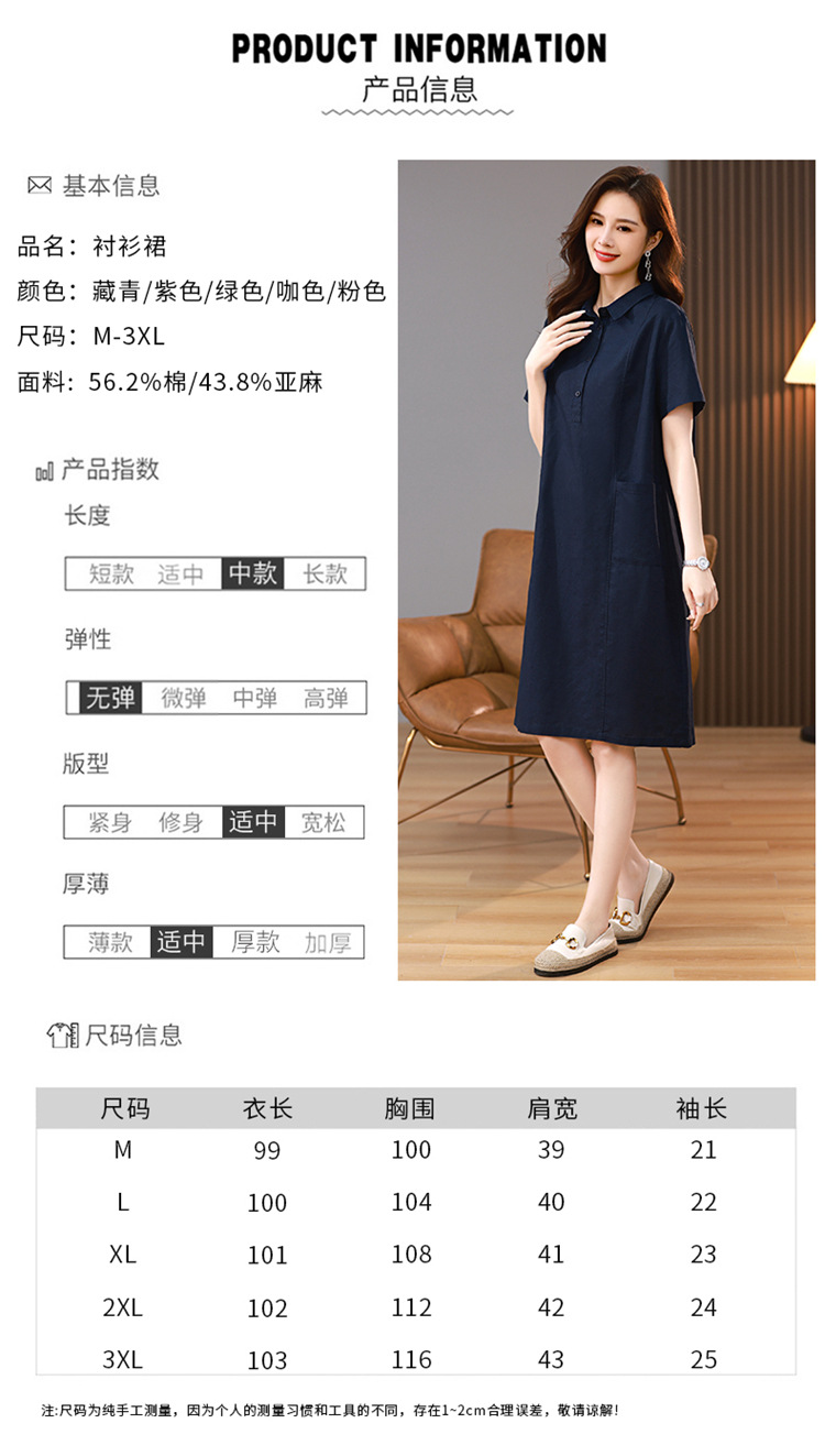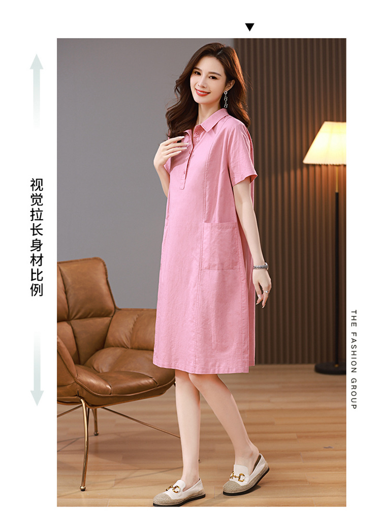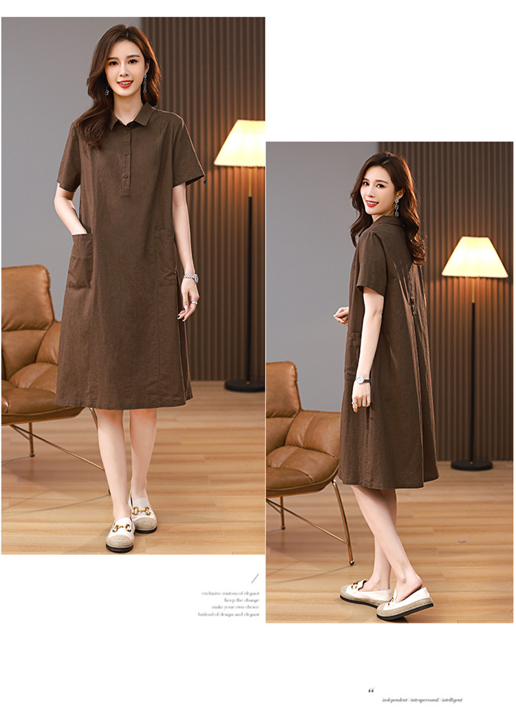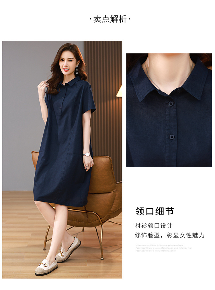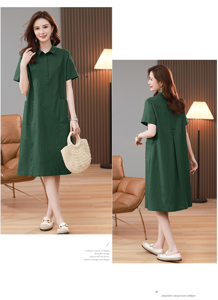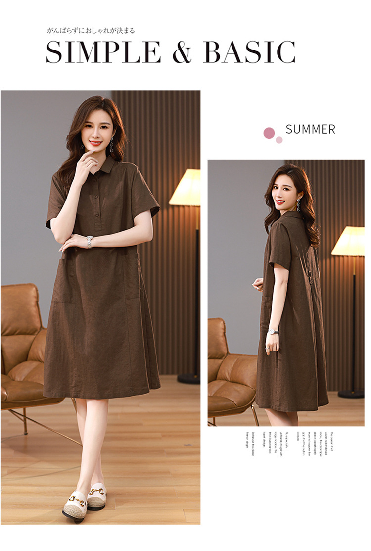 时尚复古棉麻风拼接,口袋纯色中长款连衣裙HR-WXN8536
