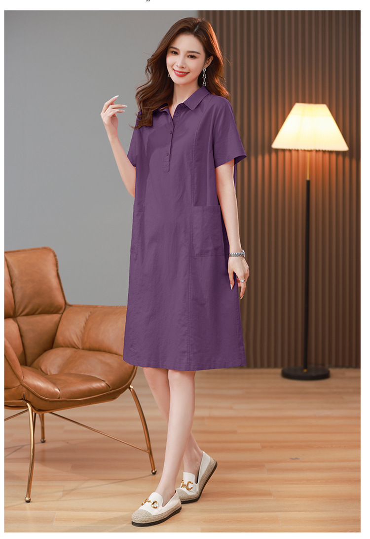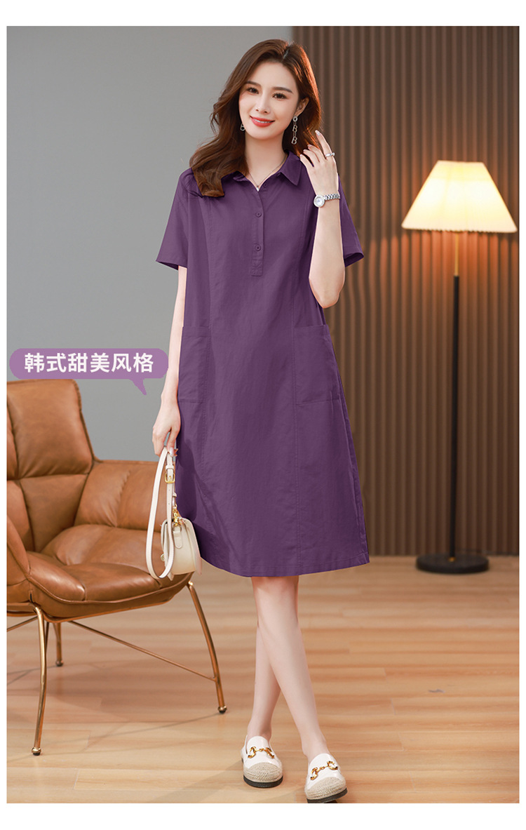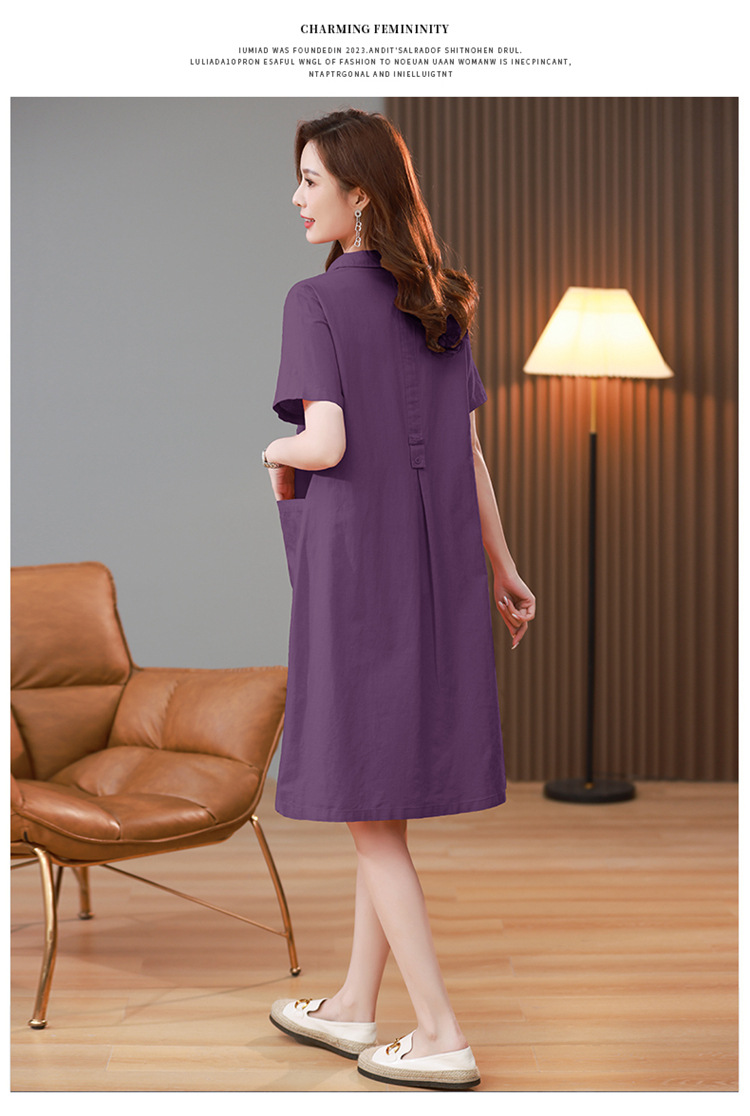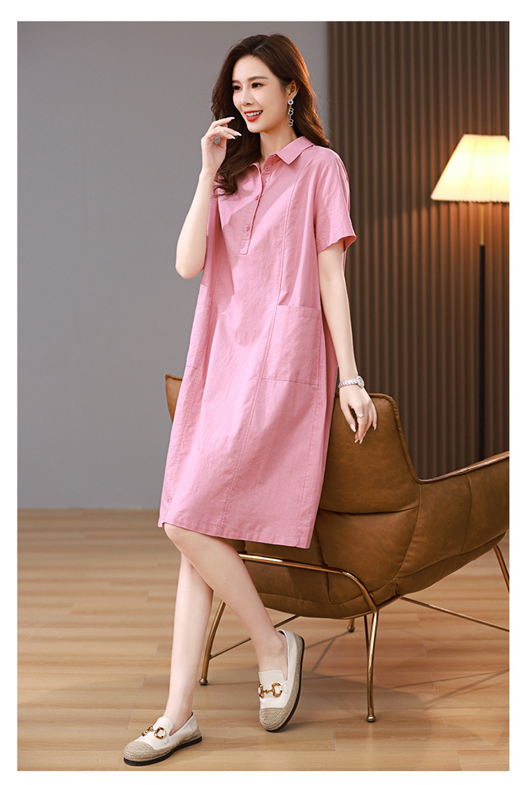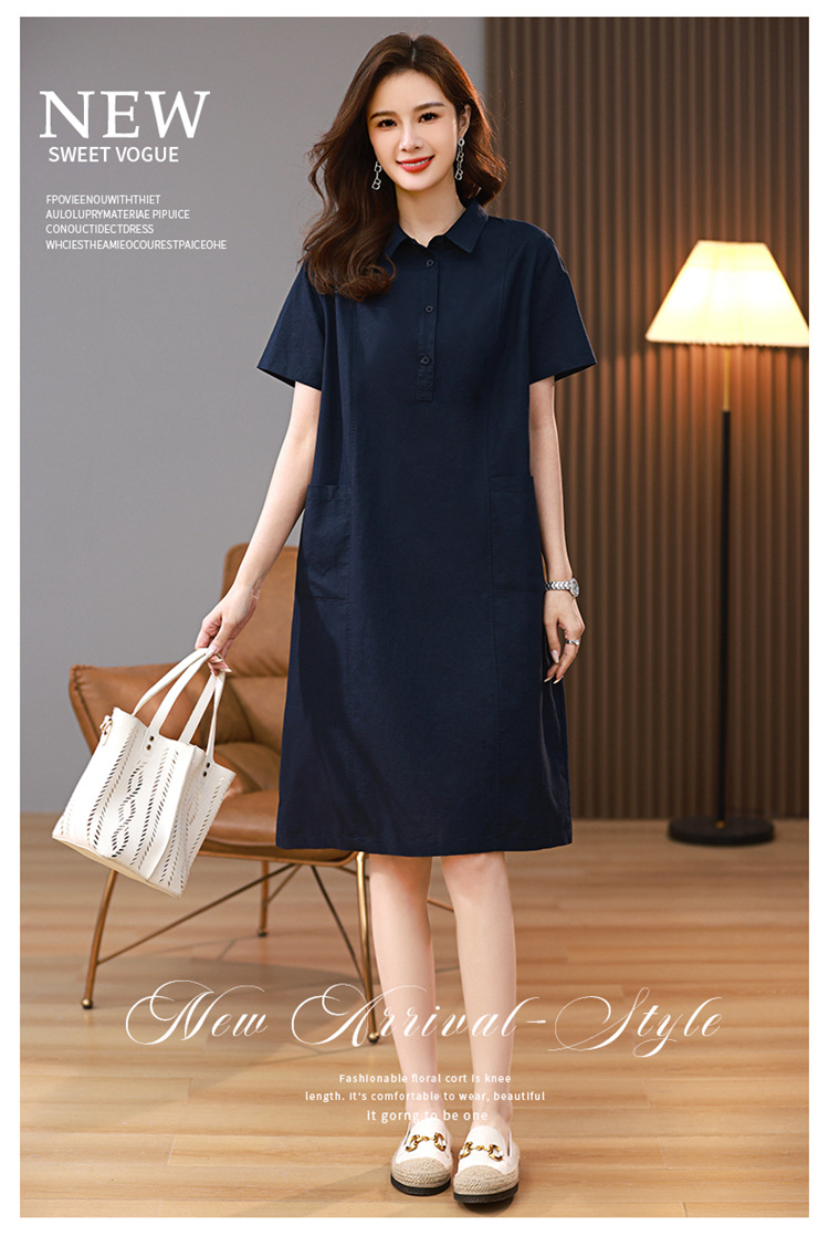时尚复古棉麻风拼接,口袋纯色中长款连衣裙HR-WXN8536