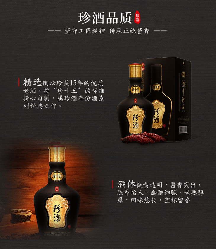 【推荐】珍酒 珍十五 匠心版 53度 500ml【单瓶装】