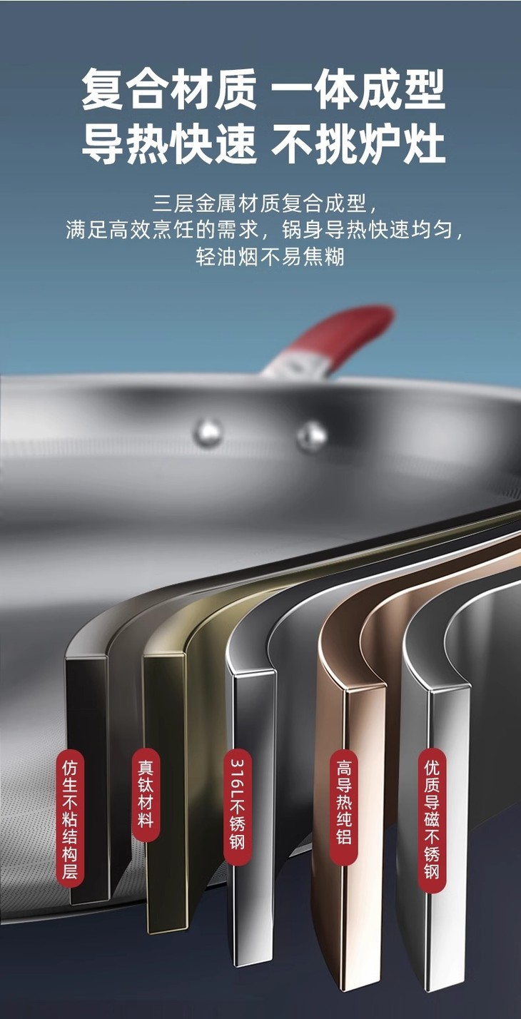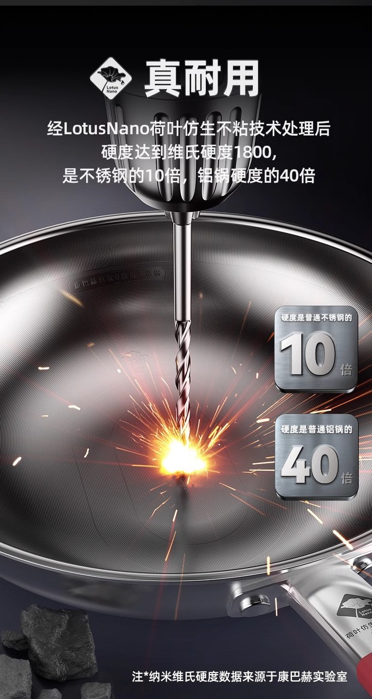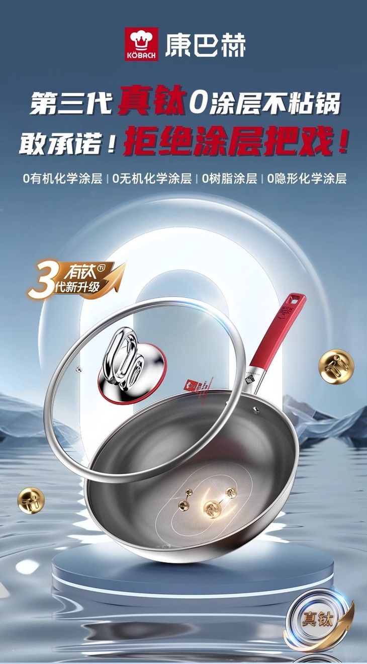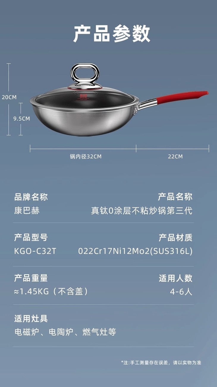 【康巴赫】第三代真钛0涂层不粘炒锅-32CM 电磁炉燃气灶通用炒菜锅防粘锅具 【14030374】KGT-C32A