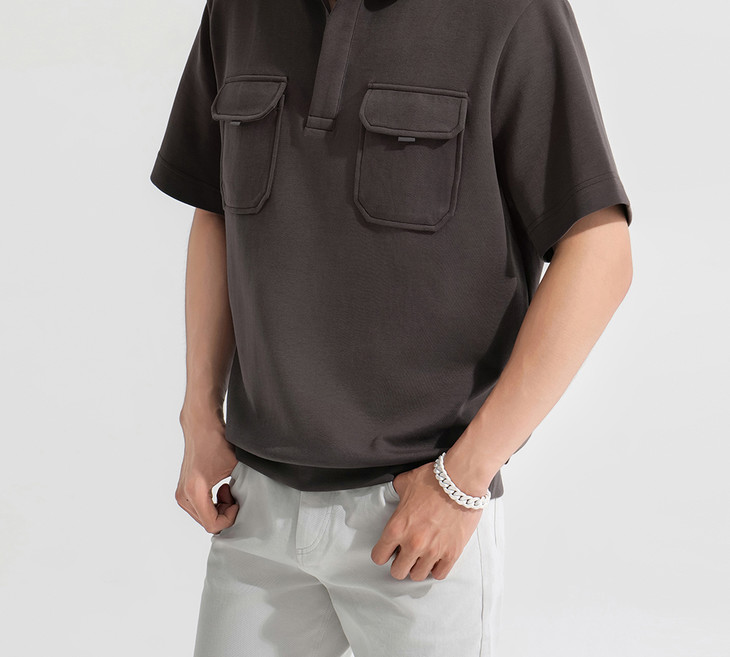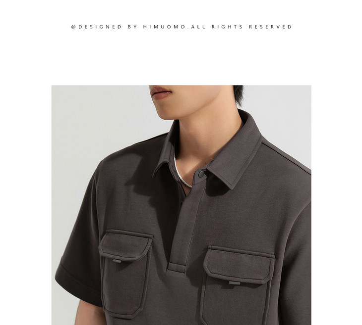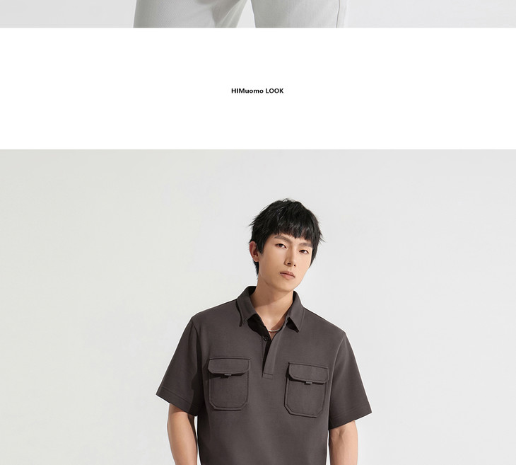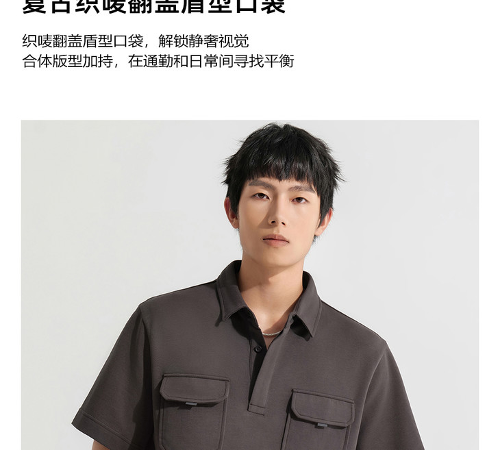 HIM漢崇 日常休闲柔软微弹复古字母织唛短袖反领T恤男 2025夏季