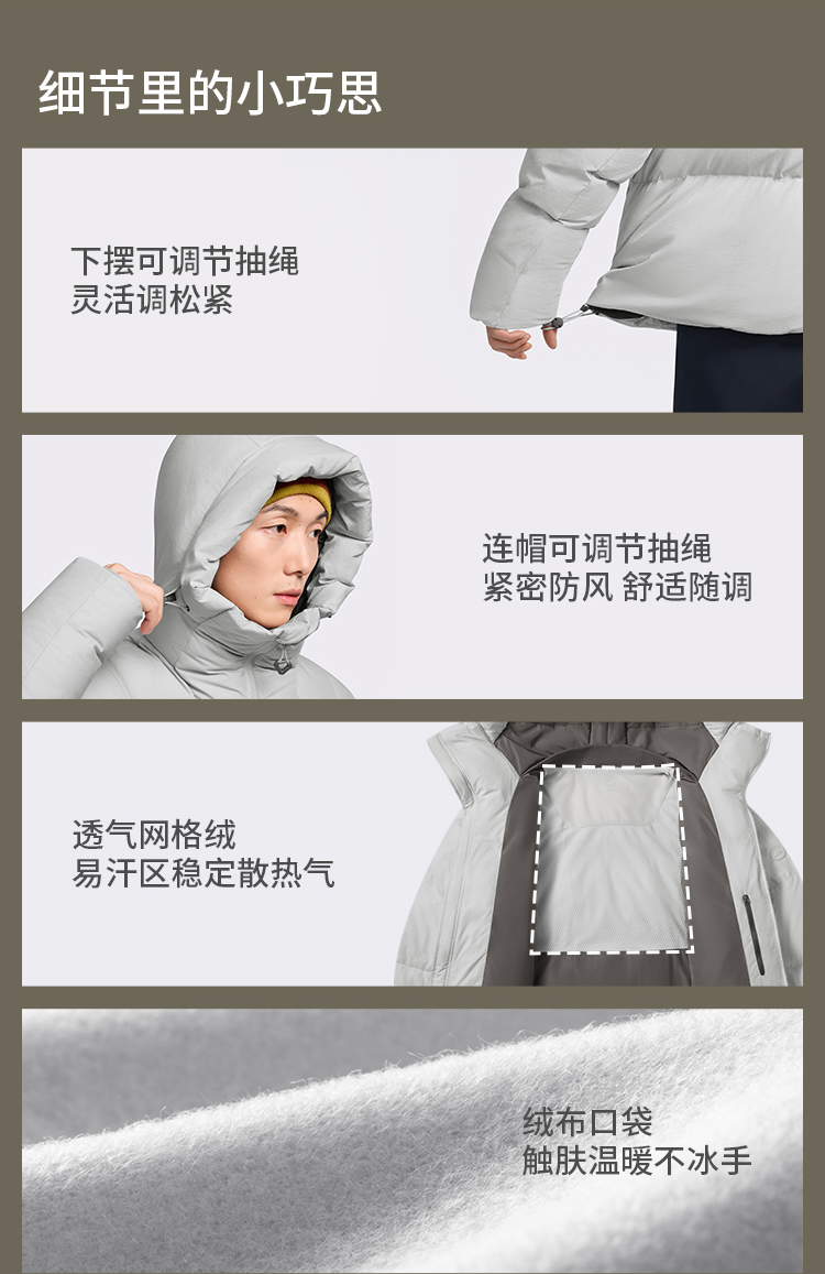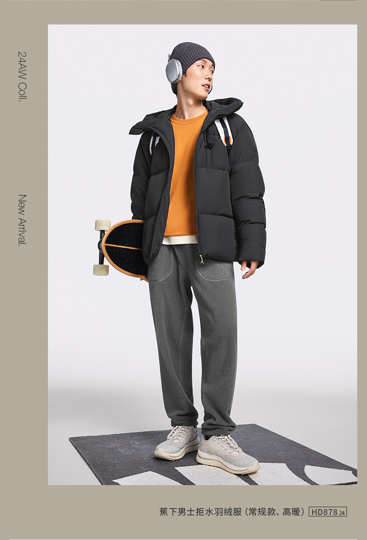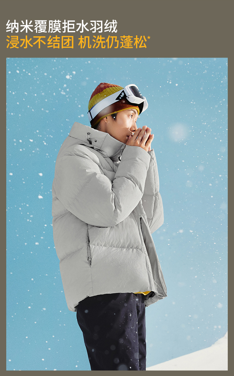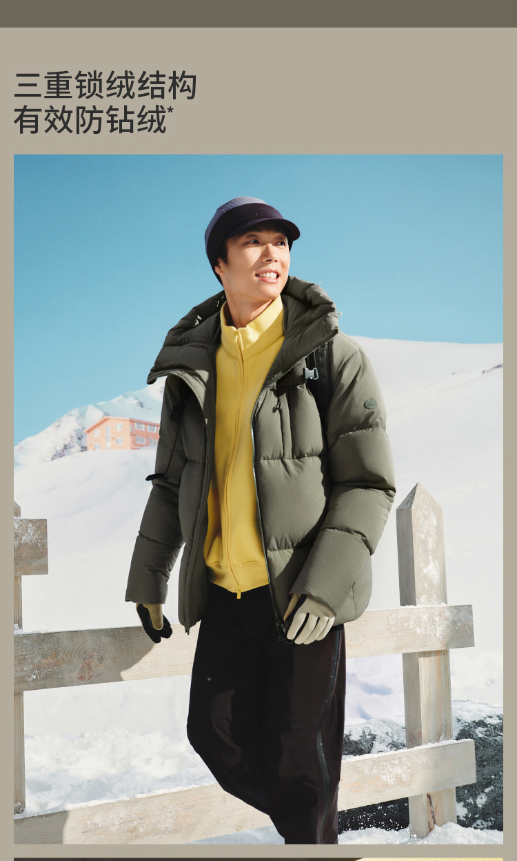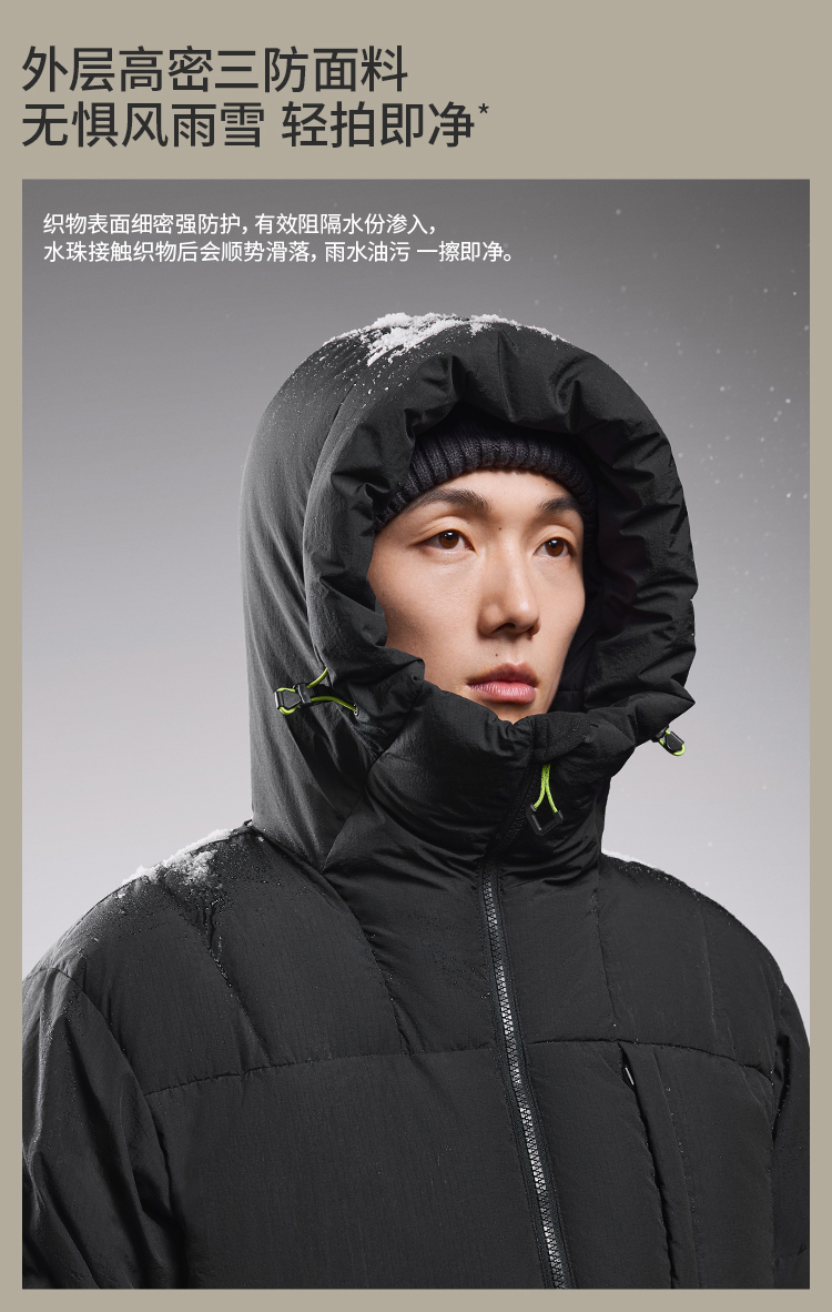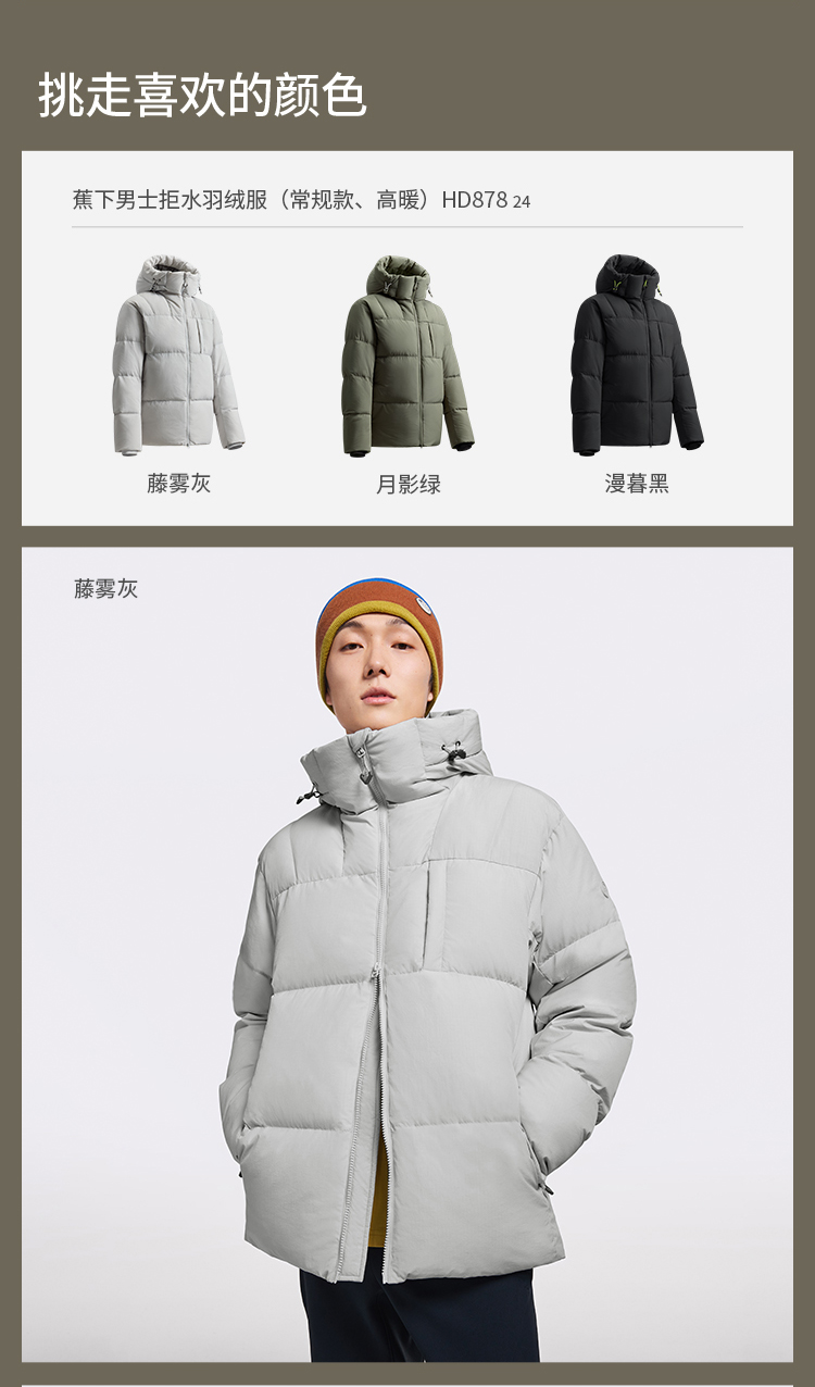 蕉下男士拒水羽绒服白鸭绒秋冬款保暖户外防风防水可机洗连帽外套HD87724