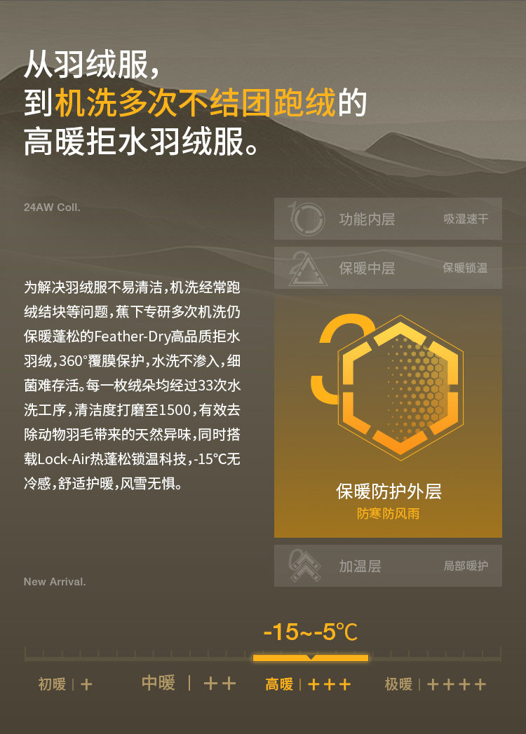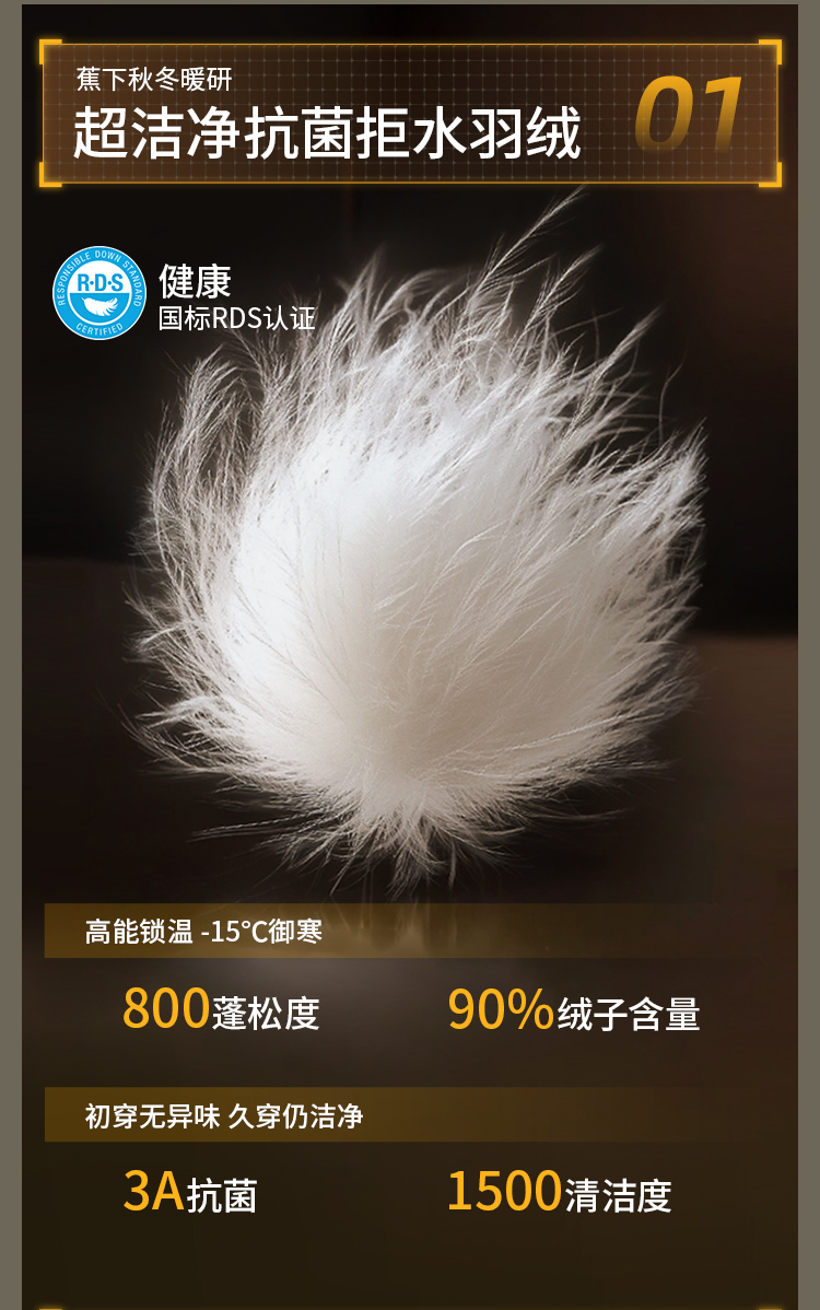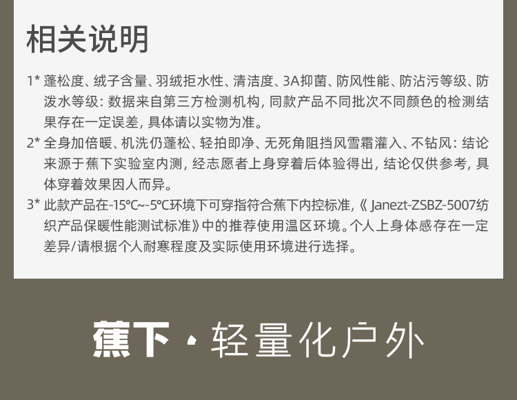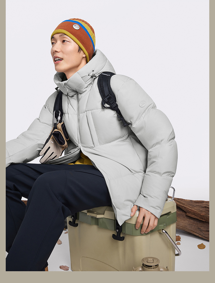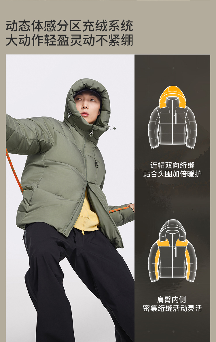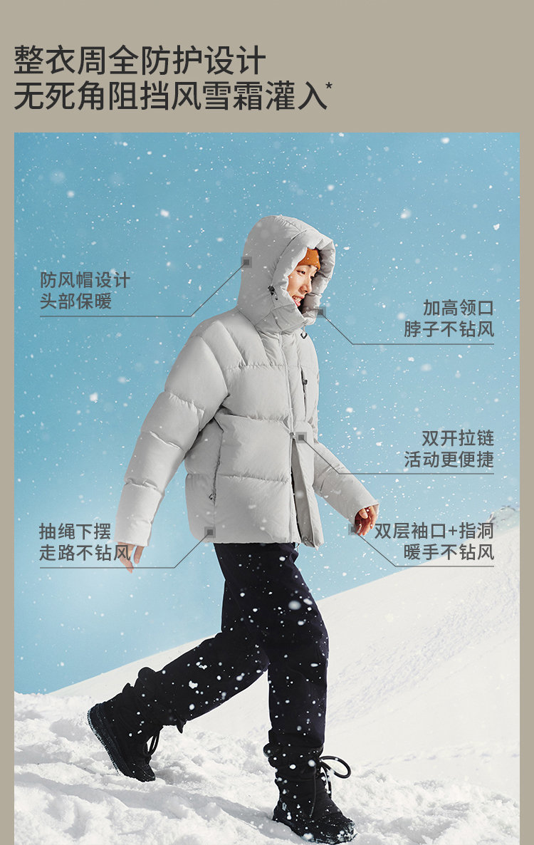 蕉下男士拒水羽绒服白鸭绒秋冬款保暖户外防风防水可机洗连帽外套HD87724