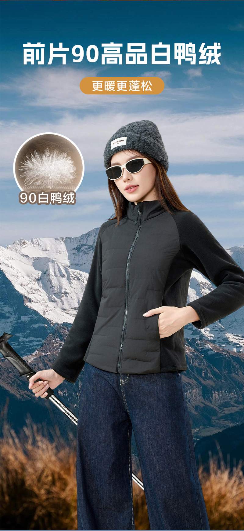 2025新款女士户外运动保暖羽绒外套 小蛮腰修身90白鸭绒轻薄女士羽绒外套