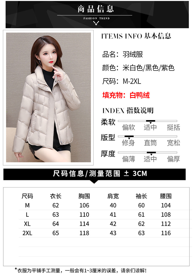 QYM 24DB87-L纯色简约修身时尚小个子立领羽绒服 商品图2