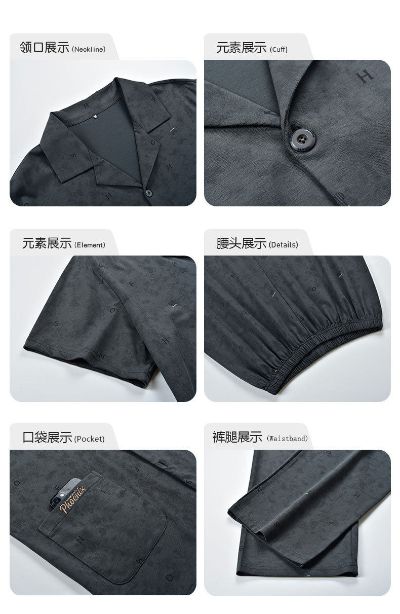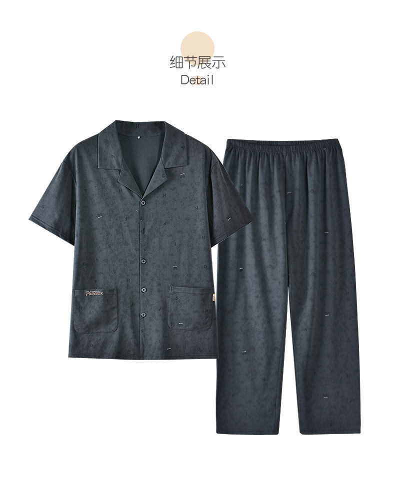 夏季男士睡衣纯棉短袖长裤可外穿爽棉中年翻领家居服开衫套装新款   JL-TMZ5523 商品图4