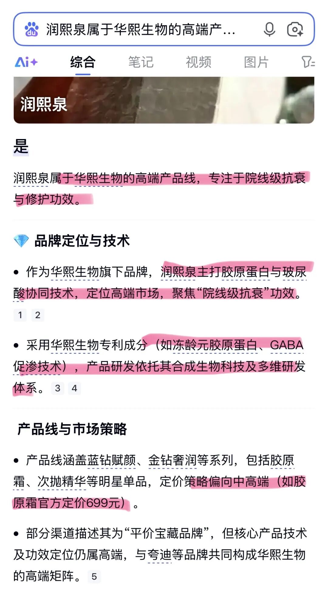 润熙泉,则是华熙生物的高端贵妇线,都上新闻的。整个华熙生物好的成分、贵的成分、先进的技术,几乎全数用在润熙泉里。