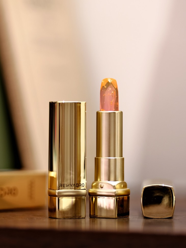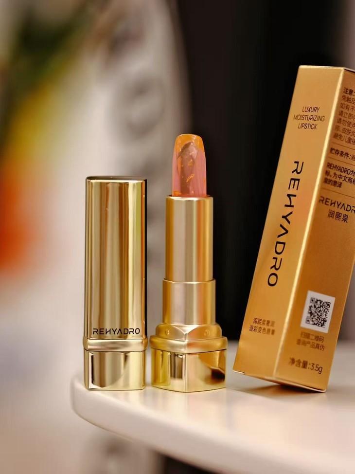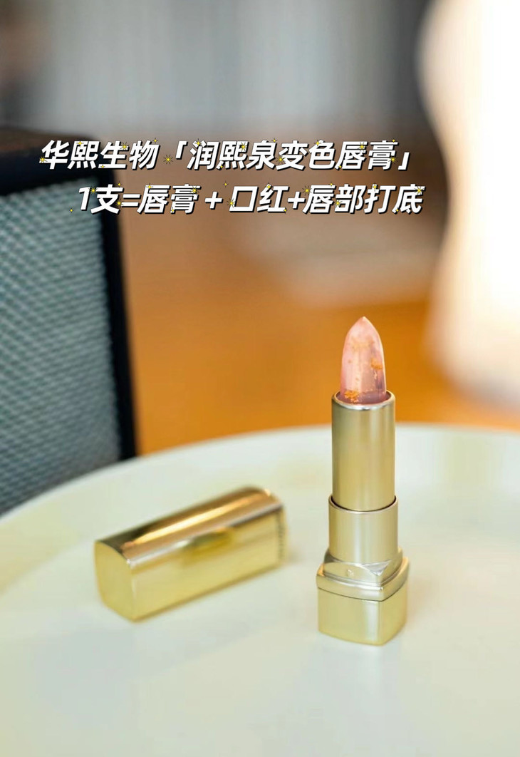 润熙泉这款变色唇膏采用了华熙专研的微球玻尿酸科技。