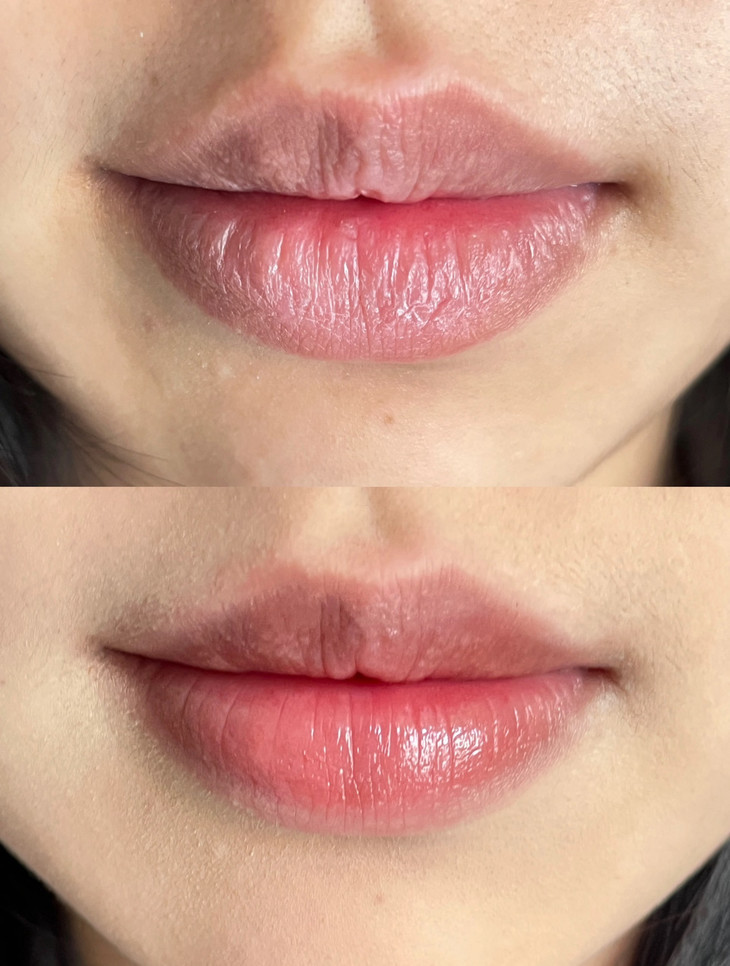 它只会中和你的唇部状态,调整出适合你的嘴唇颜色,嘴巴看上去就是嫩嘟嘟又有光泽感,颜色恰到好处!