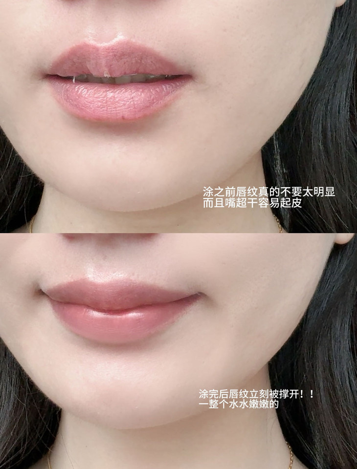 上唇后的肤感真的非常舒服,没有糊猪油般的厚重感,四季都能用,轻松打造出水嘟嘟的唇妆。