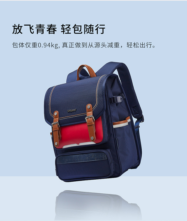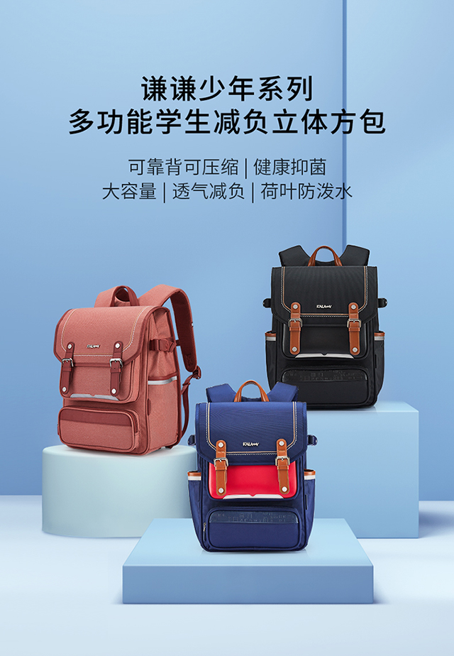 卡拉羊初高中学生防下坠减负护脊立体方包大容量防水书包 谦谦少年CX5127