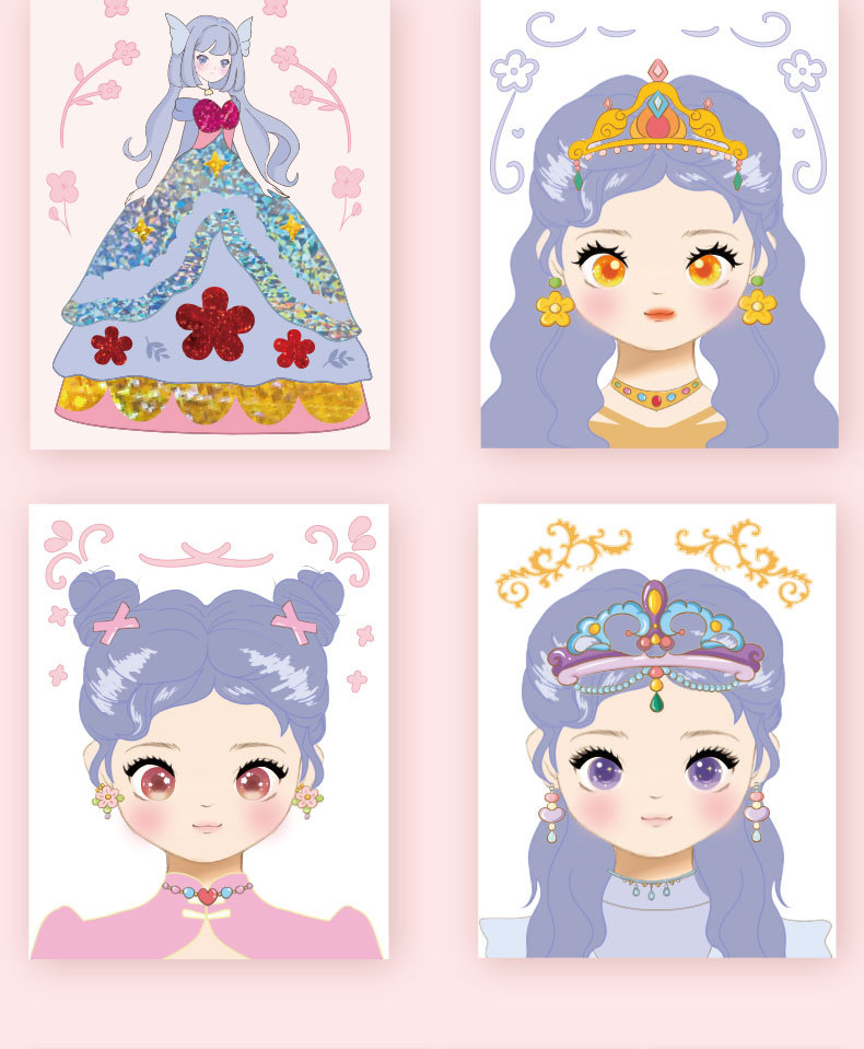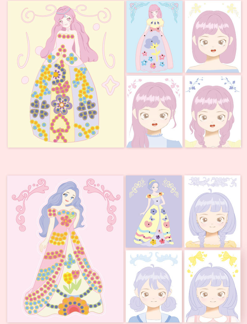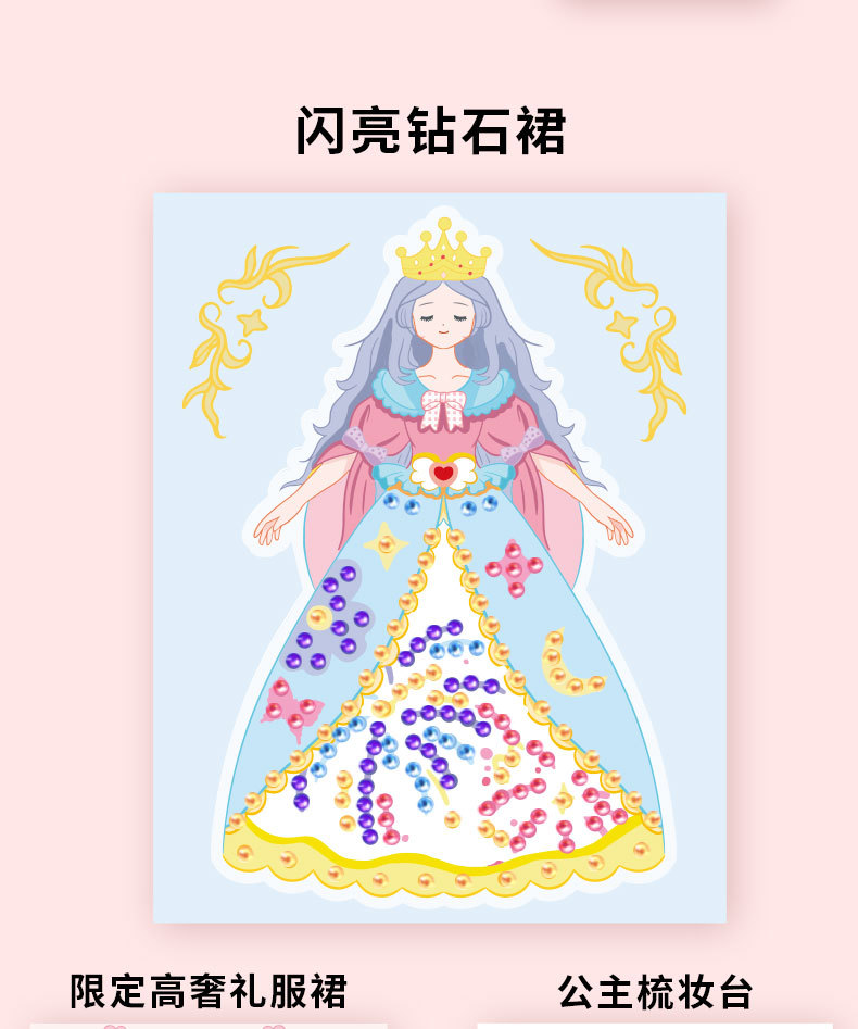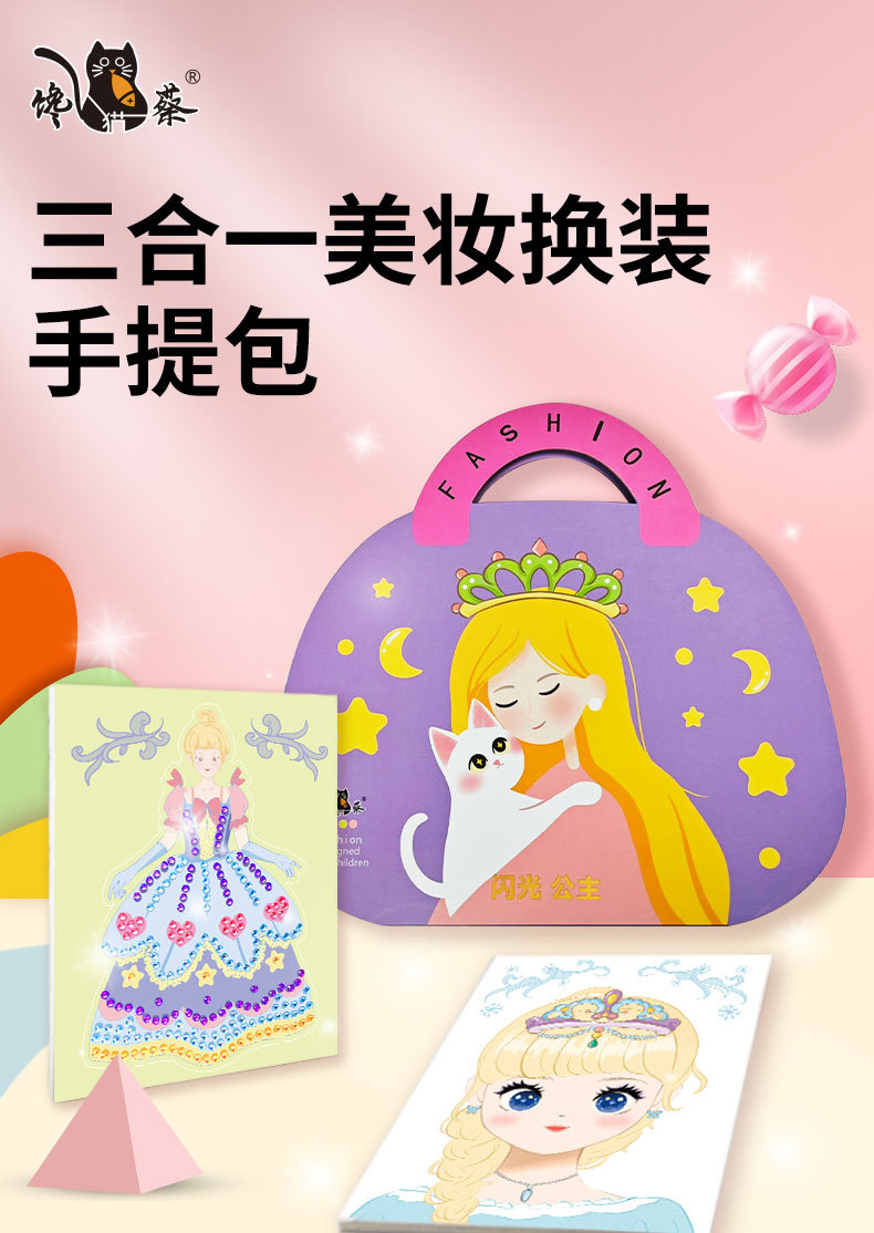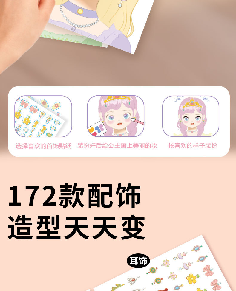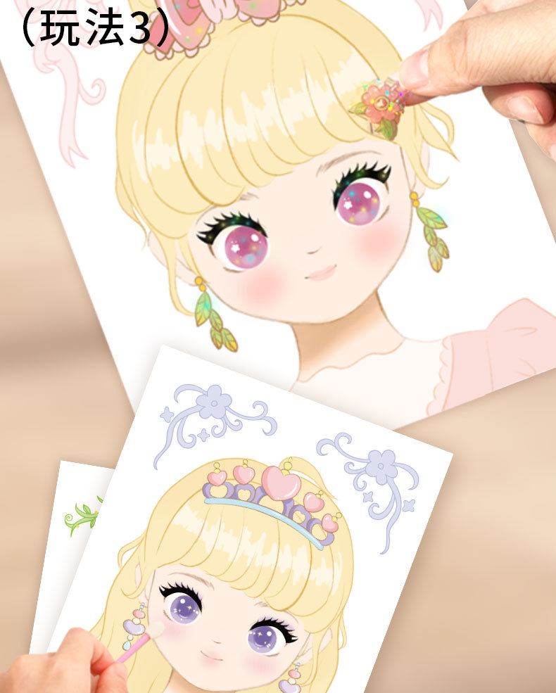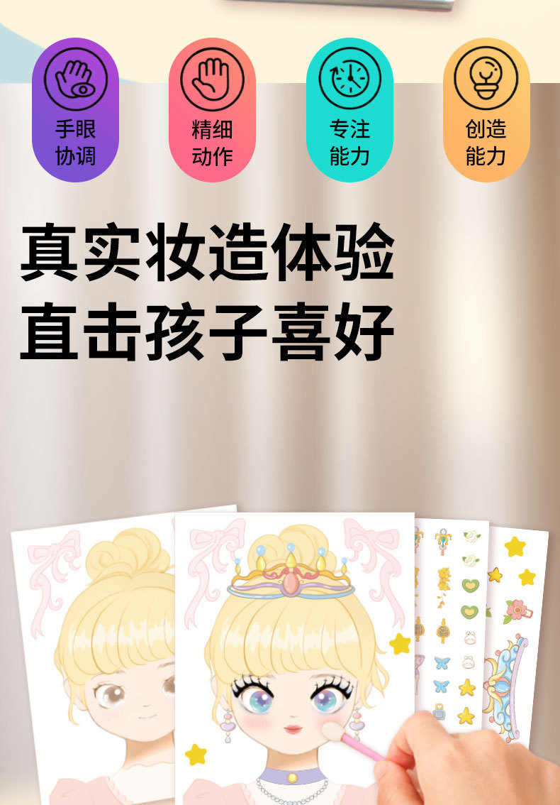 【真实化妆体验,直击孩子喜好!】新款芭莎公主化妆包,钻石贴画女孩安静书手工diy,公主换装儿童玩具,5个公主 25款化妆造型