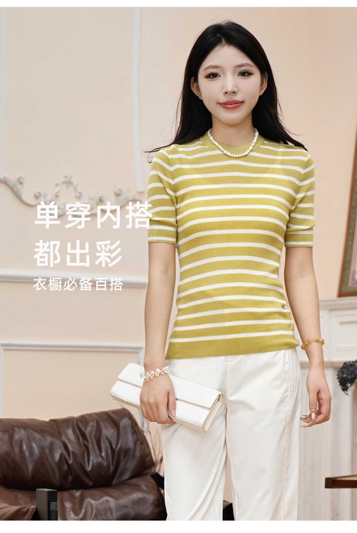 🌟正肩×横向条纹=显瘦公式