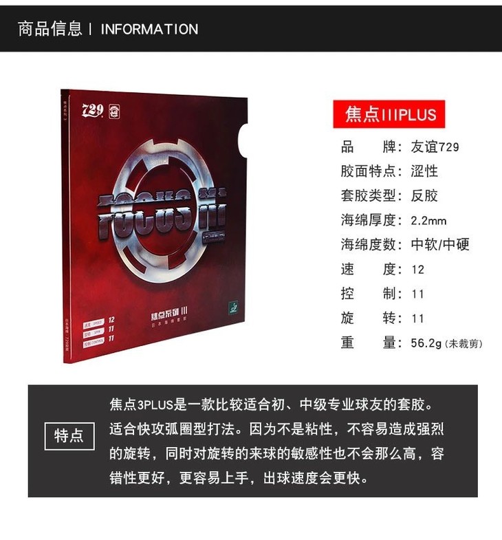 友谊729 焦点3plus/内能焦点3 涩性反胶套胶日系高弹海绵正品
