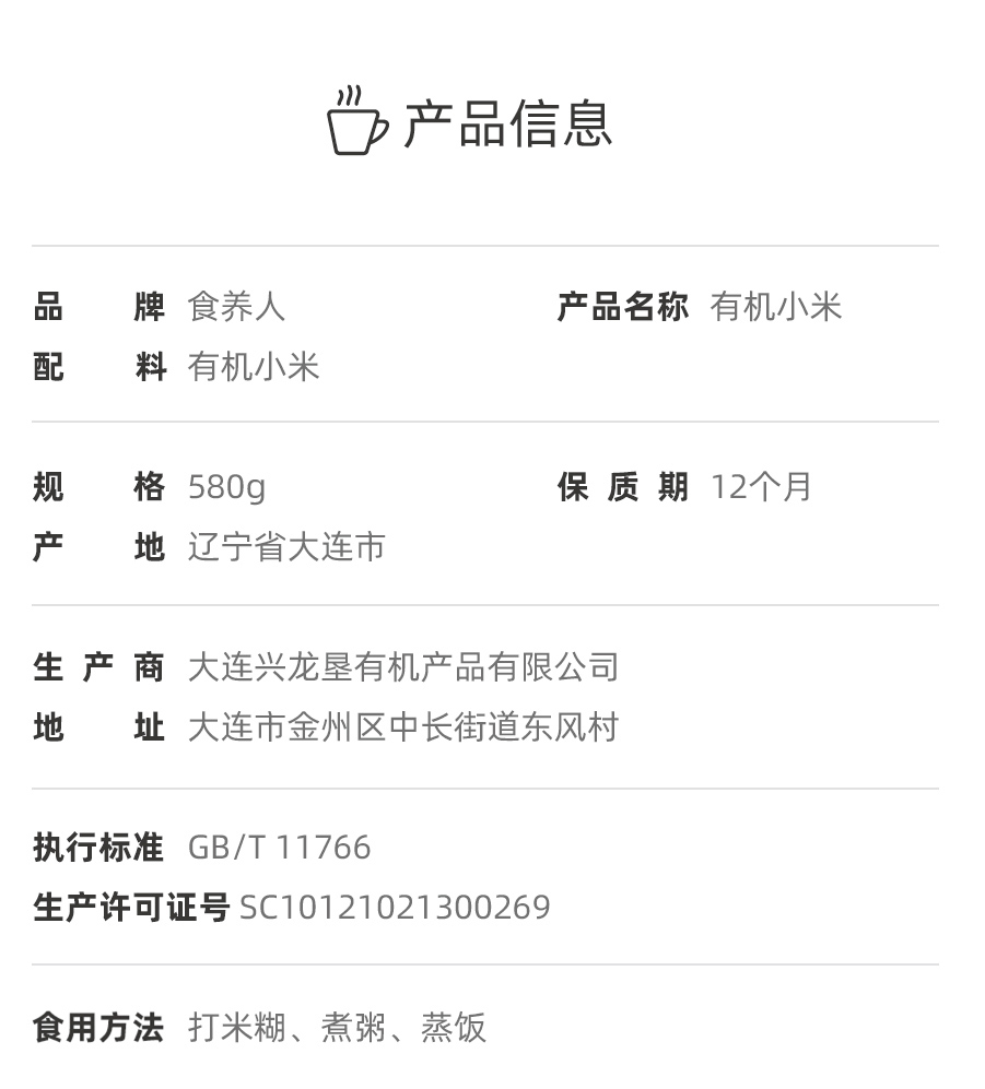 自营-有机黄小米580g