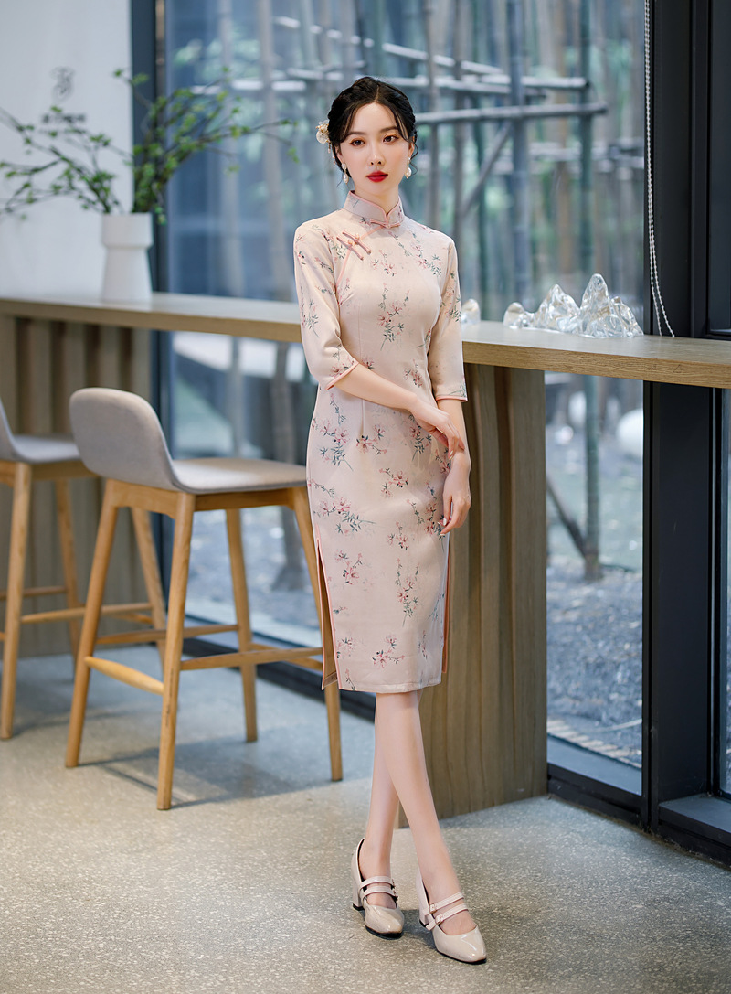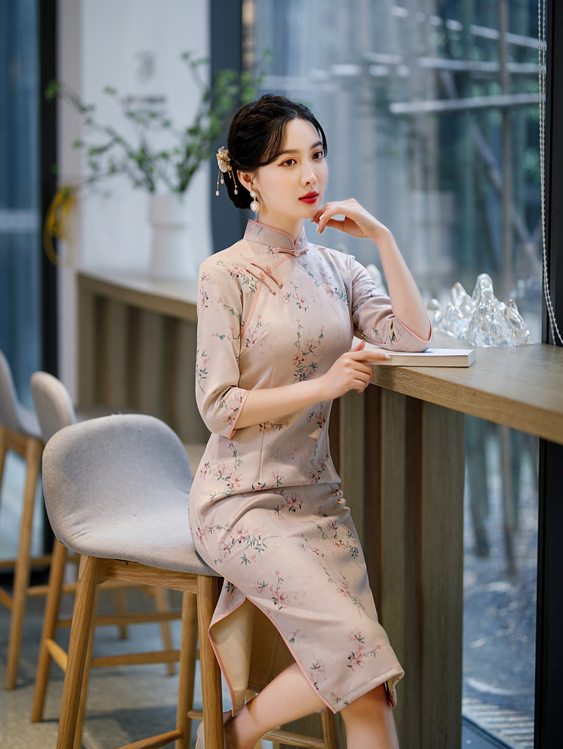 上海旗袍厂ZAYS-82223秋冬年轻款改良中长旗袍日常修身时尚少女立领连衣裙旗袍
