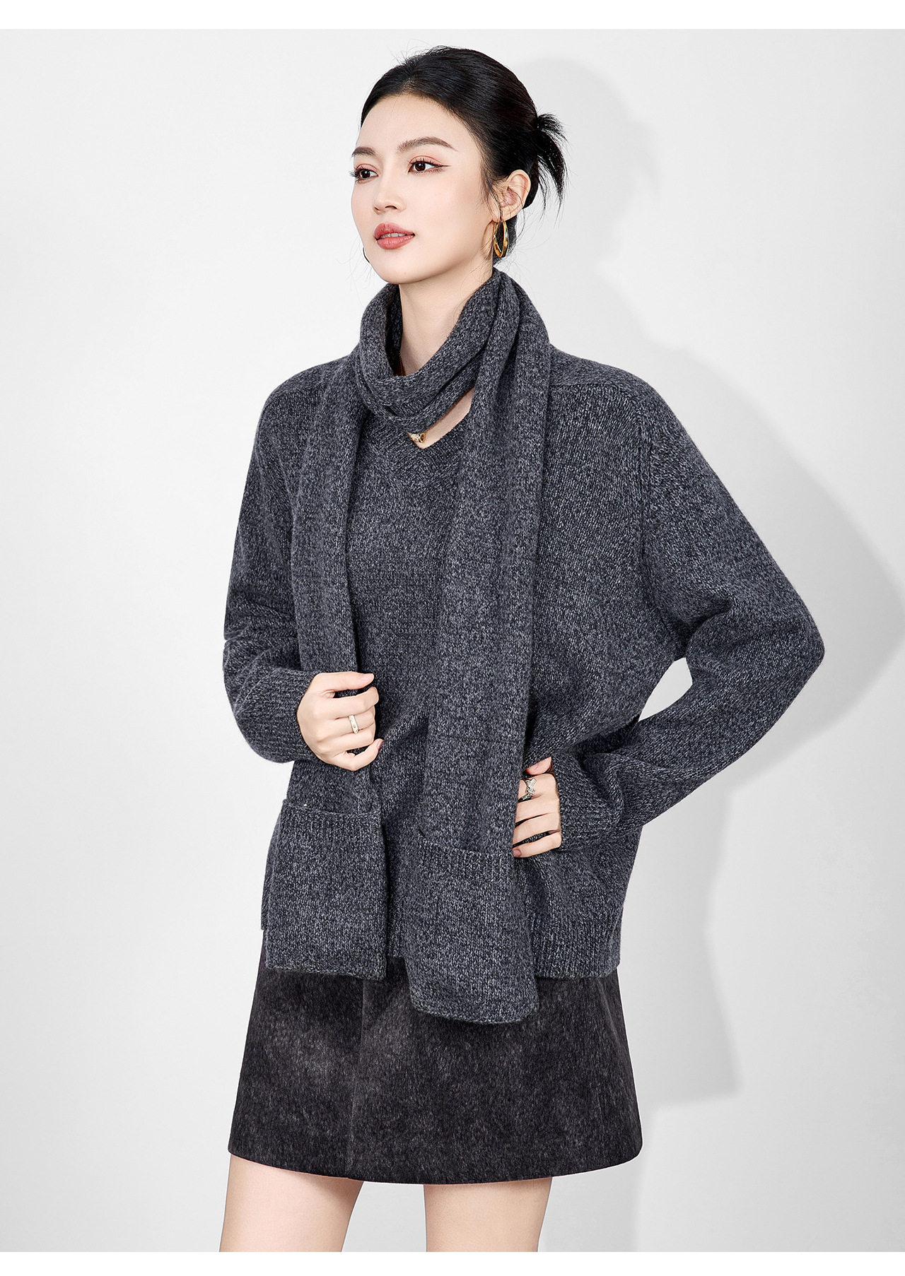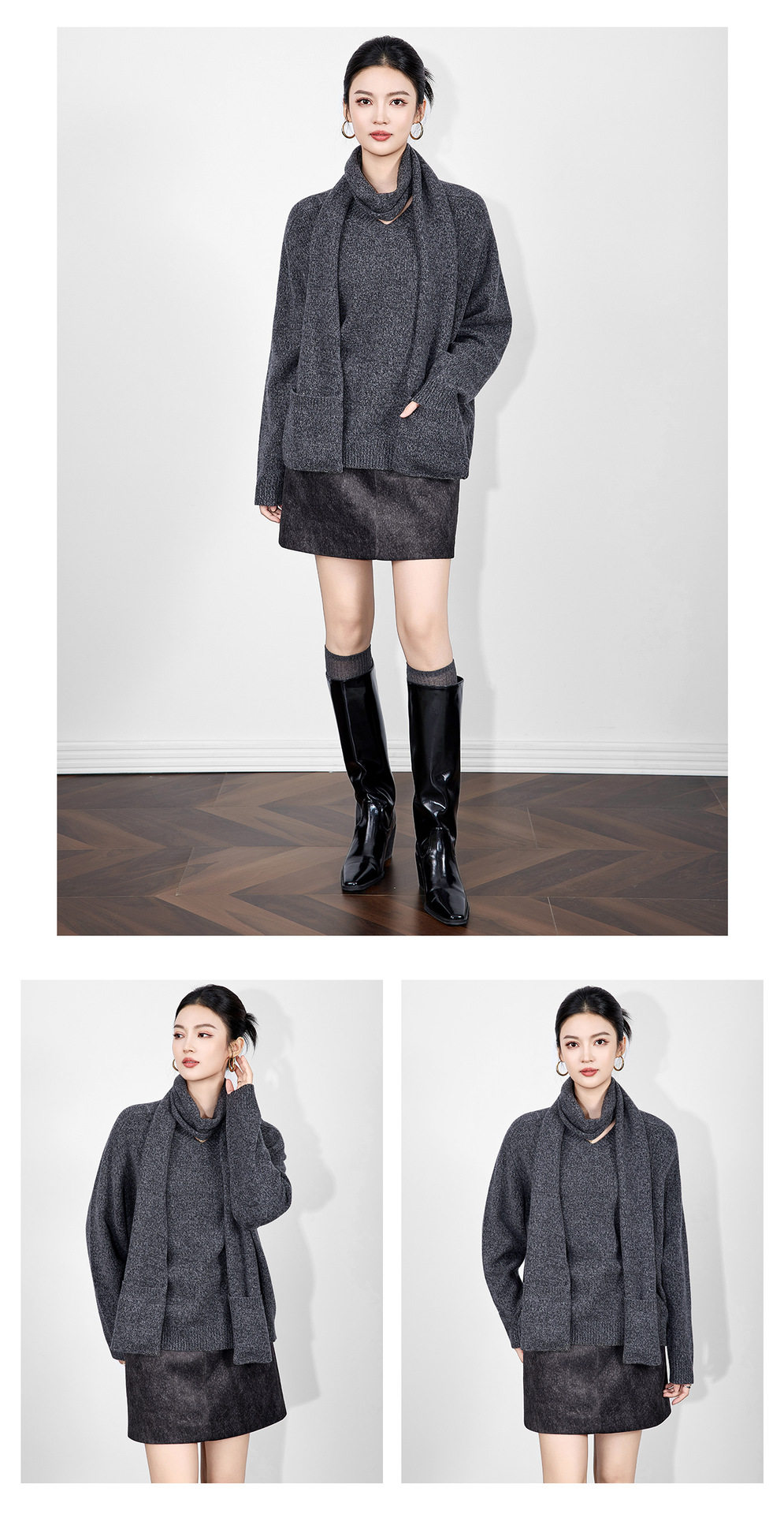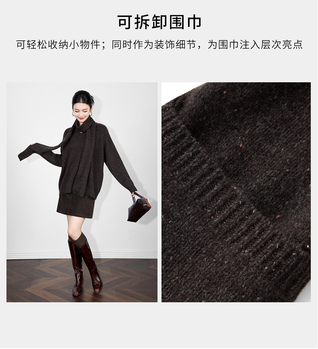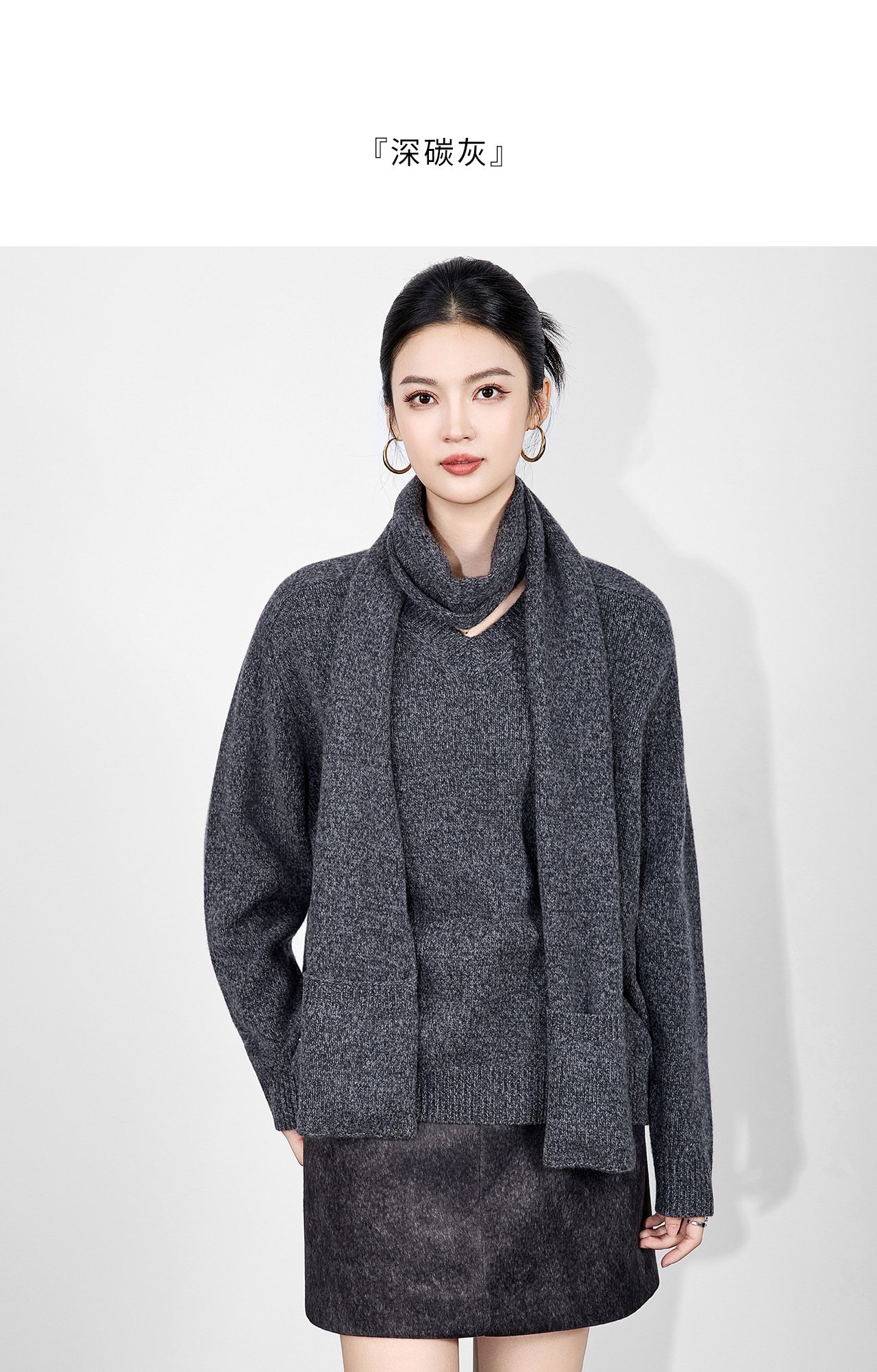 「高货wl」全新升级【铂金会员330/天猫439/差价109】(15401)洛诗琳2025冬季气质四平密织羊毛混纺宽松套头围巾毛衣女