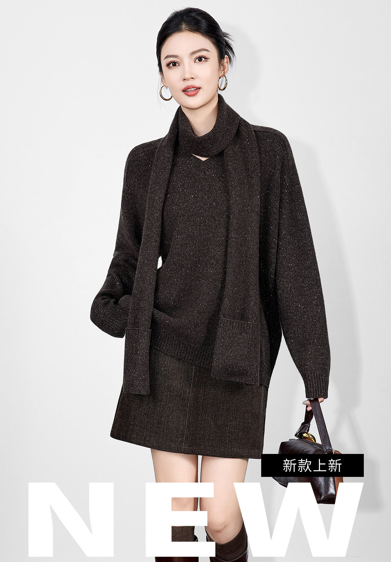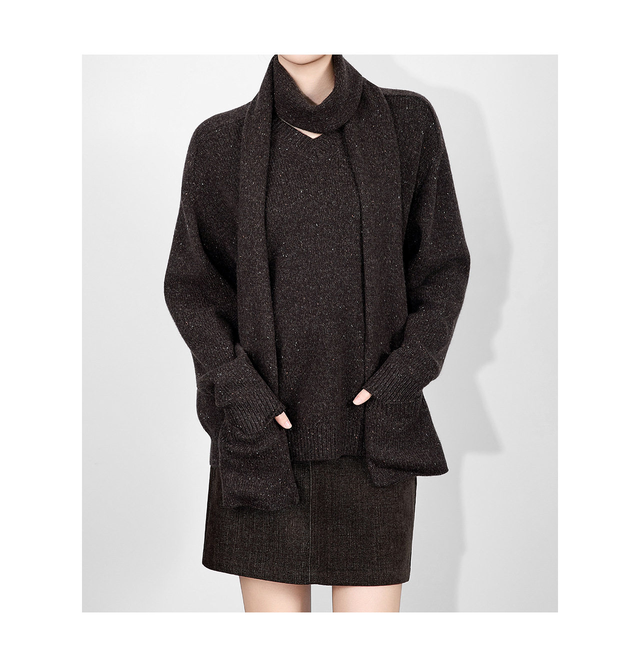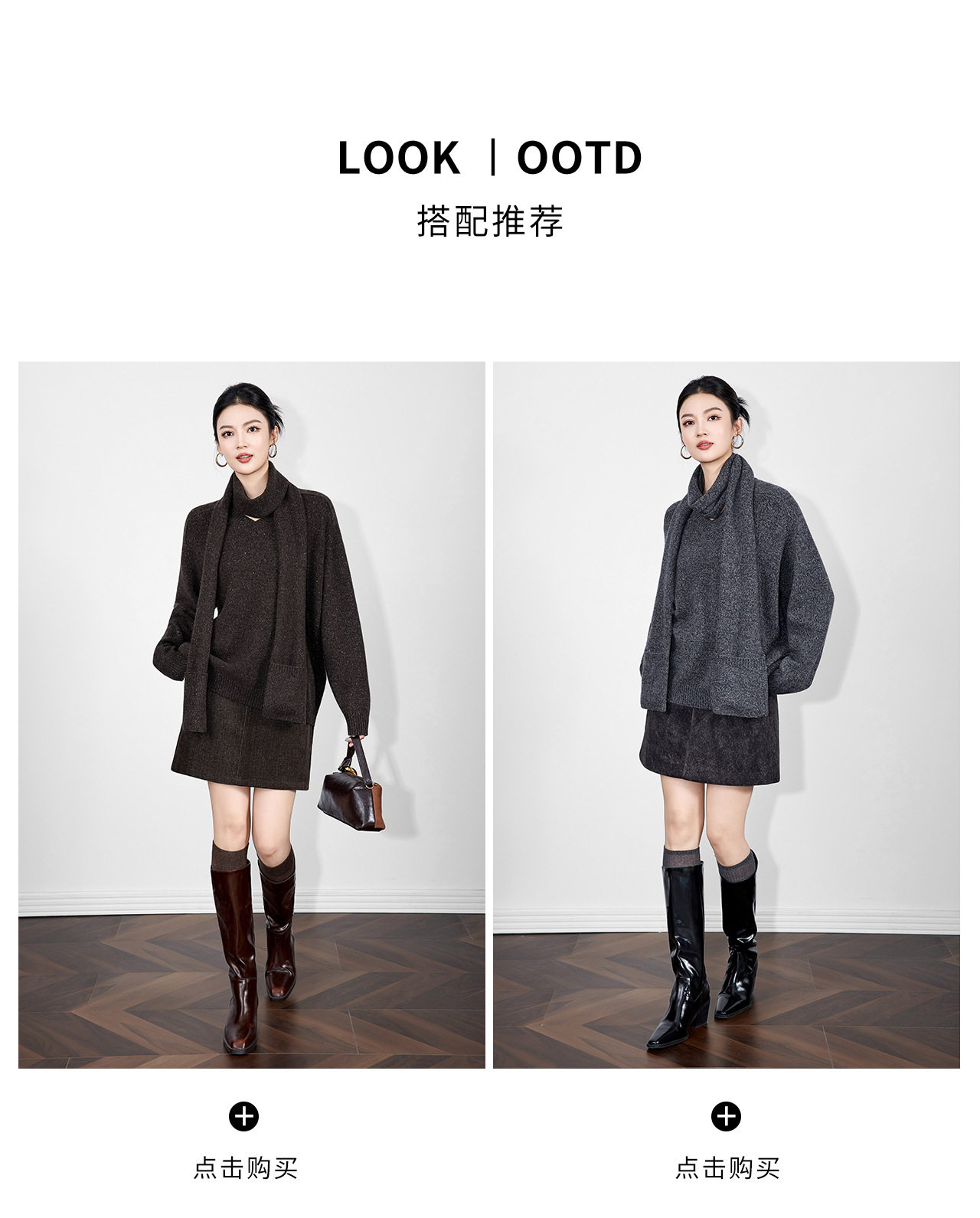 「高货wl」全新升级【铂金会员330/天猫439/差价109】(15401)洛诗琳2025冬季气质四平密织羊毛混纺宽松套头围巾毛衣女