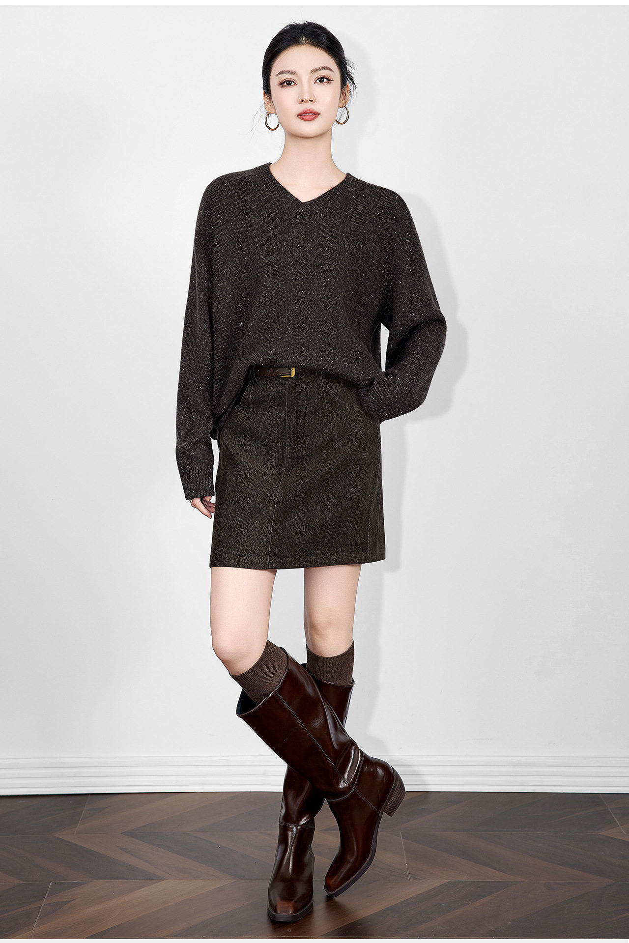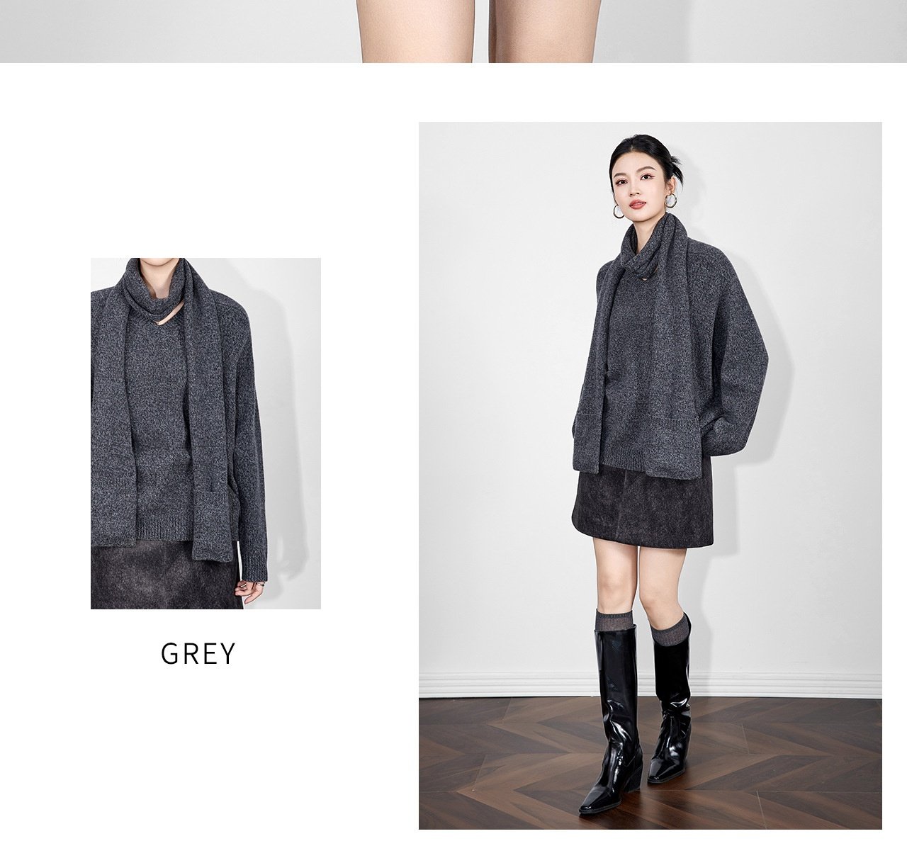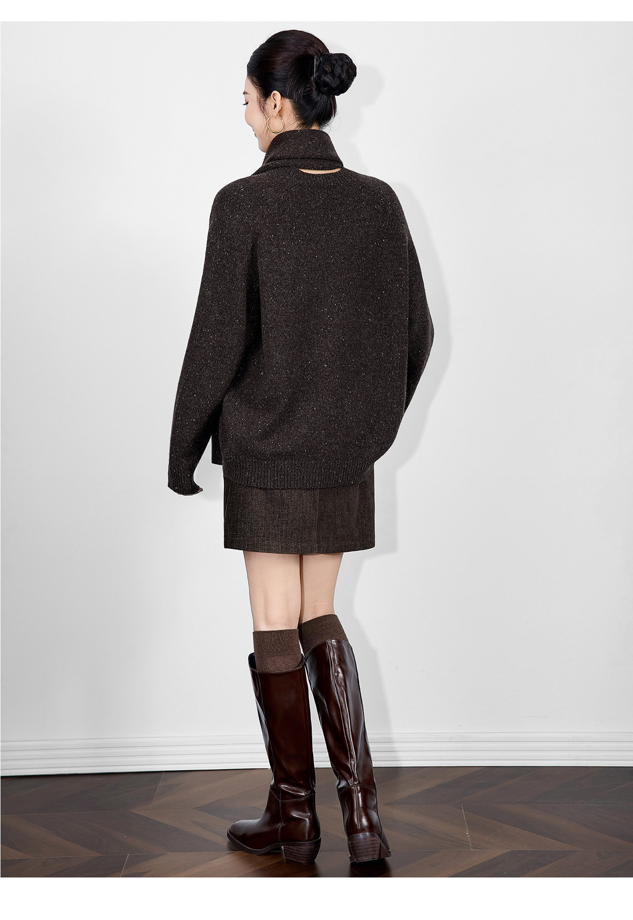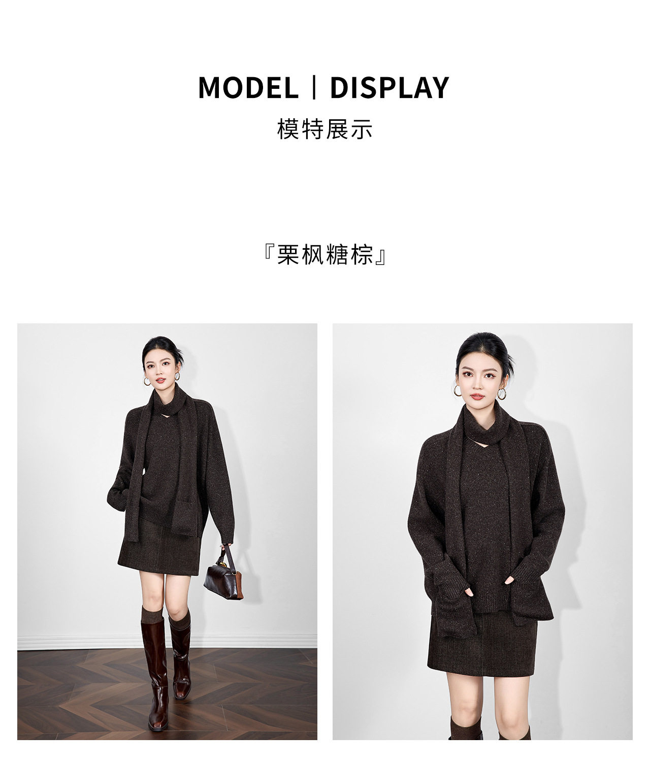 「高货wl」全新升级【铂金会员330/天猫439/差价109】(15401)洛诗琳2025冬季气质四平密织羊毛混纺宽松套头围巾毛衣女