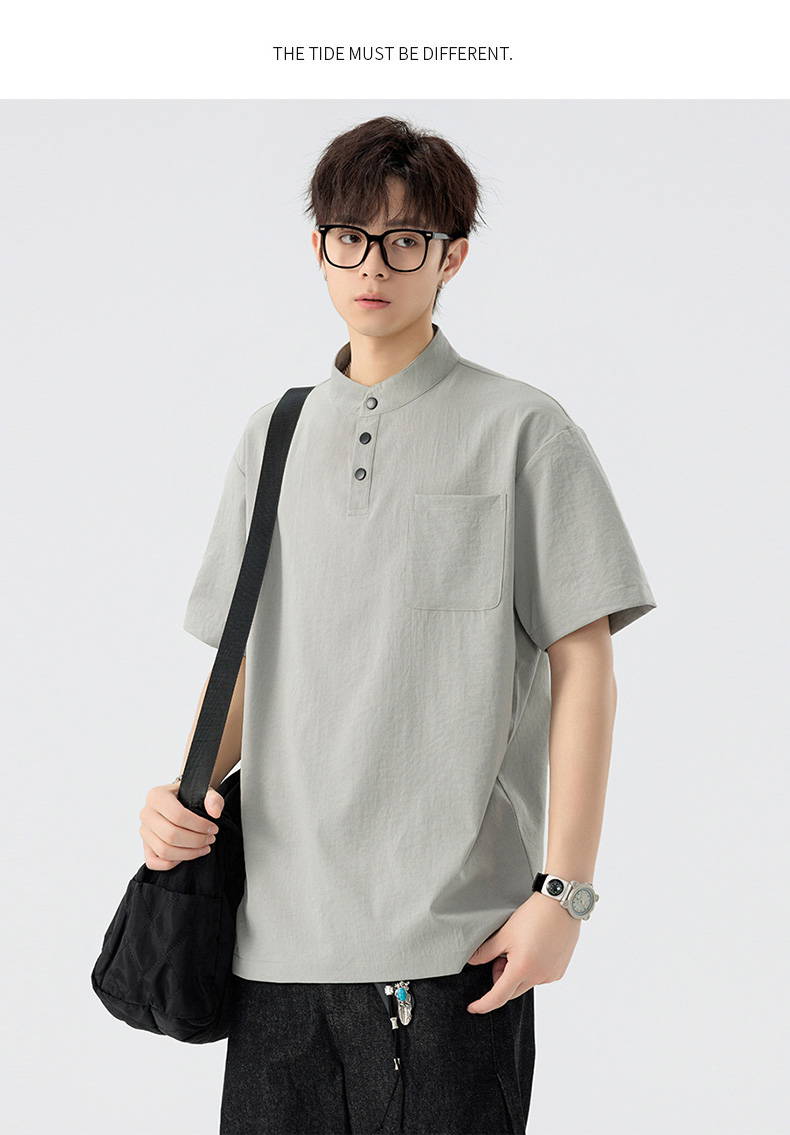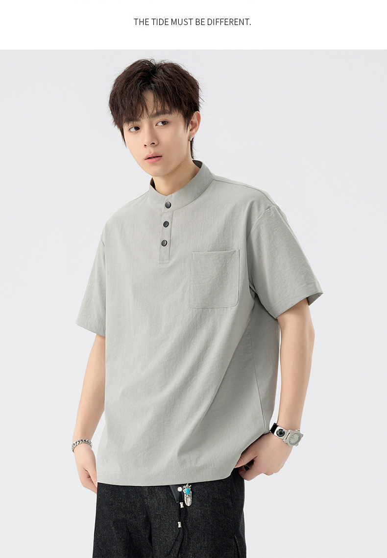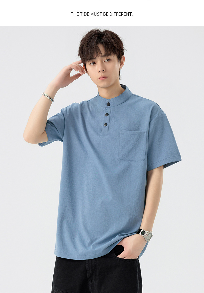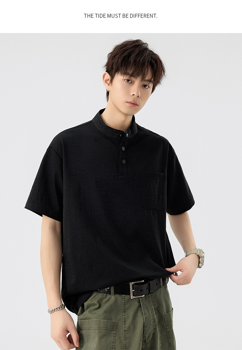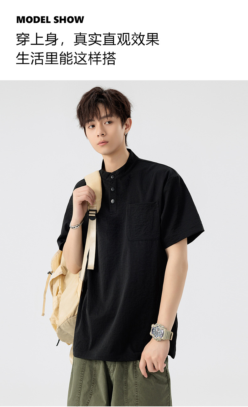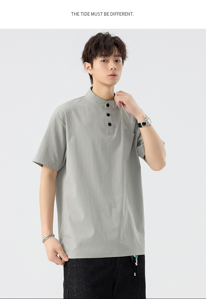 【DSL】大依优型大码立领短袖POLO衫T恤夏季加肥加大肥佬休闲宽松透气弹力男装上衣潮款