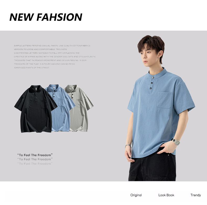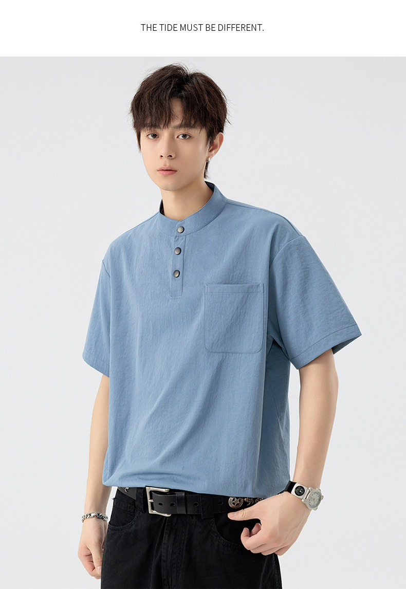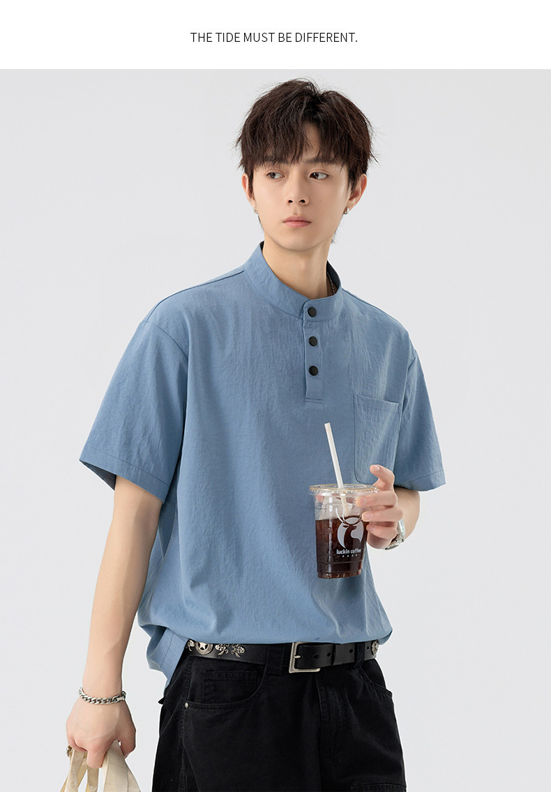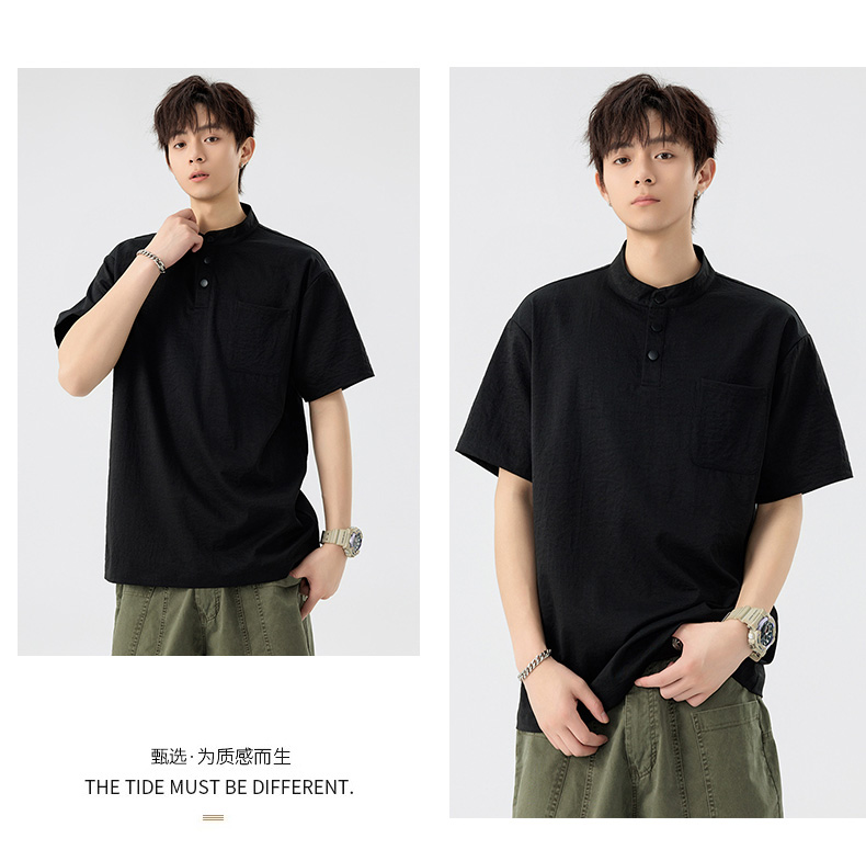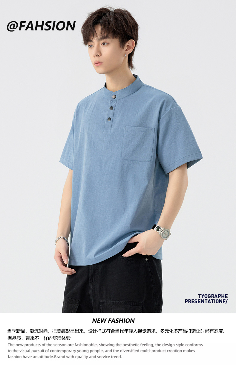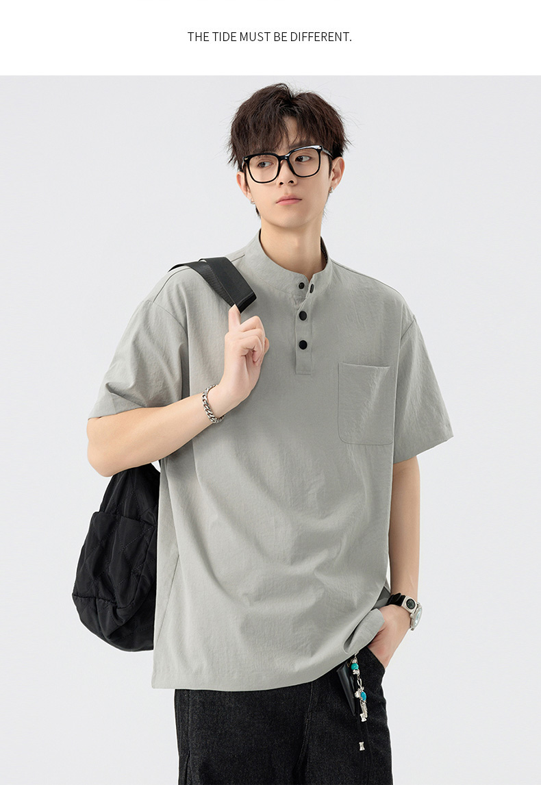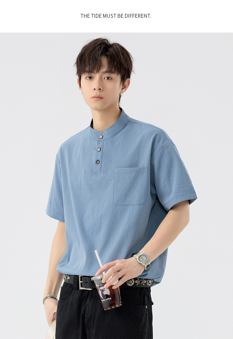 【DSL】大依优型大码立领短袖POLO衫T恤夏季加肥加大肥佬休闲宽松透气弹力男装上衣潮款