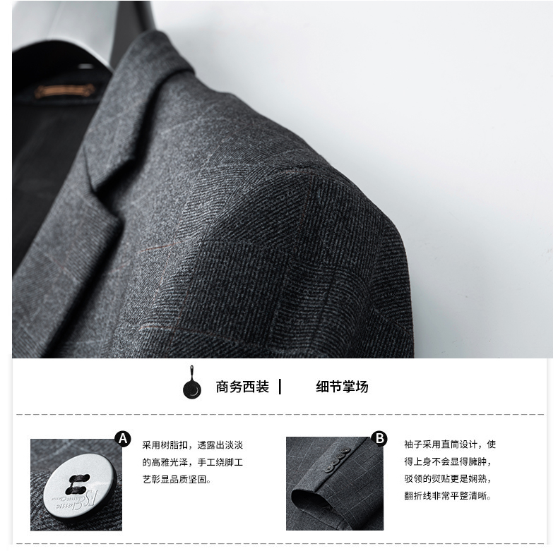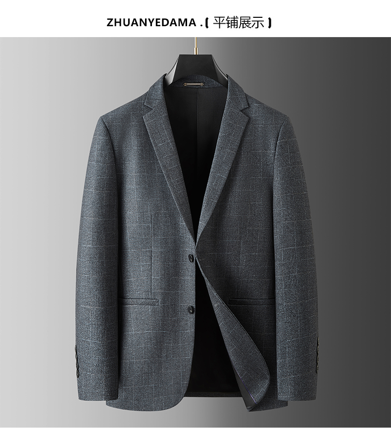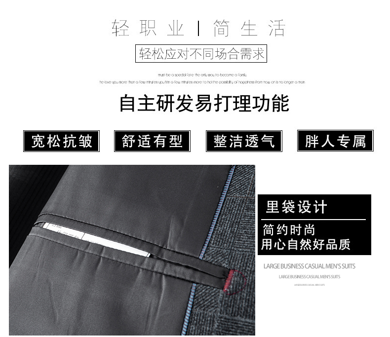 【新款DDA】大依优型大码男装两粒扣西服外套格纹休闲商务加肥加大上衣男士正装潮