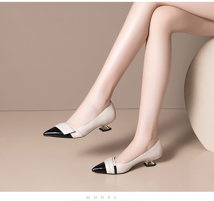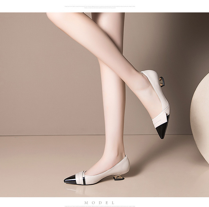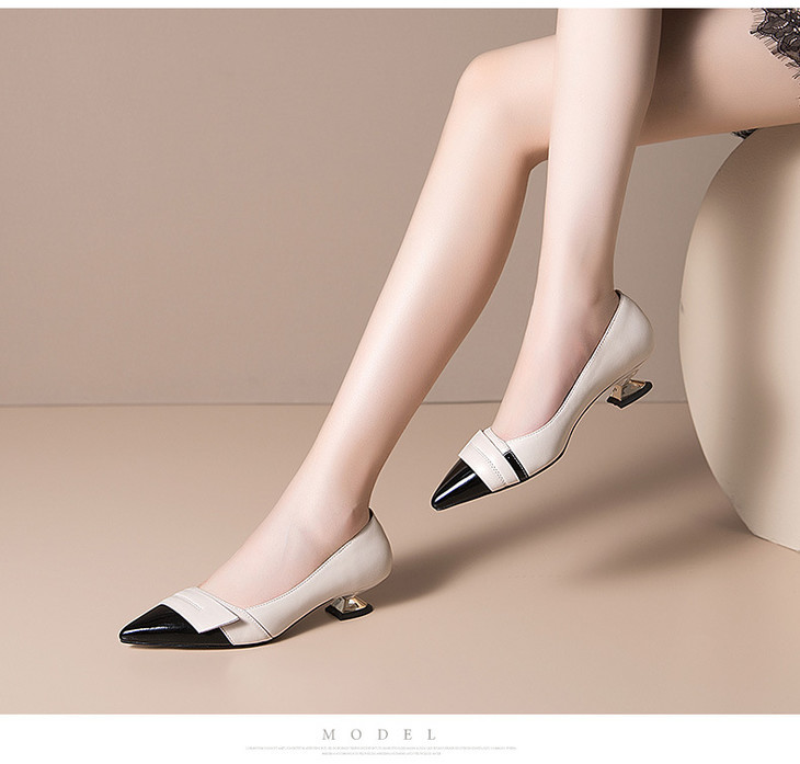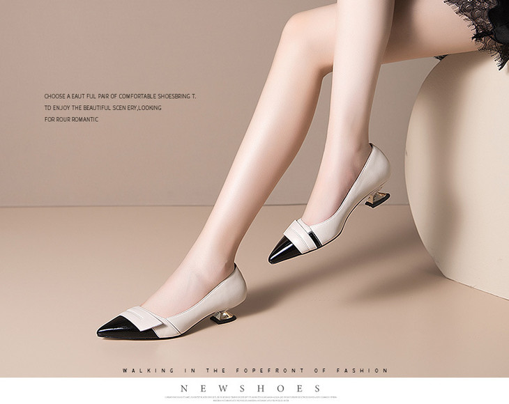 RB-2196新品粗跟尖头浅口四季单鞋中跟鞋