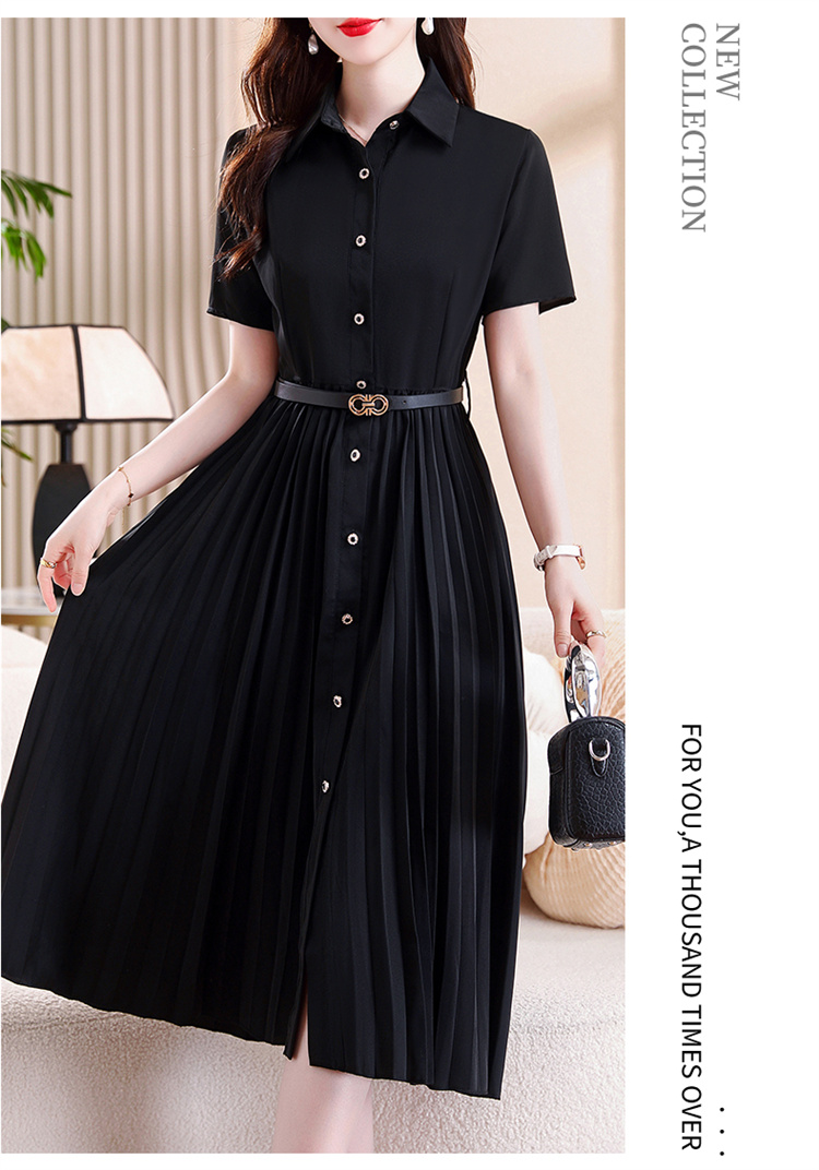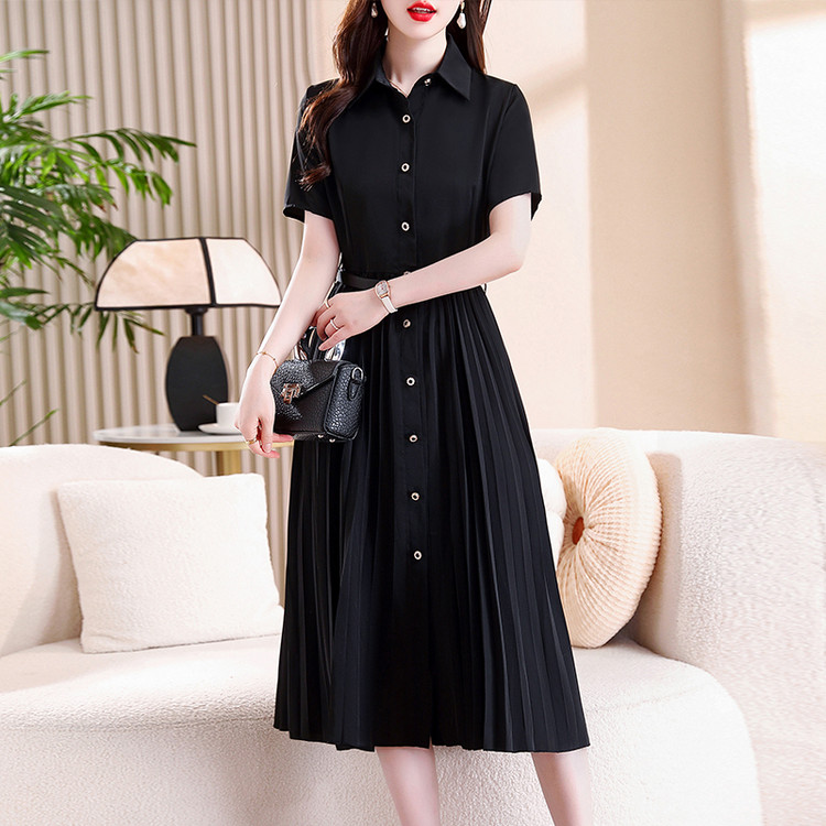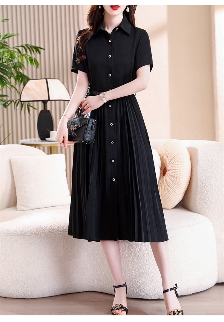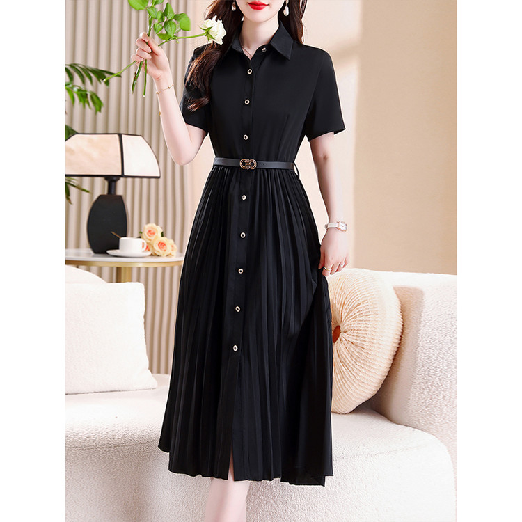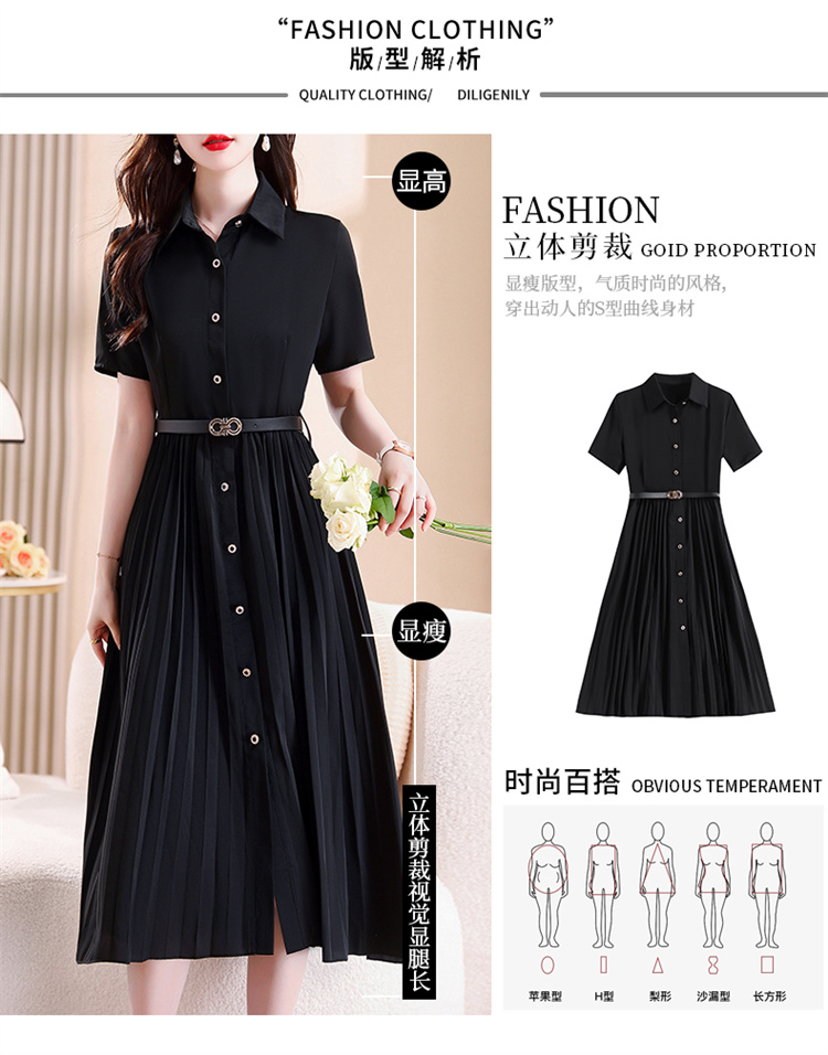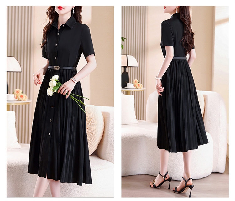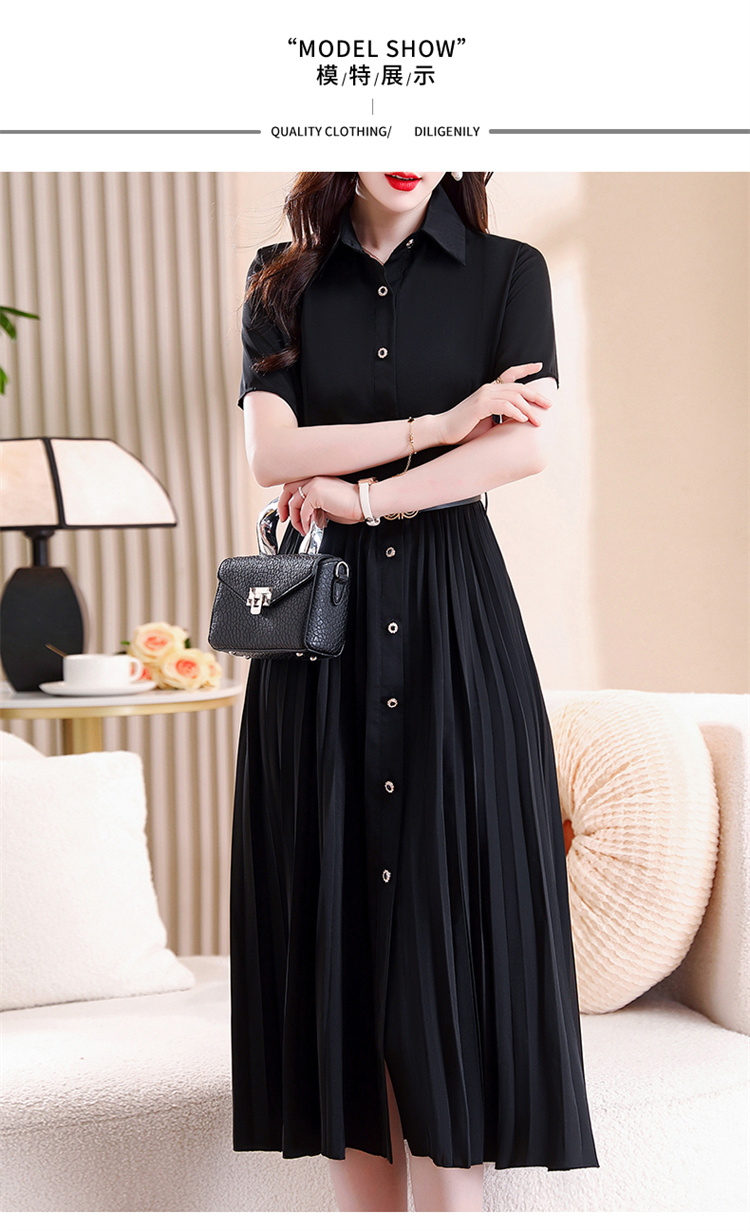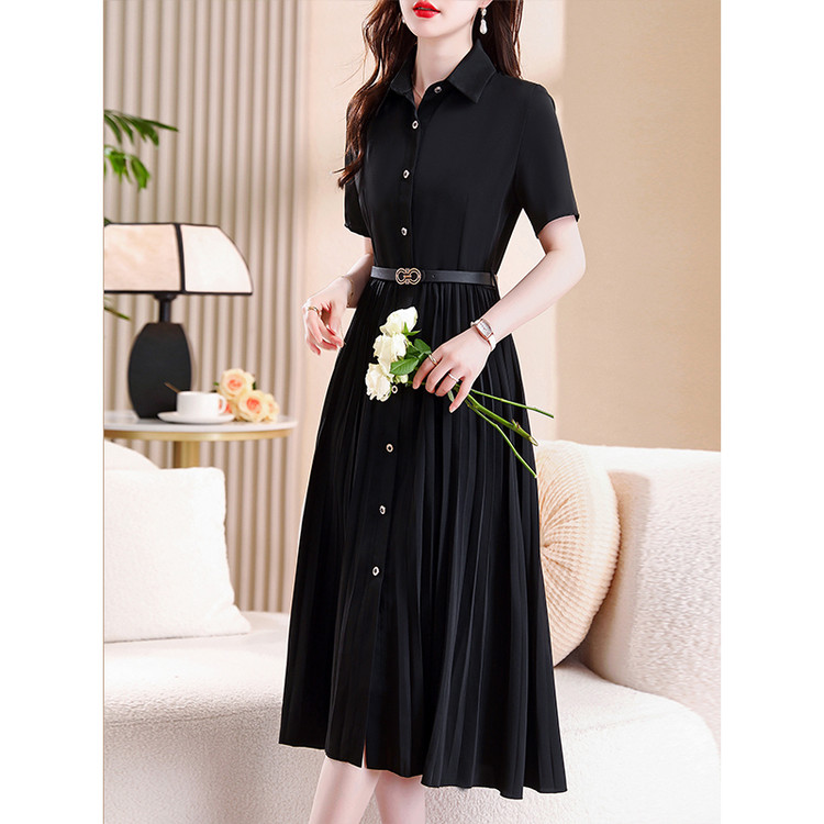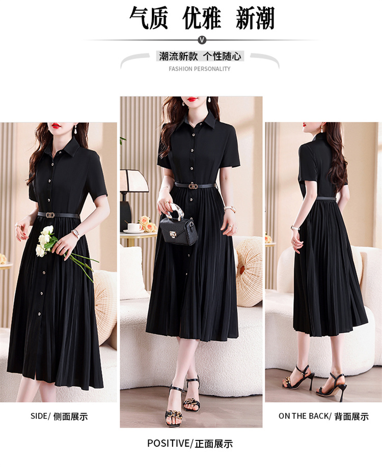 【预售3天】PY 黑色衬衫式短袖连衣裙 &2912