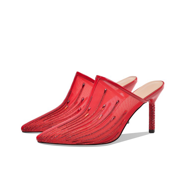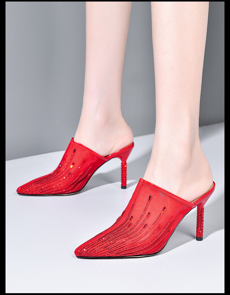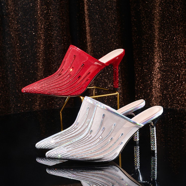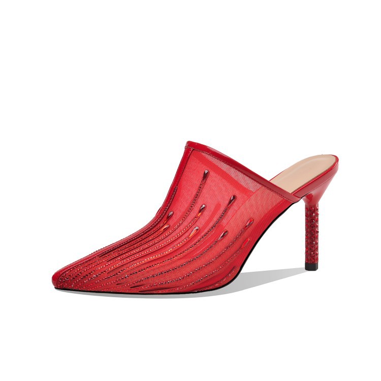 OLD-LX159穆勒鞋2020夏新款真皮水砖细跟半拖鞋包头女凉拖