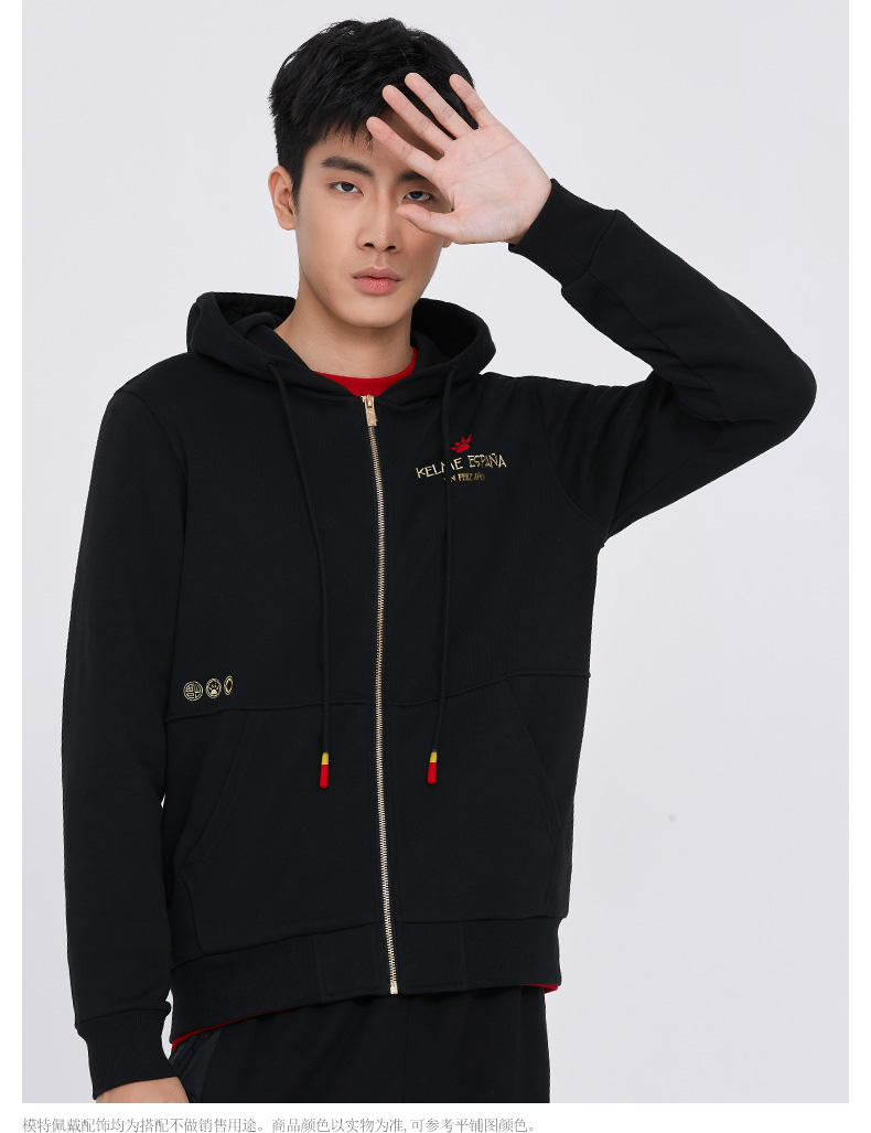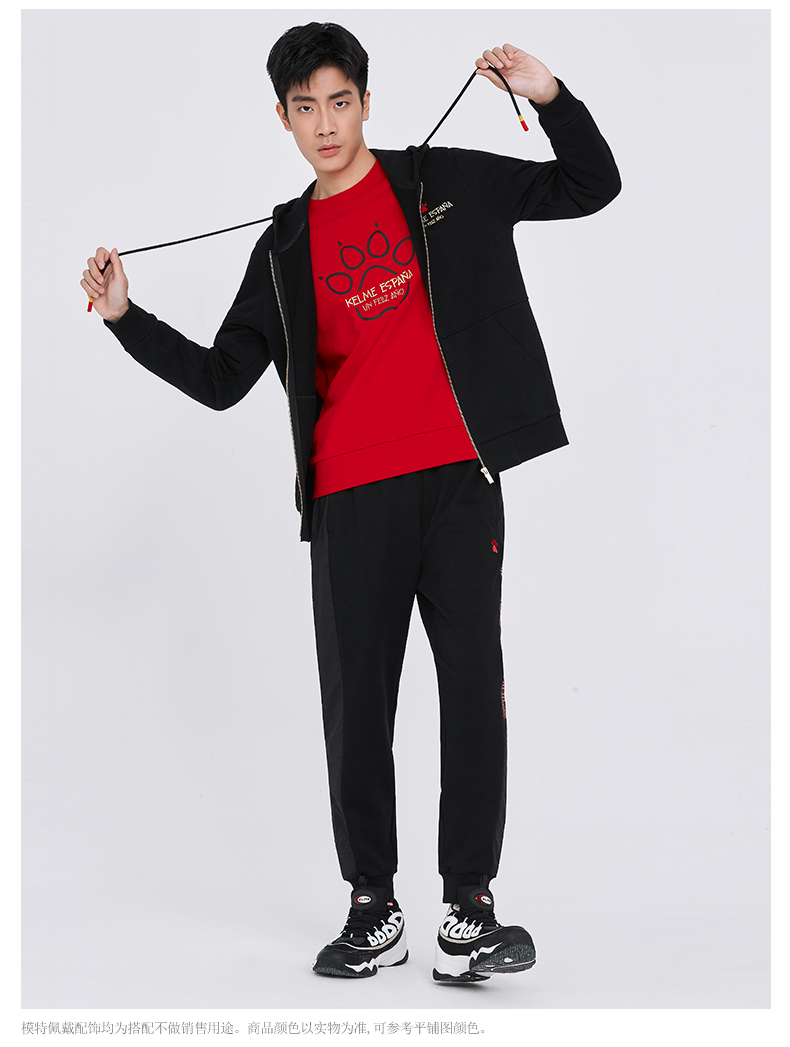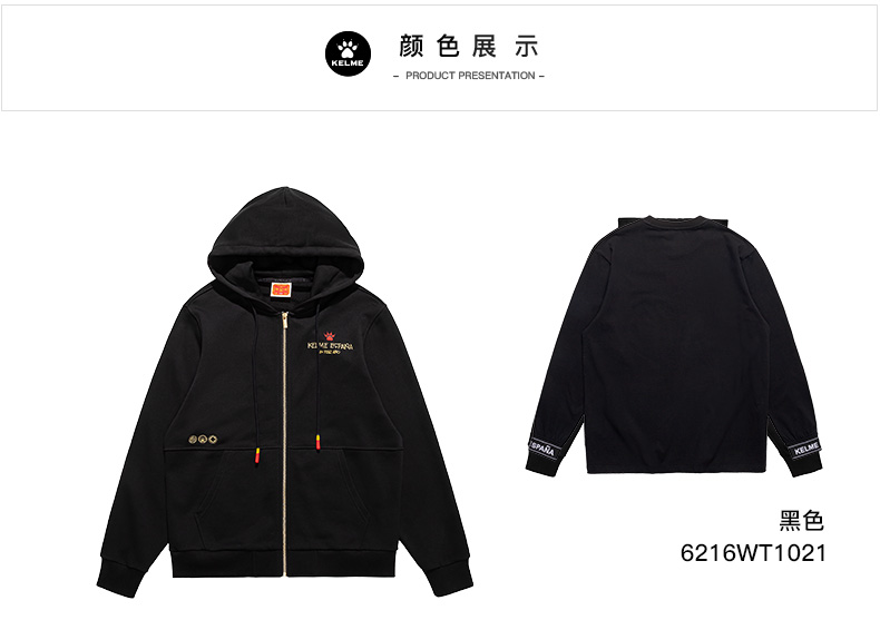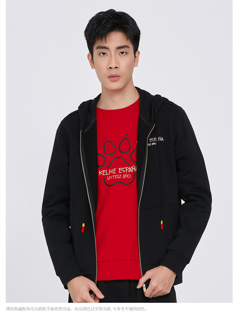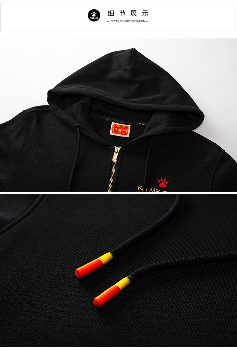 卡尔美 春季新款运动针织外套休闲时尚连帽长袖开衫卫衣