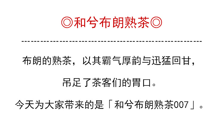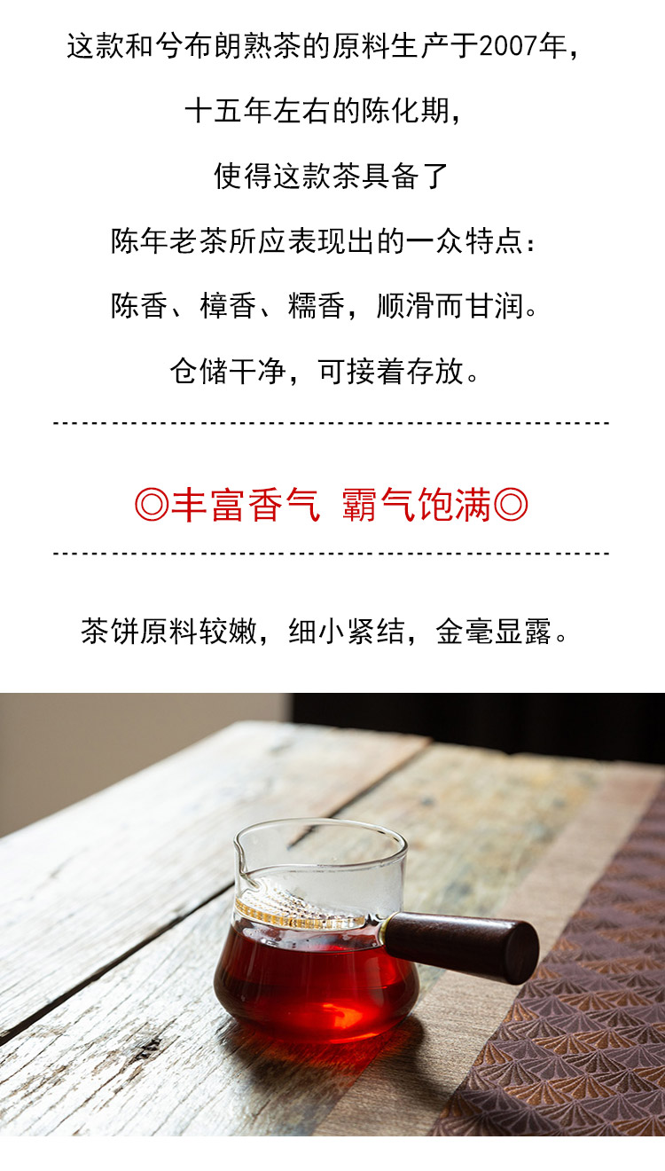 茶香记 和兮布朗熟茶007 古树纯料 仓储干净 霸气饱满 老茶陈韵