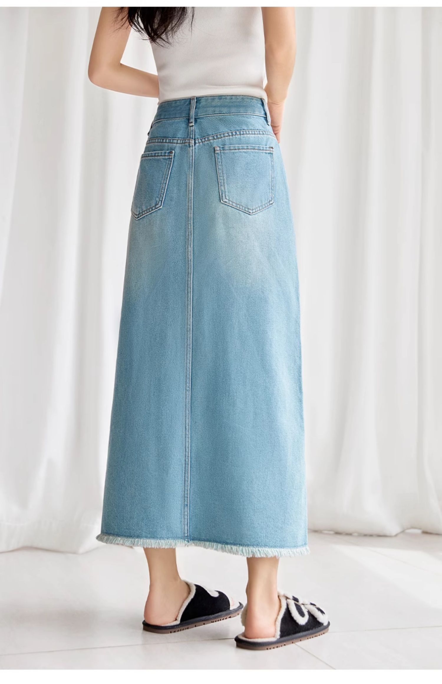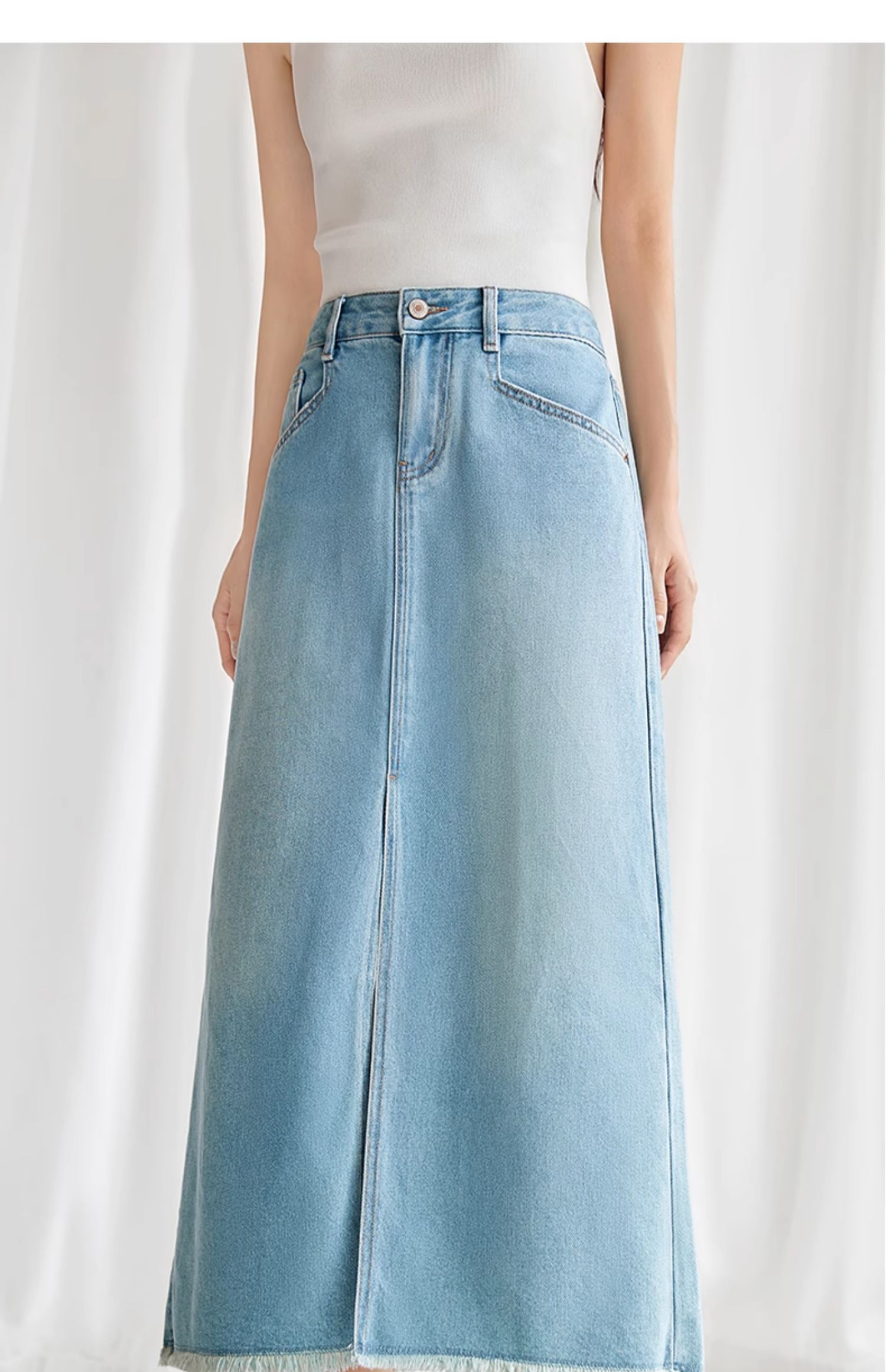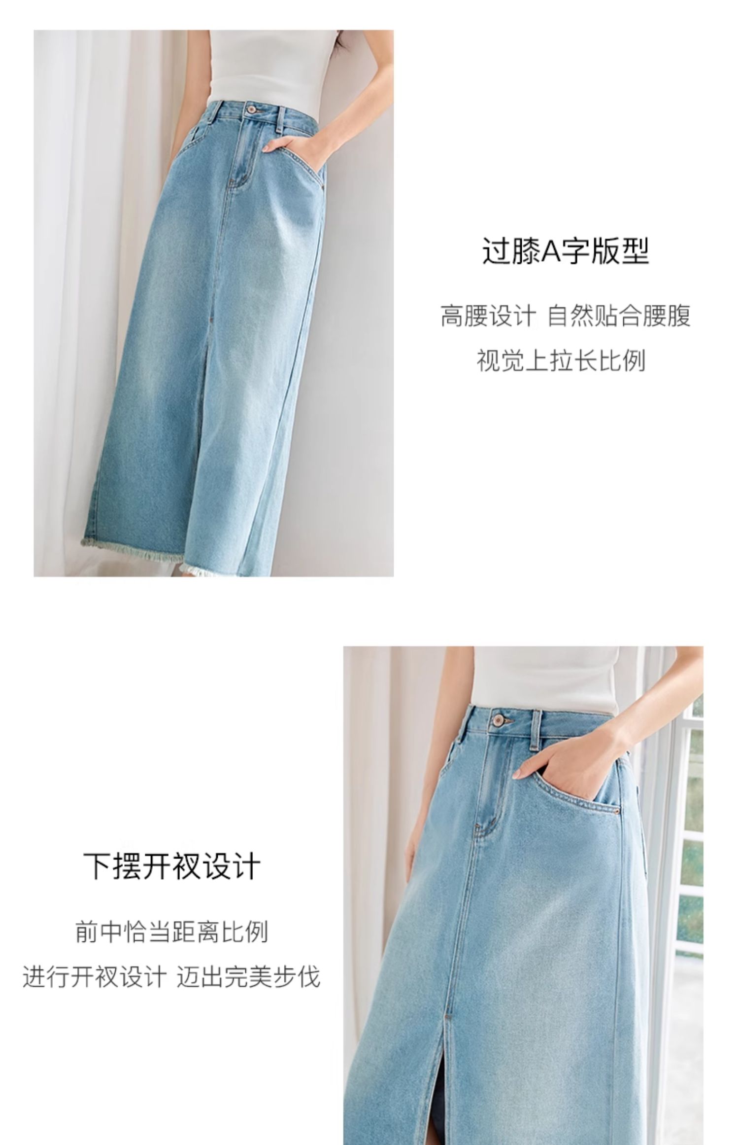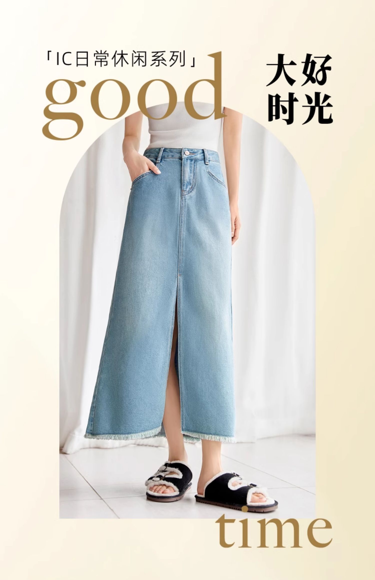 IC 复古开衩毛边牛仔半身裙女新款设计感高级气质通勤裙子