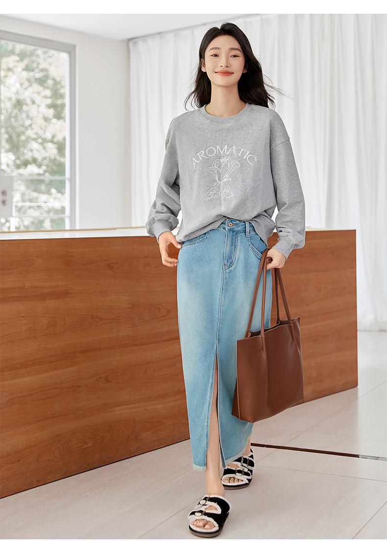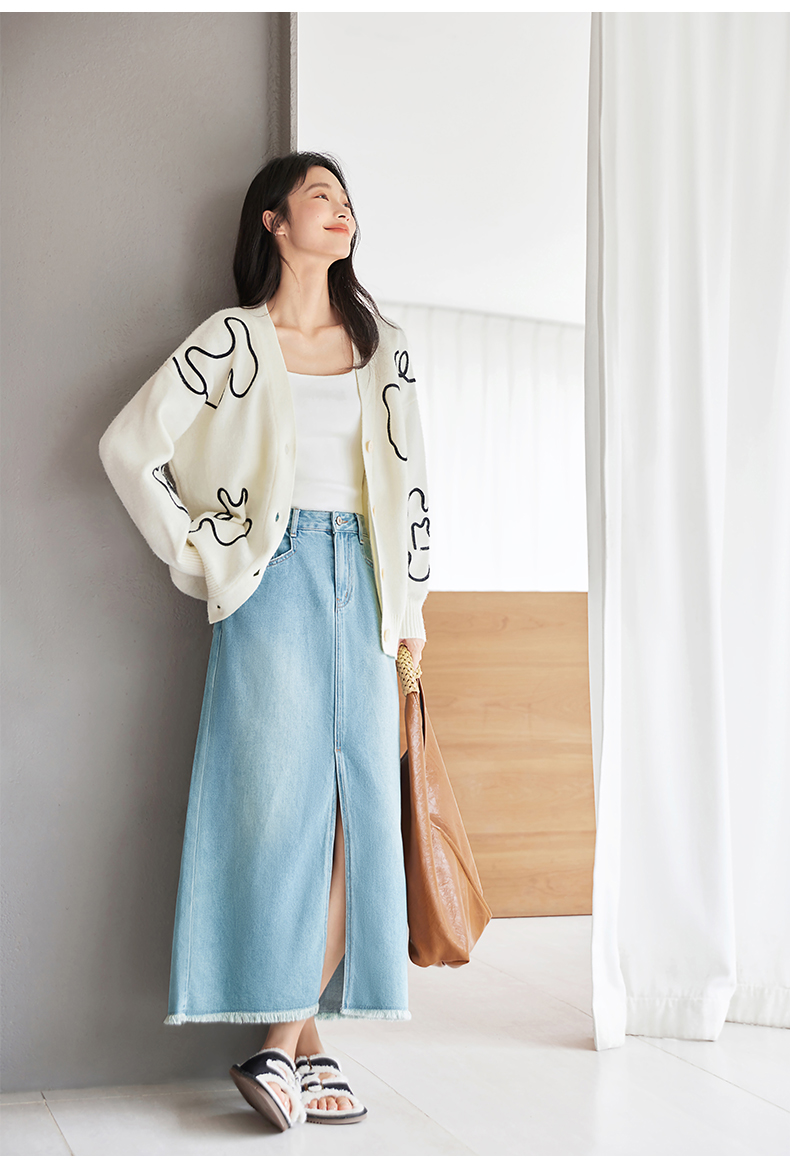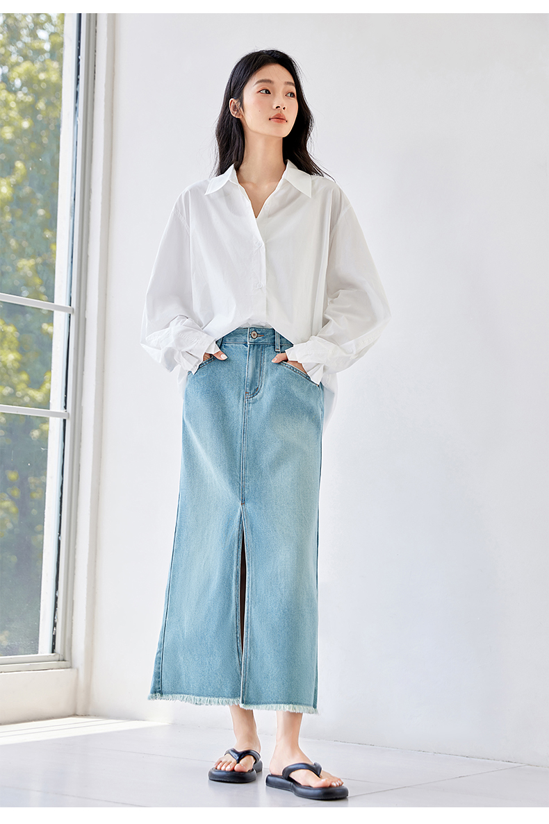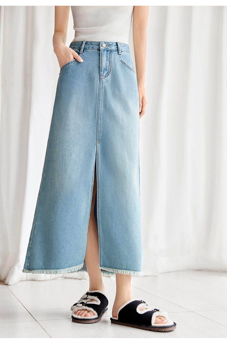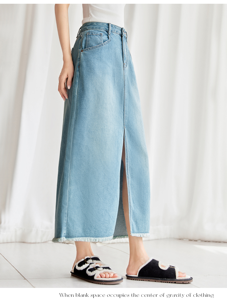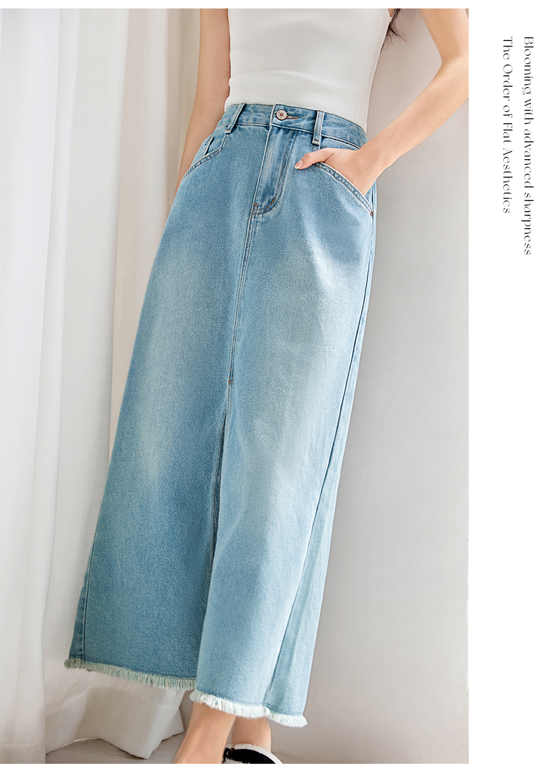 IC 复古开衩毛边牛仔半身裙女新款设计感高级气质通勤裙子