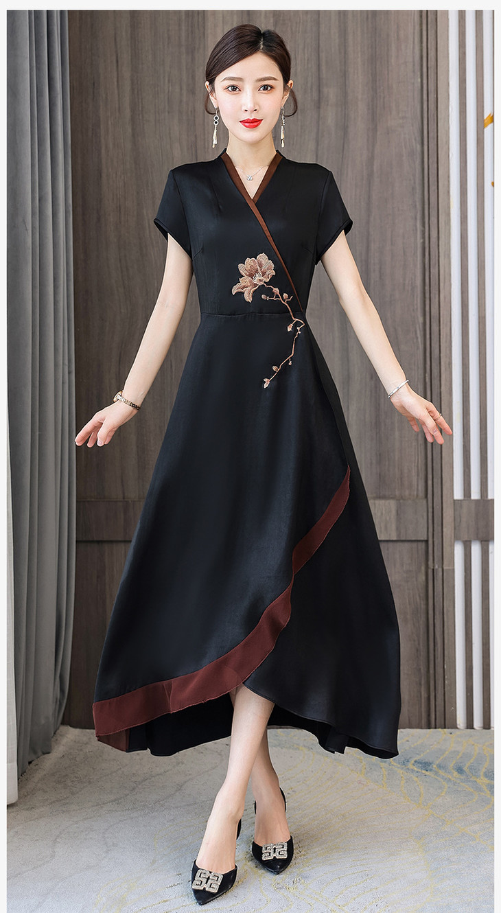 AHM-hzj2999夏季新款中国风优雅气质交领不规则大摆裙