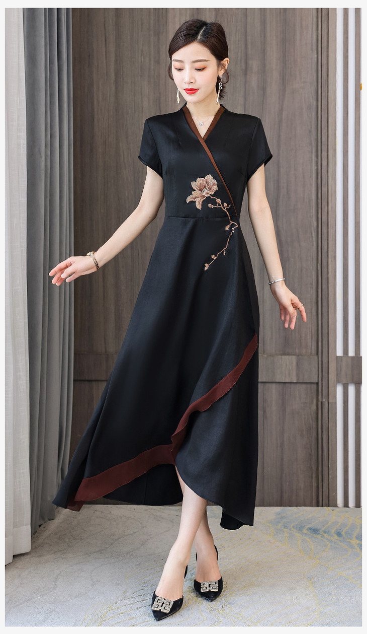 ZA梨花落 新款复古改良中式丝绸长款旗袍