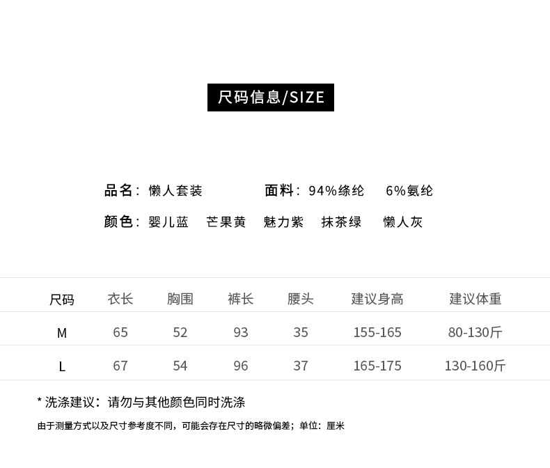 【好看更好穿,舒适到像裸穿】懒人家居纯色套装,选用阿尔卑斯冰爽削光纱柔软轻盈清肤透气,坠感显瘦,既穿既美,可居家可外穿女睡衣睡裤