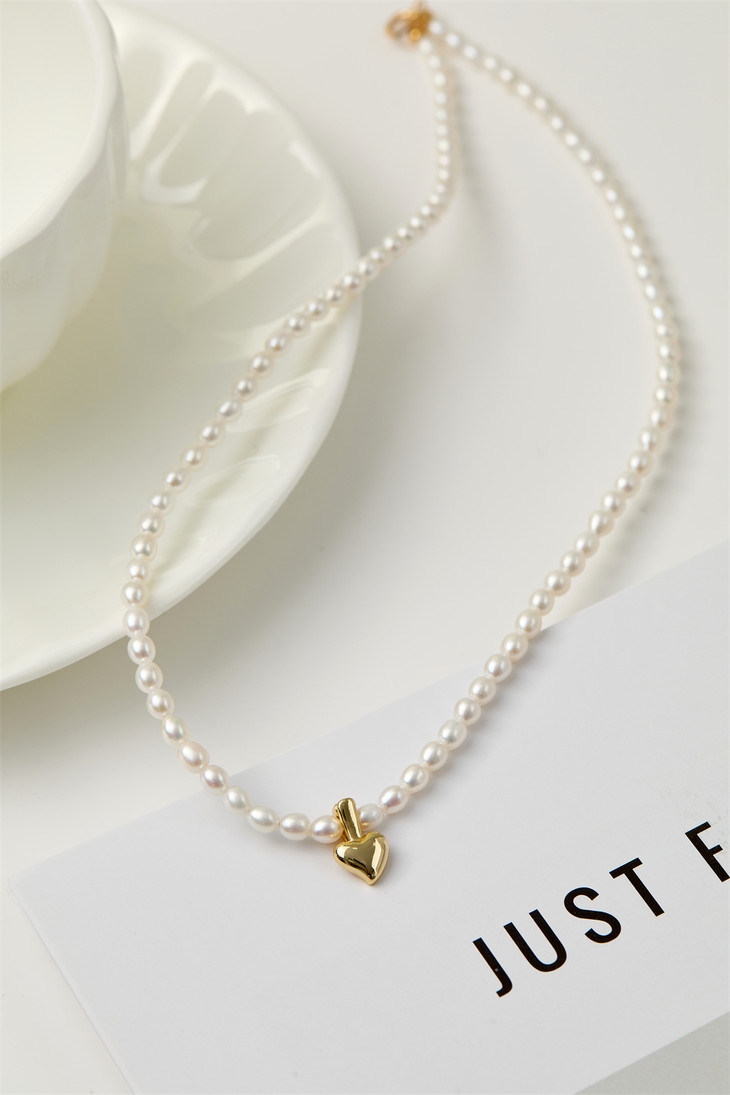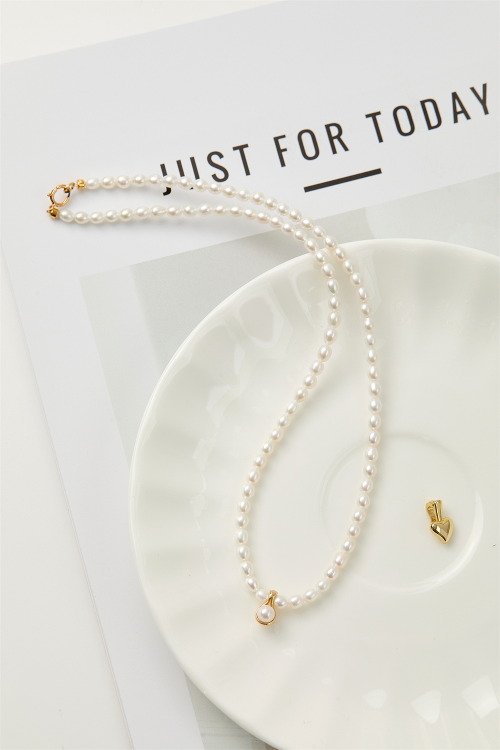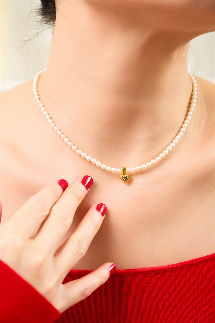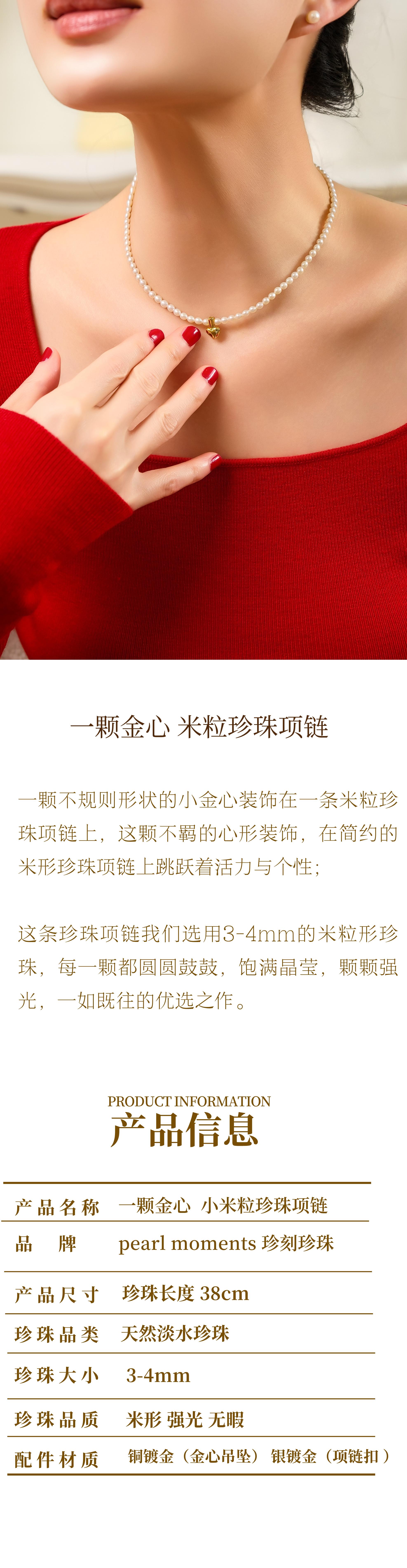pearl moments珍刻 一颗金心 米粒珍珠项链