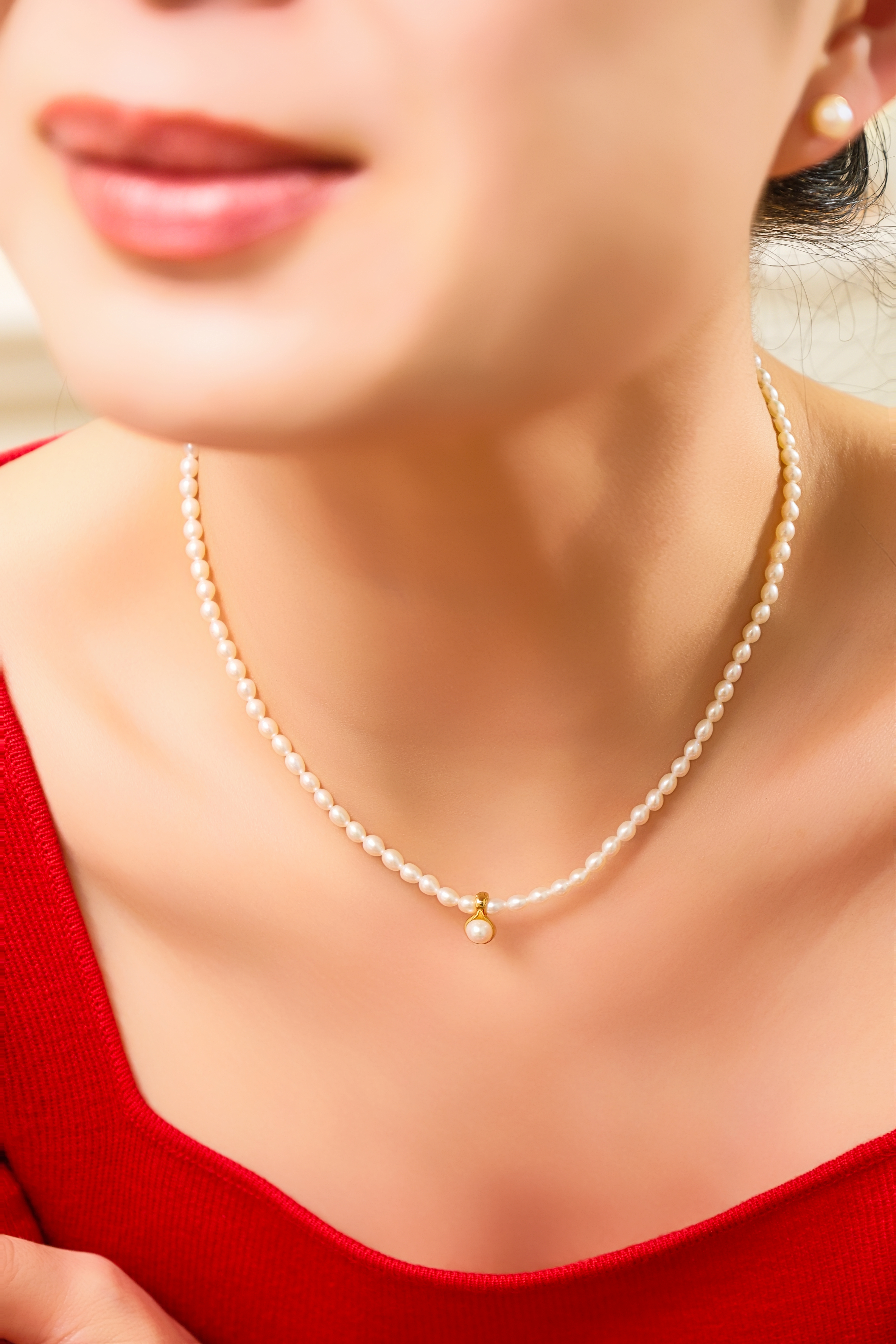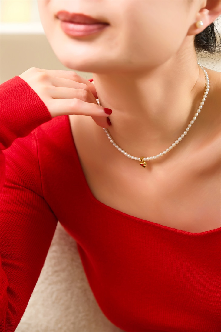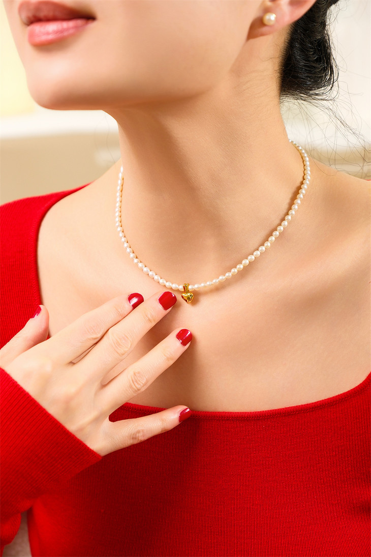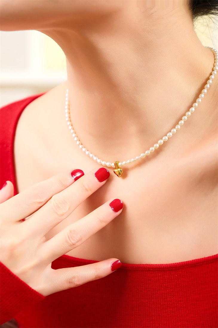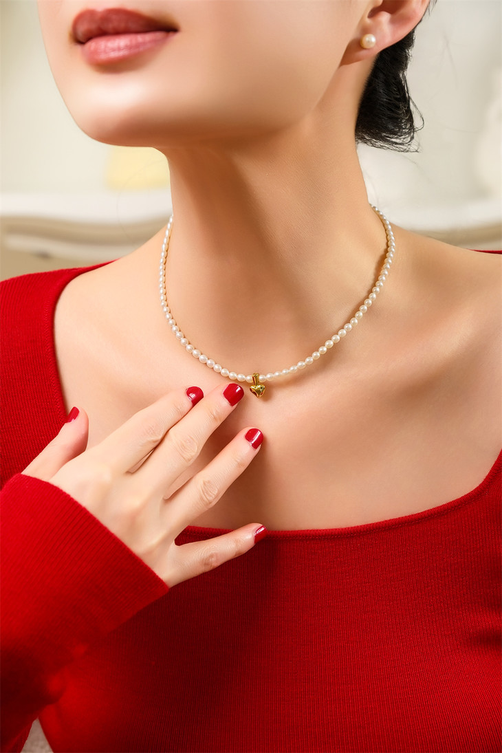 pearl moments珍刻 一颗金心 米粒珍珠项链