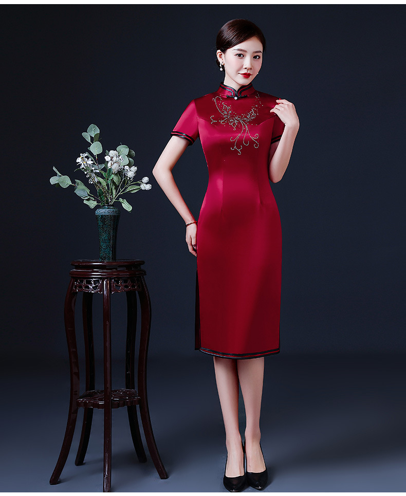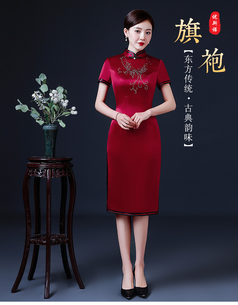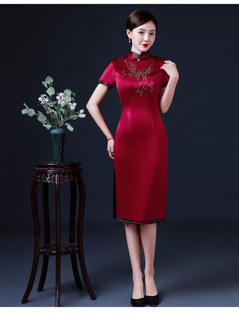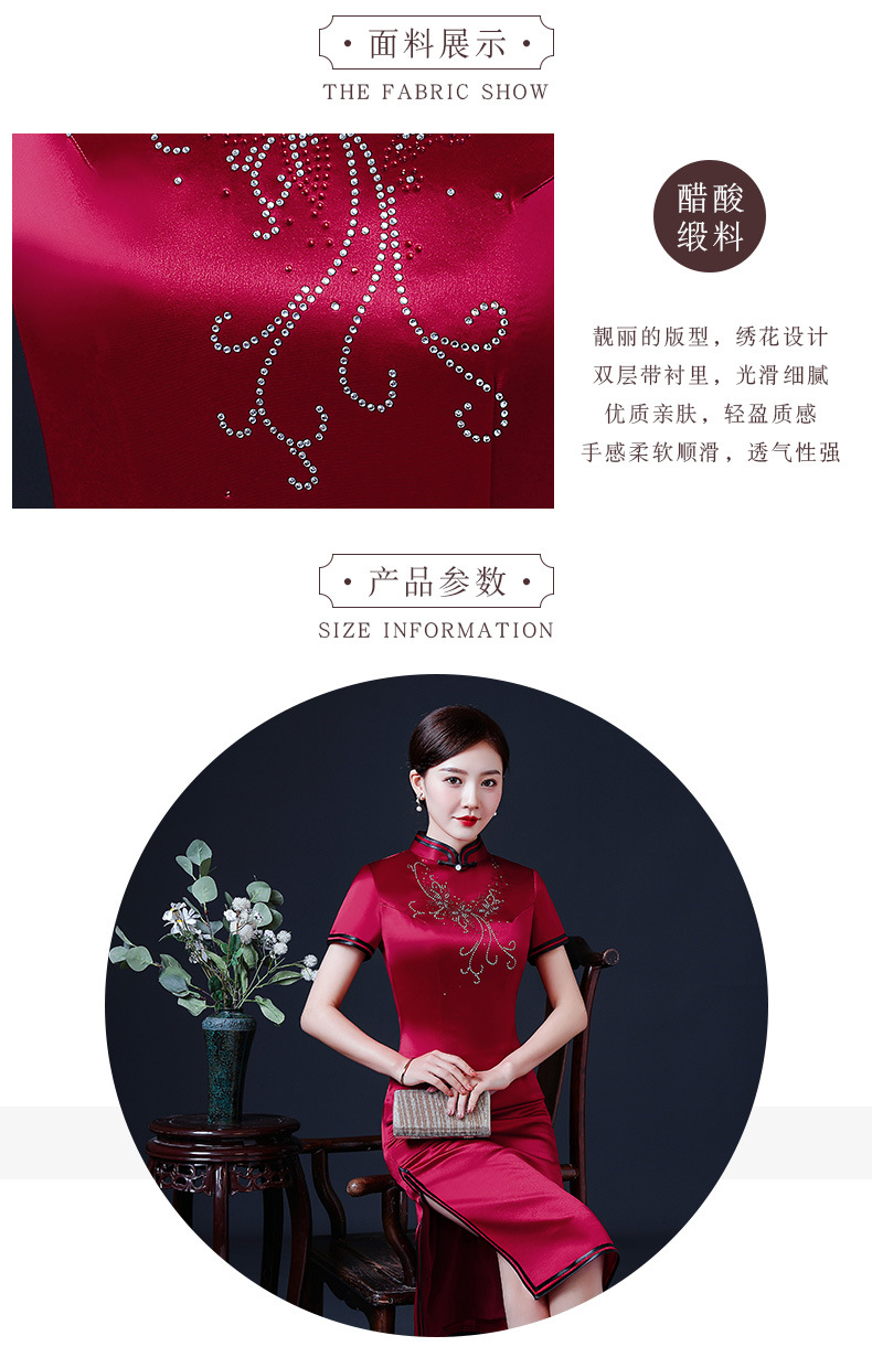 上海旗袍厂LHS-2034新款婚礼 时尚年轻款大气喜婆婆婚宴装红色连衣裙 旗袍春