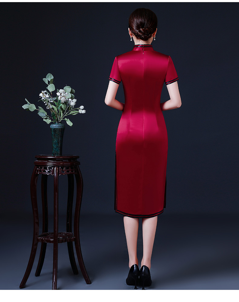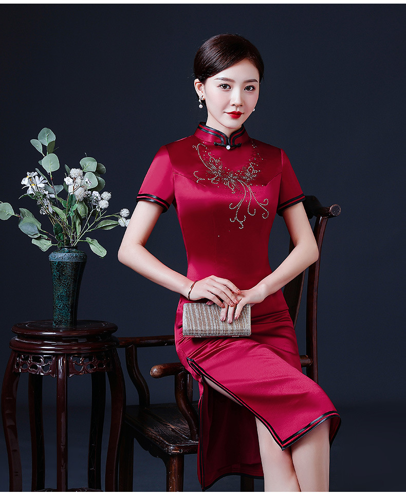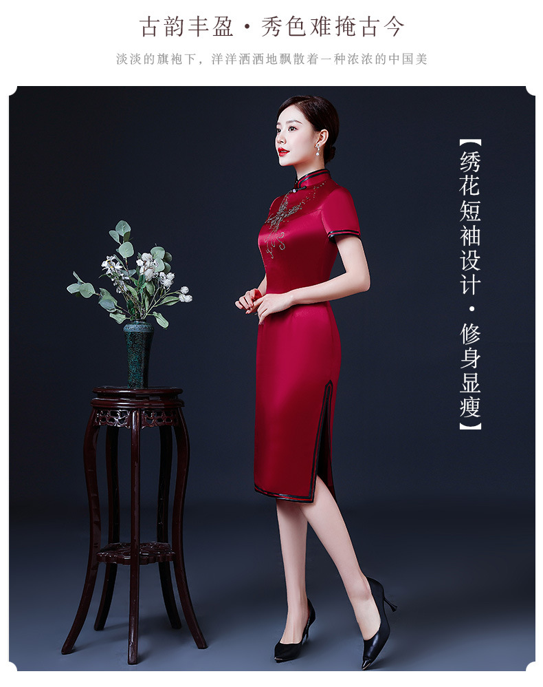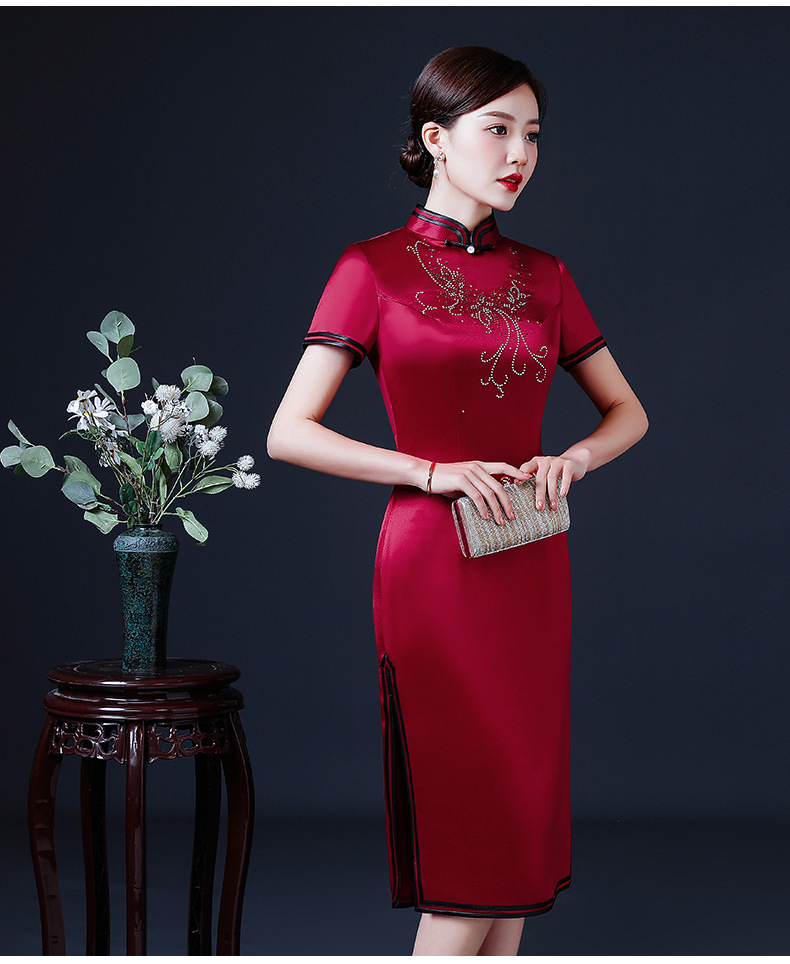 上海旗袍厂LHS-2034新款婚礼 时尚年轻款大气喜婆婆婚宴装红色连衣裙 旗袍春