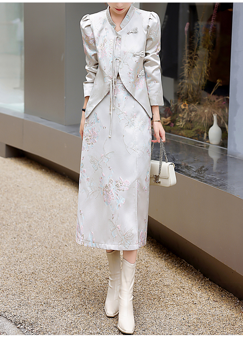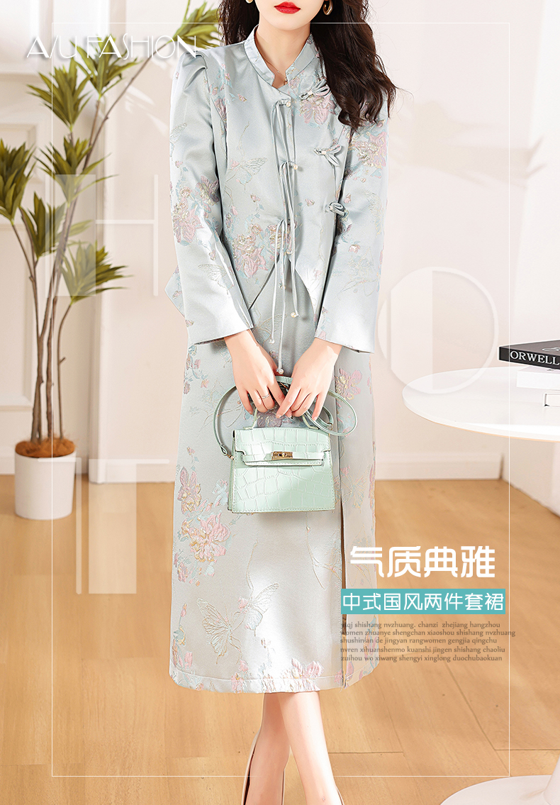 DD-新款两件套装裙女修身显瘦盘扣套裙
