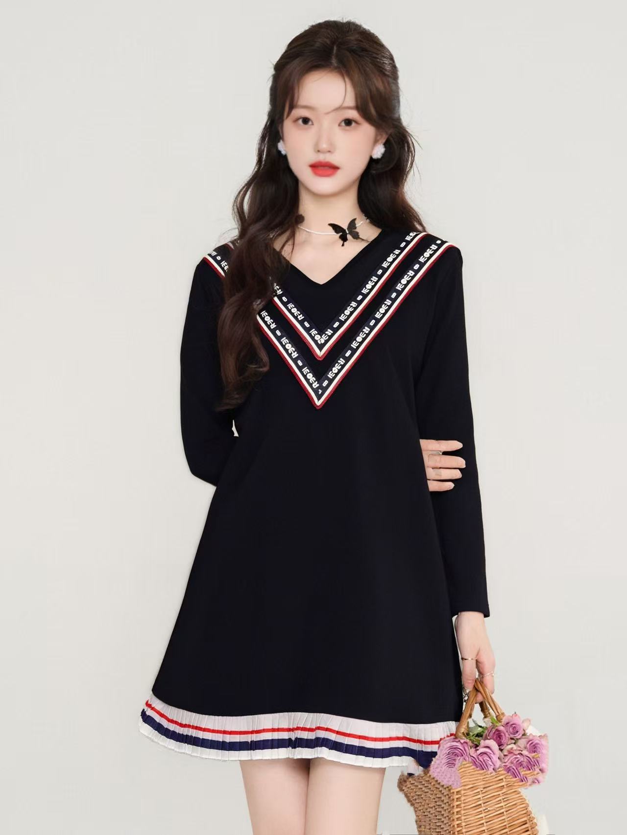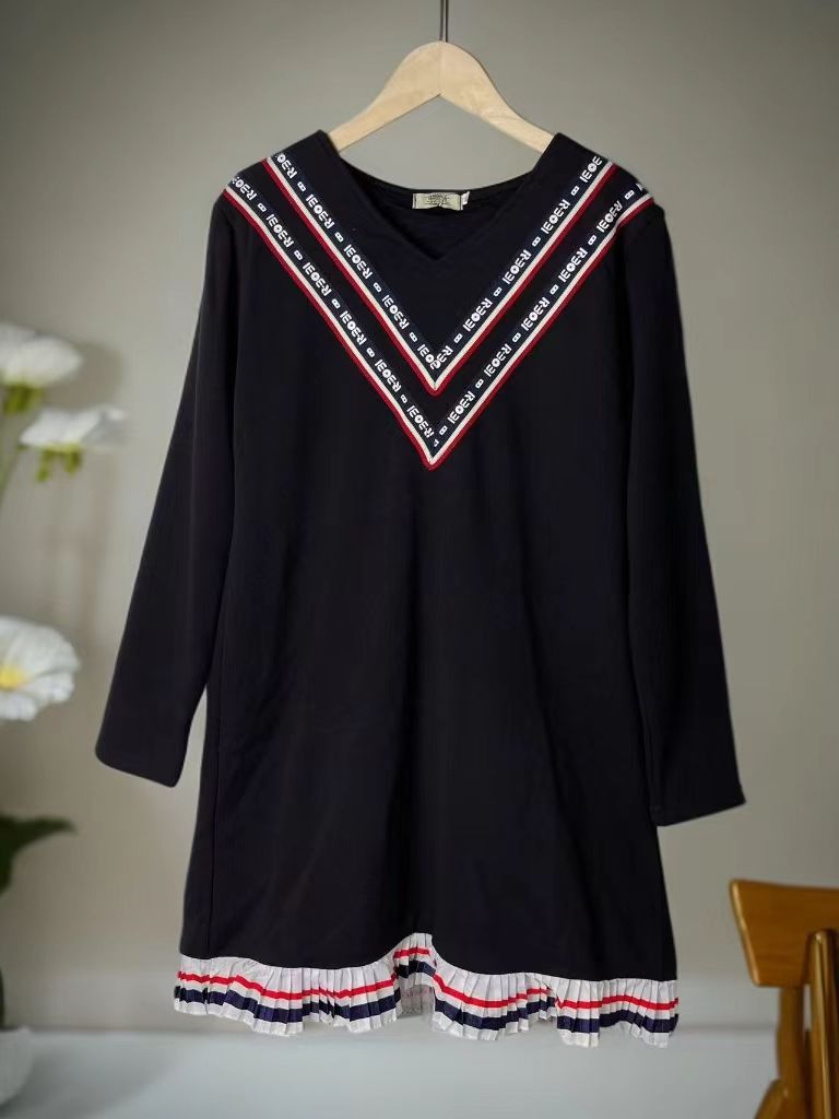 【诗铭洛可】0392百褶边V领长袖卫衣A8-1