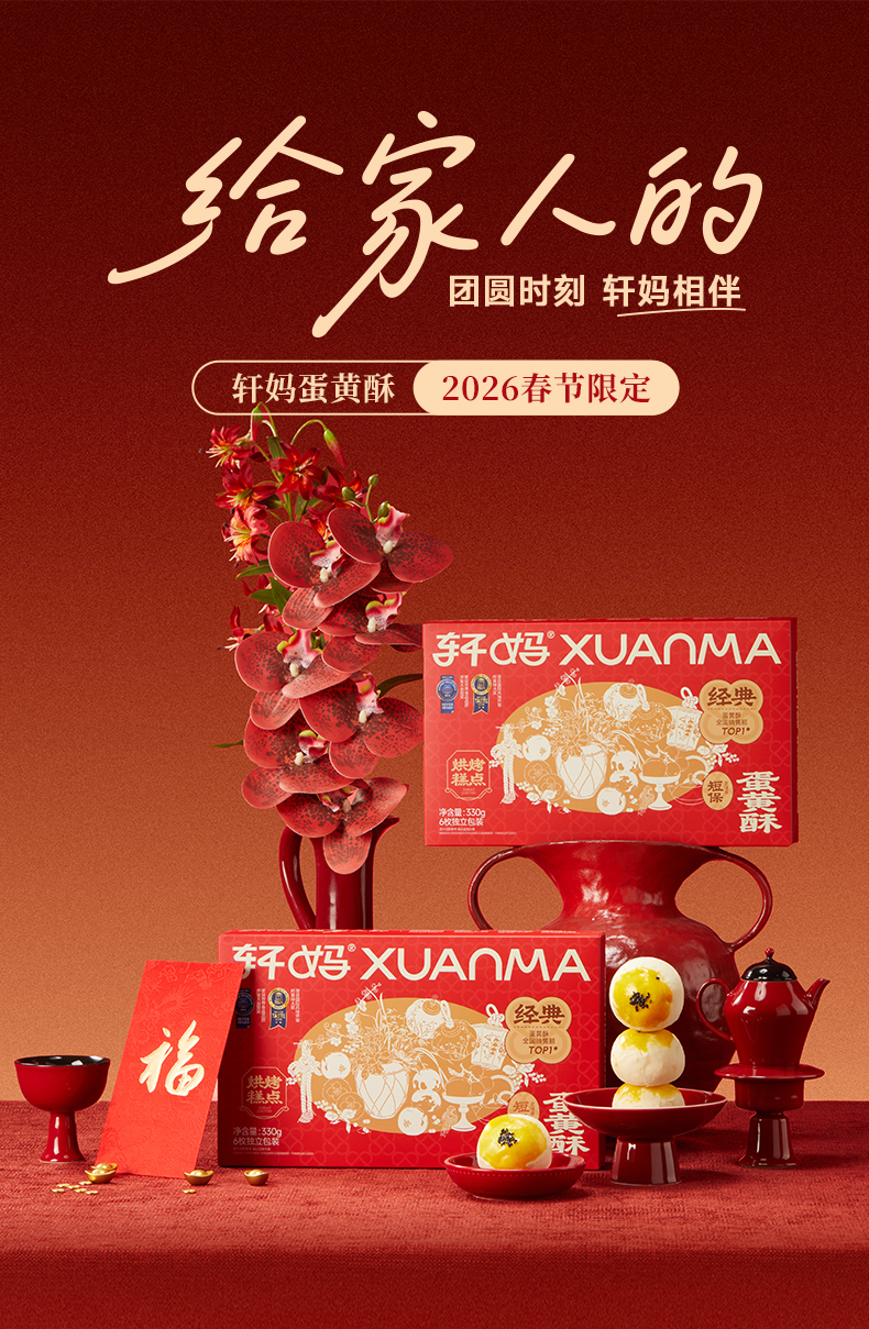 【品牌直发】 轩妈蛋黄酥经典红豆味2026新春款55g*6枚*2盒