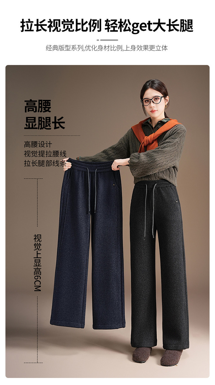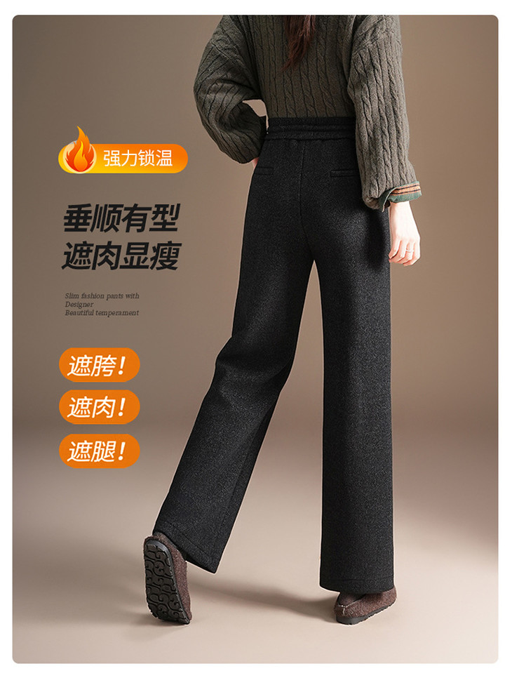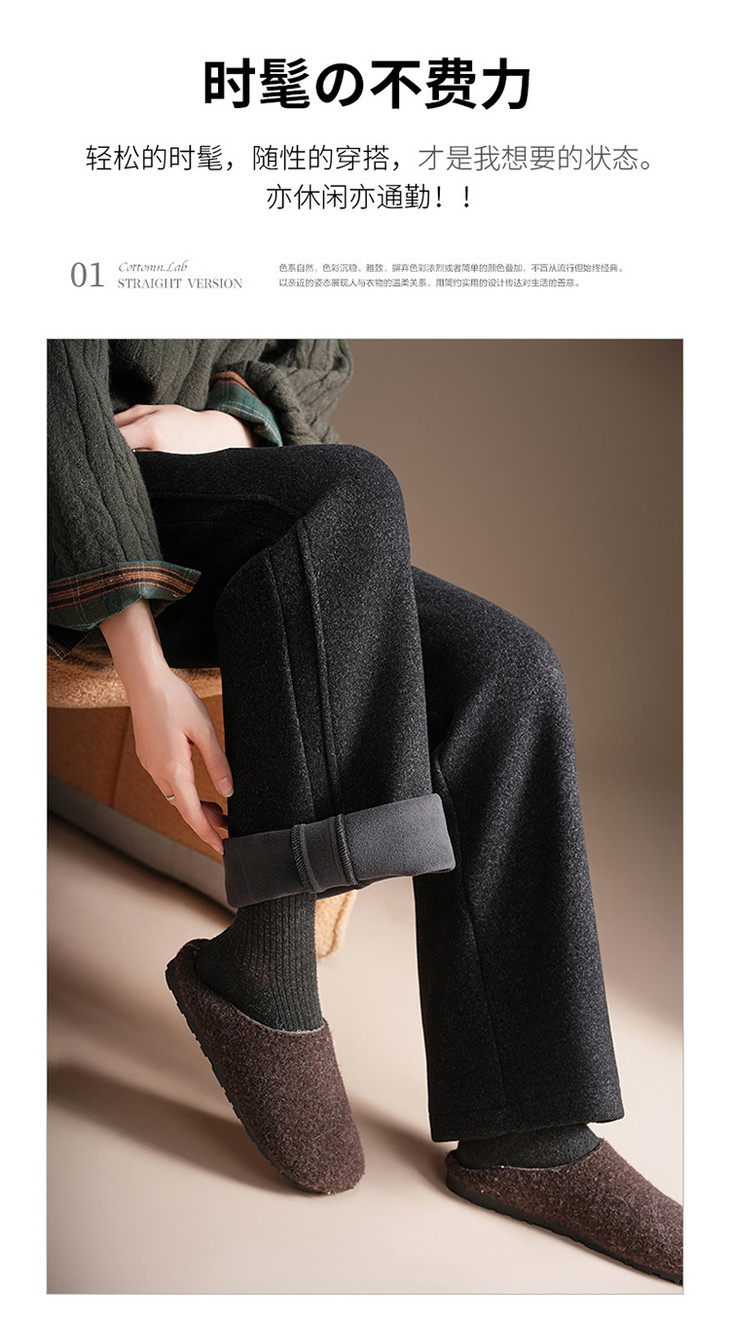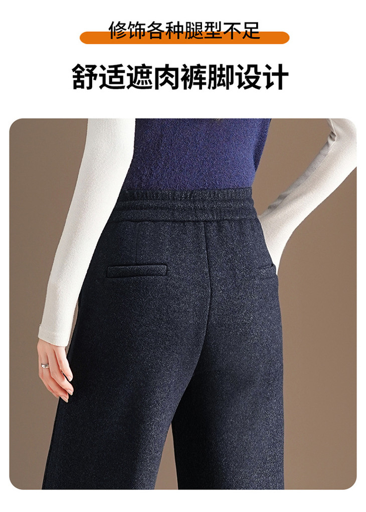 松紧腰加绒长款休闲裤,垂坠感修身直筒裤显瘦阔腿裤MYX-KDFY-25162-L