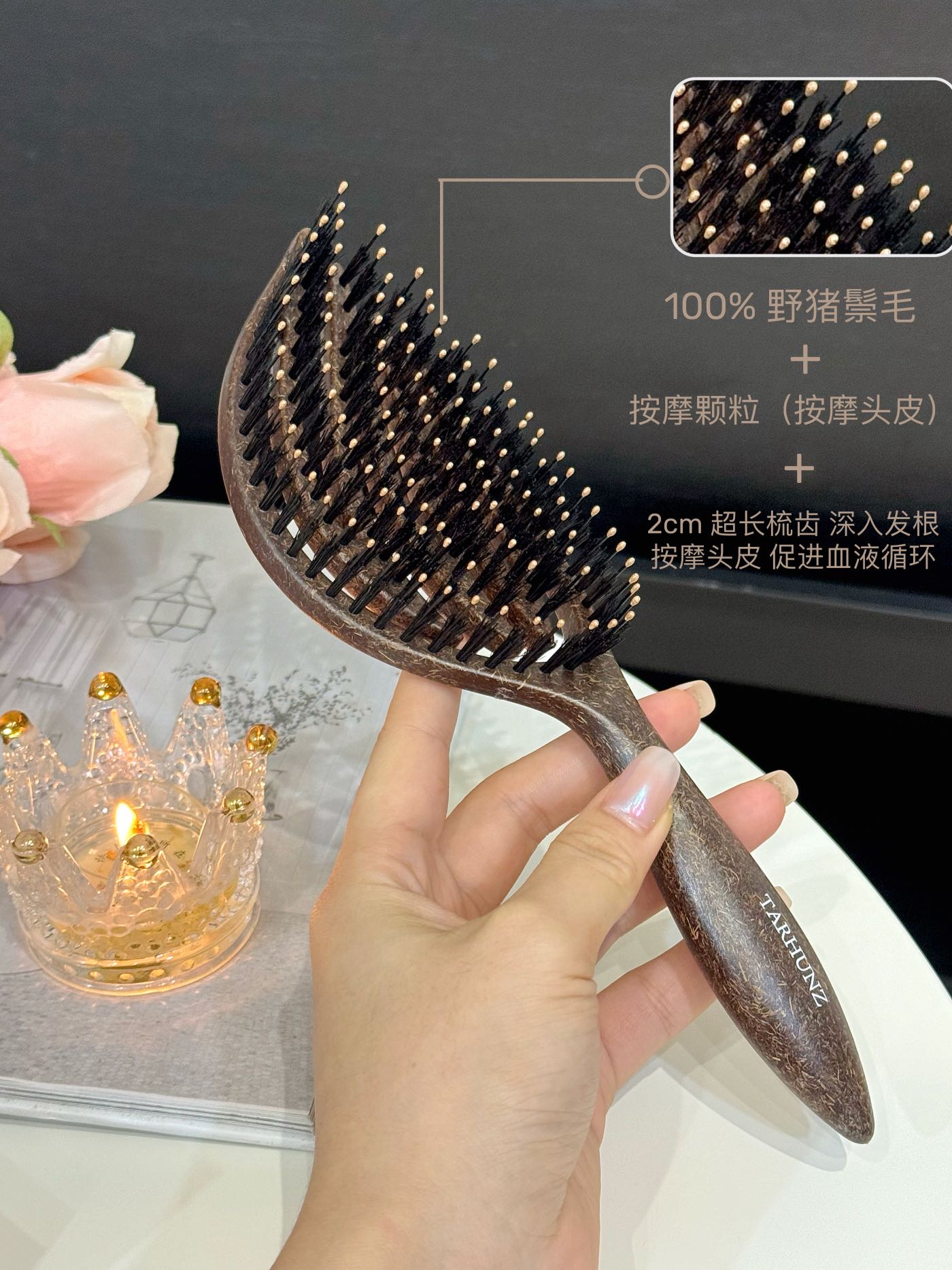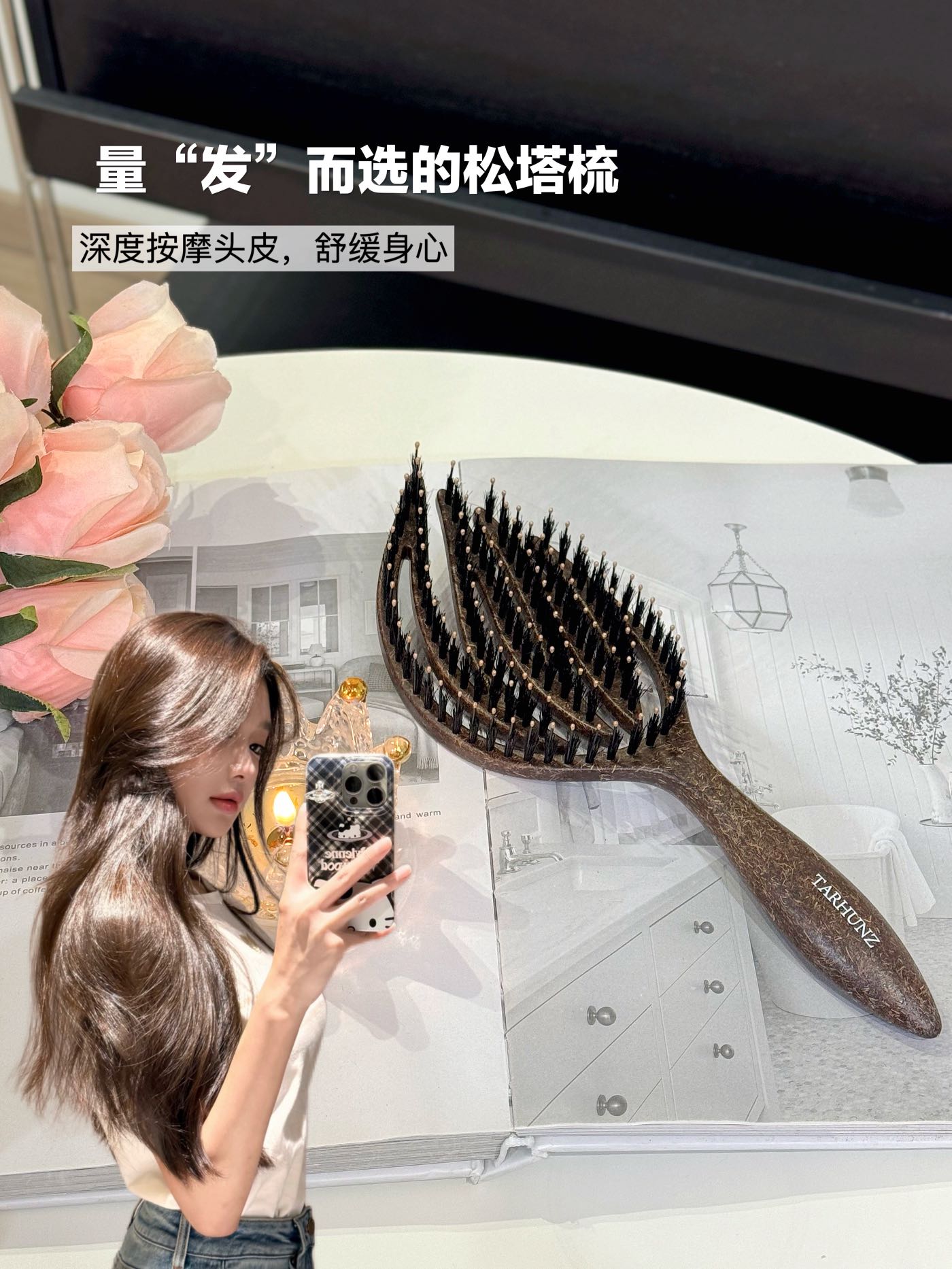 【TARH&UNZ 耶丝松塔梳】zheng品‼️全网控价189!全新升级二代松塔贝壳野猪鬃梳子套装! 独家🔥专利款!树叶造型椰丝松塔梳! 🍀🌈一把好的梳子!真的能陪你很久!强烈推荐👍】 简直是本油头星人的天菜! 比起千篇一律的口红香水猪鬃梳礼盒注意⚠️注意⚠️是不是好东西, 一定要看材质! 天然椰壳耶丝,干湿两用!耐热不伤发! 看实拍介绍,这款梳子真的不一样! 之前用普通梳子梳打结头发痛到飙泪😭 现在入手的高端松塔梳。严选柔韧猪鬃毛一梳到底很丝滑! 更🐂的是能把发根油脂梳到发尾 梳完后发质看起来自带高光✨柔软硅胶气囊加上圆润珠头,能够深入头皮 每次梳头都像给头皮做SPA~。