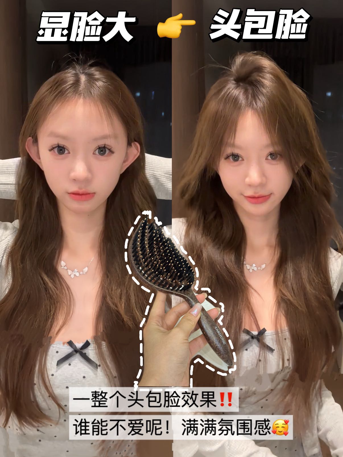 从包装开始就仪式感拉满猪鬃毛+松塔气囊双倍柔顺buff。像在给做头部SPA 即使我这种细软塌发量又多的 也能get高颅顶😆