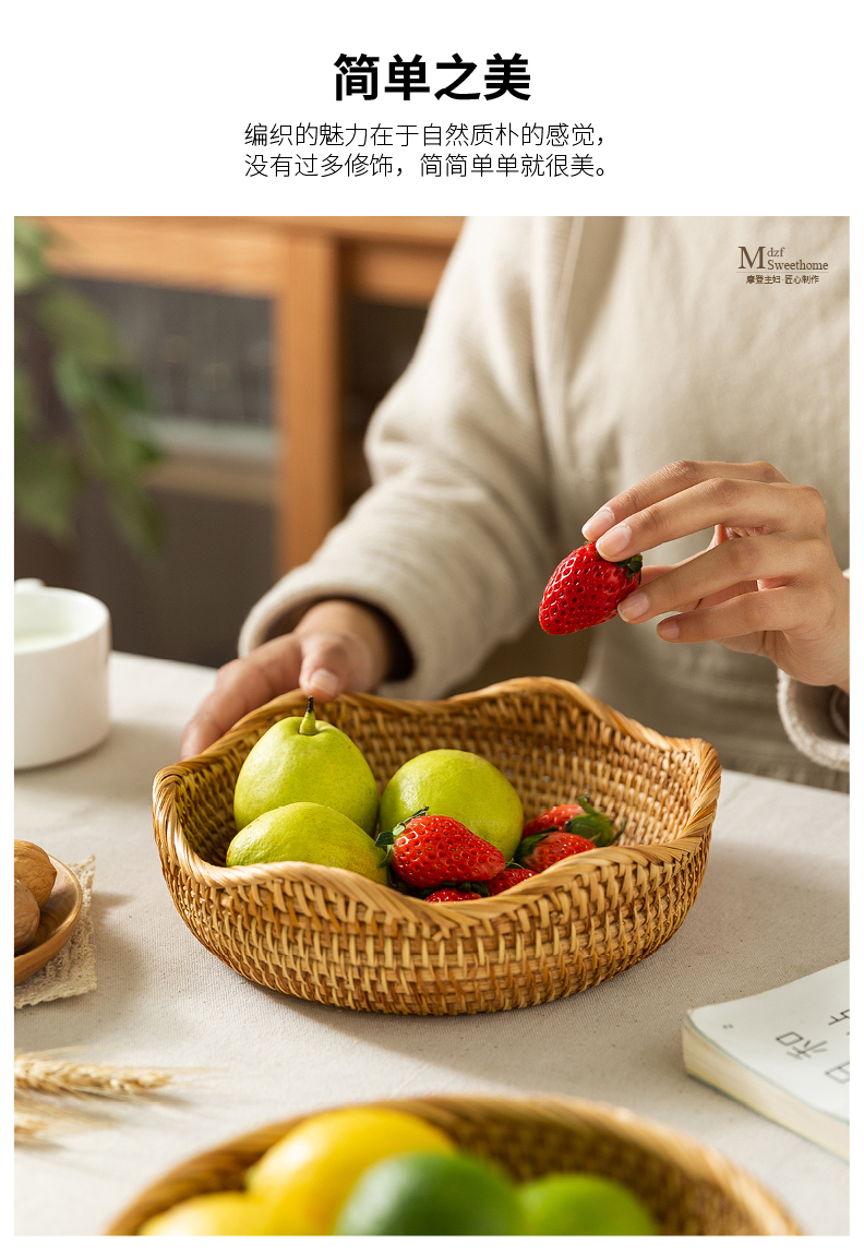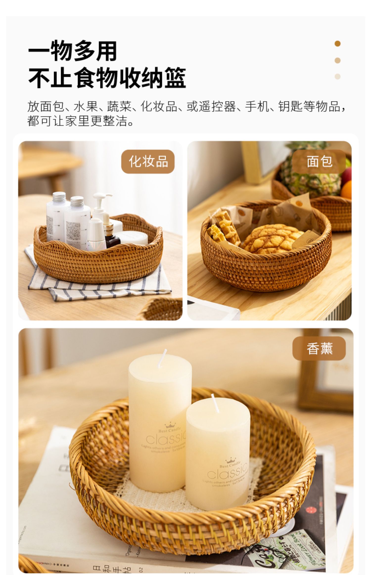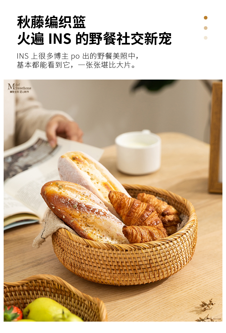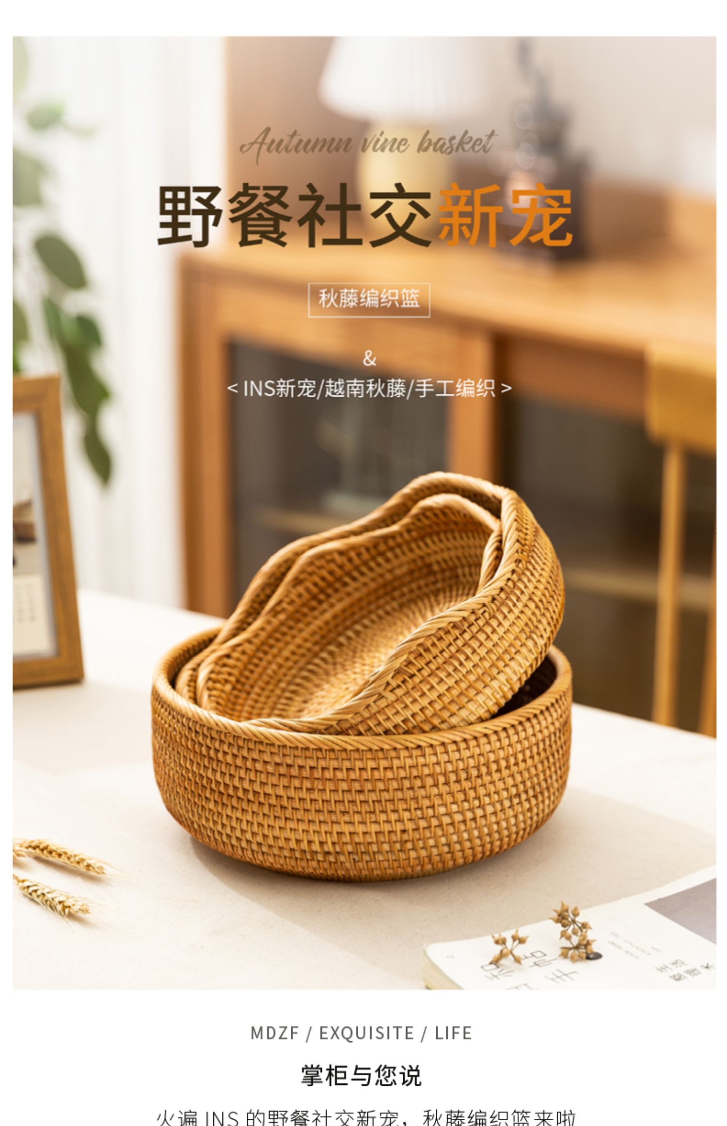 摩登主妇收纳篮藤编收纳筐编织馒头筐馍筐家用蒜姜收纳零食框篮子