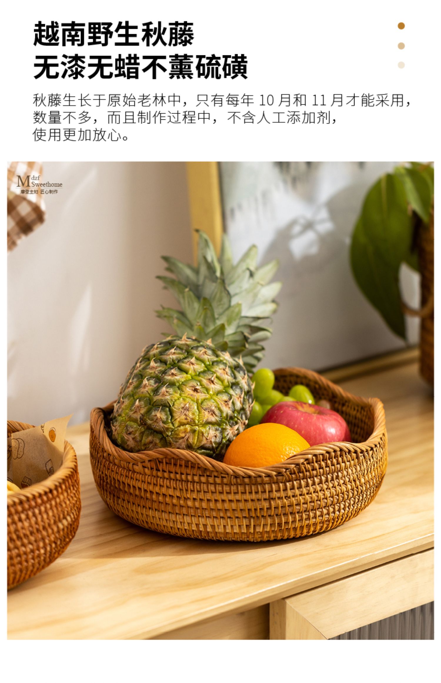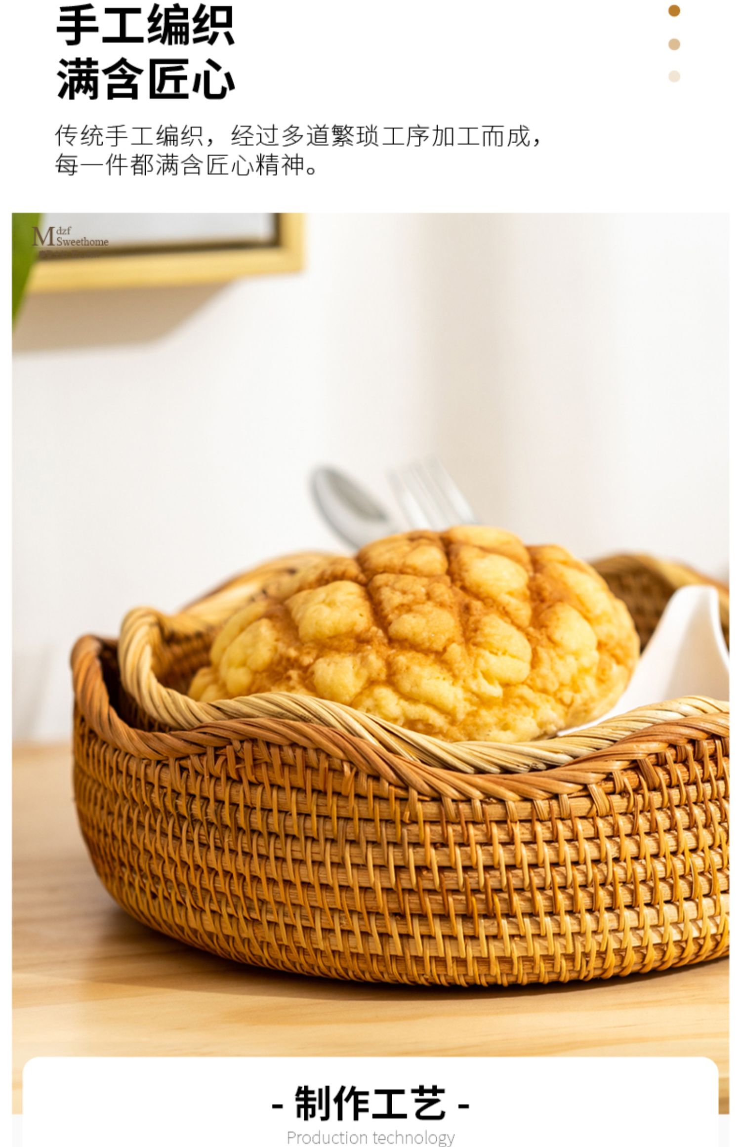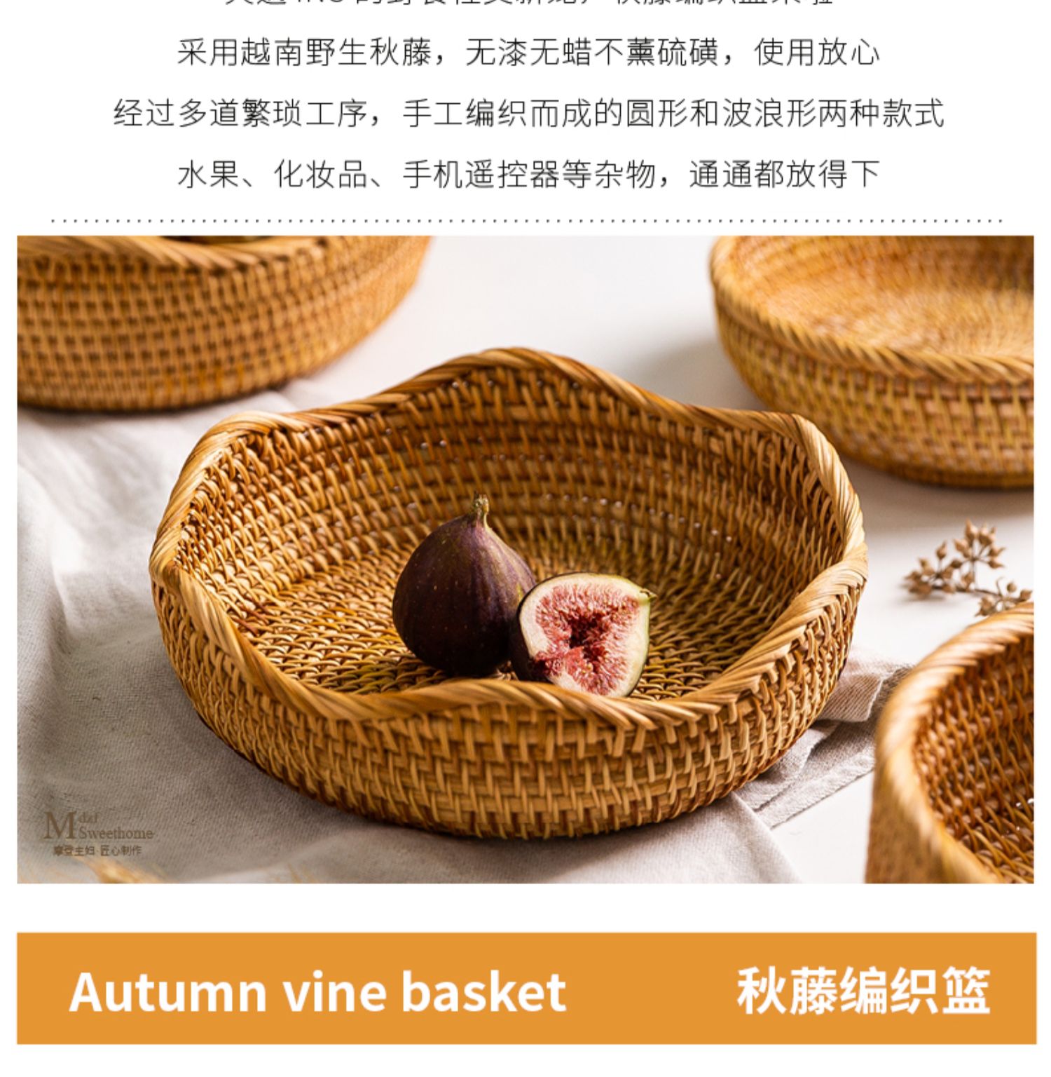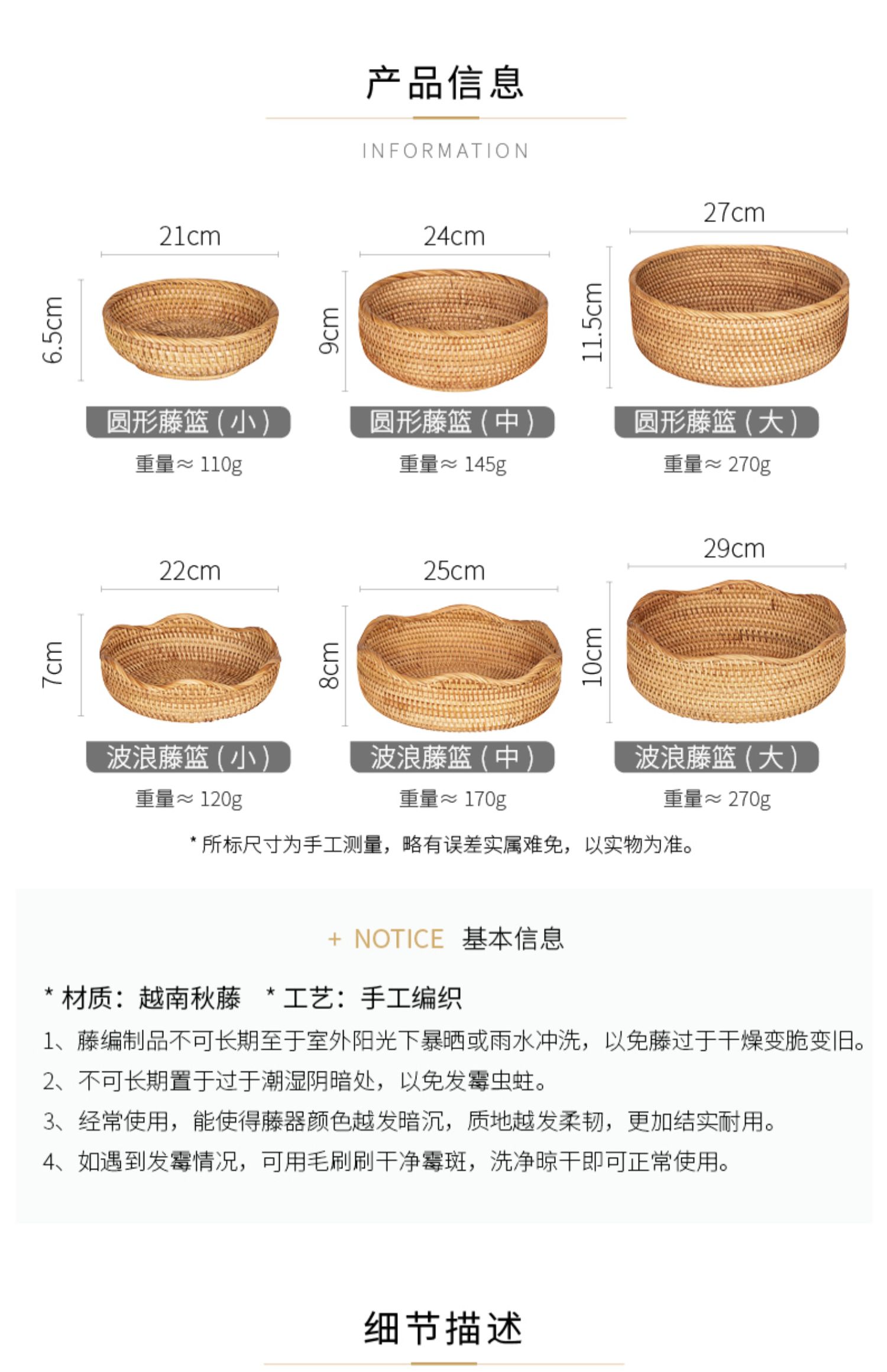 摩登主妇收纳篮藤编收纳筐编织馒头筐馍筐家用蒜姜收纳零食框篮子