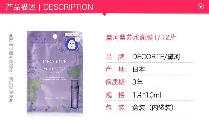 Decorte黛珂紫苏水面膜12片/盒【香港直邮】