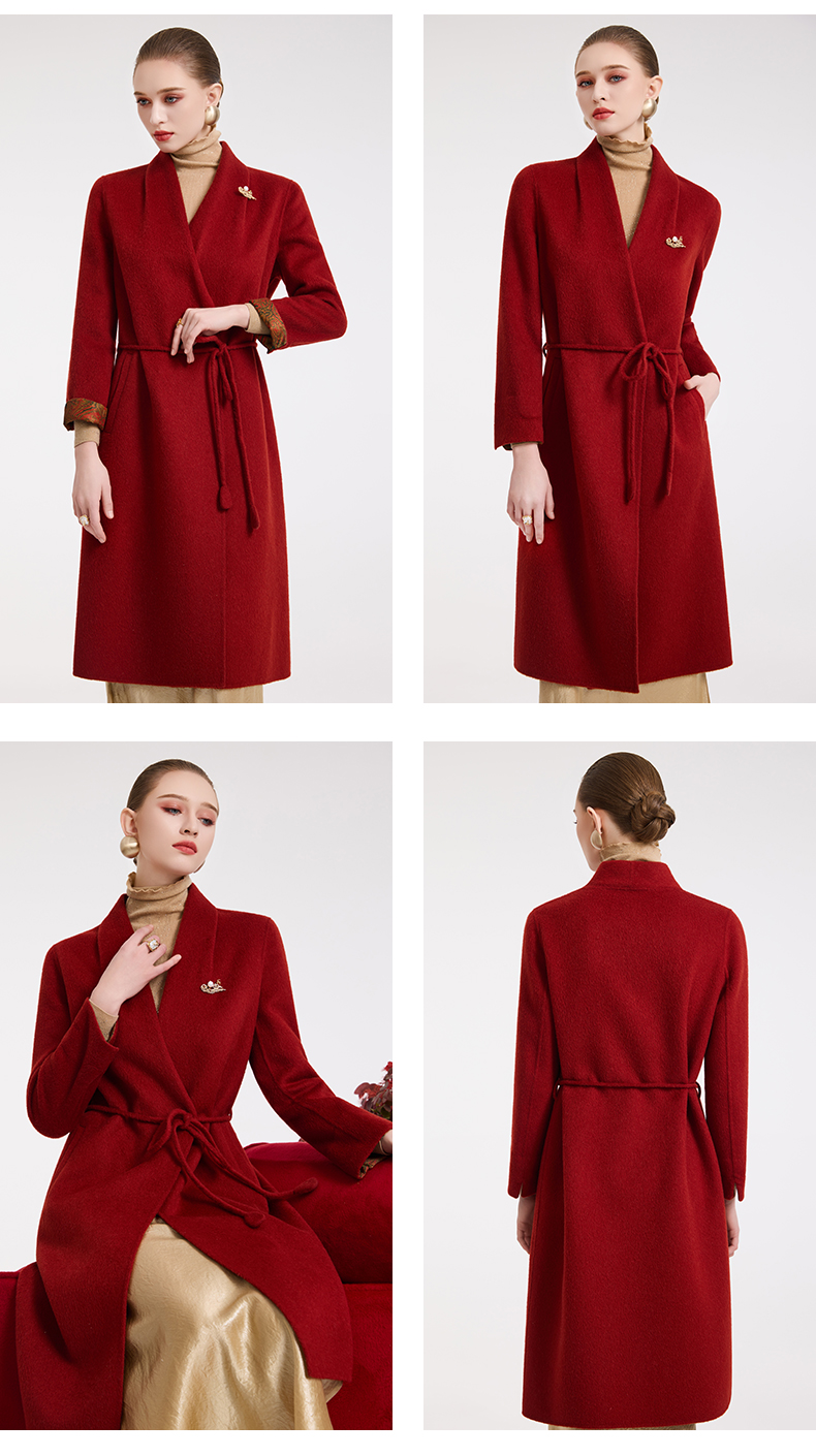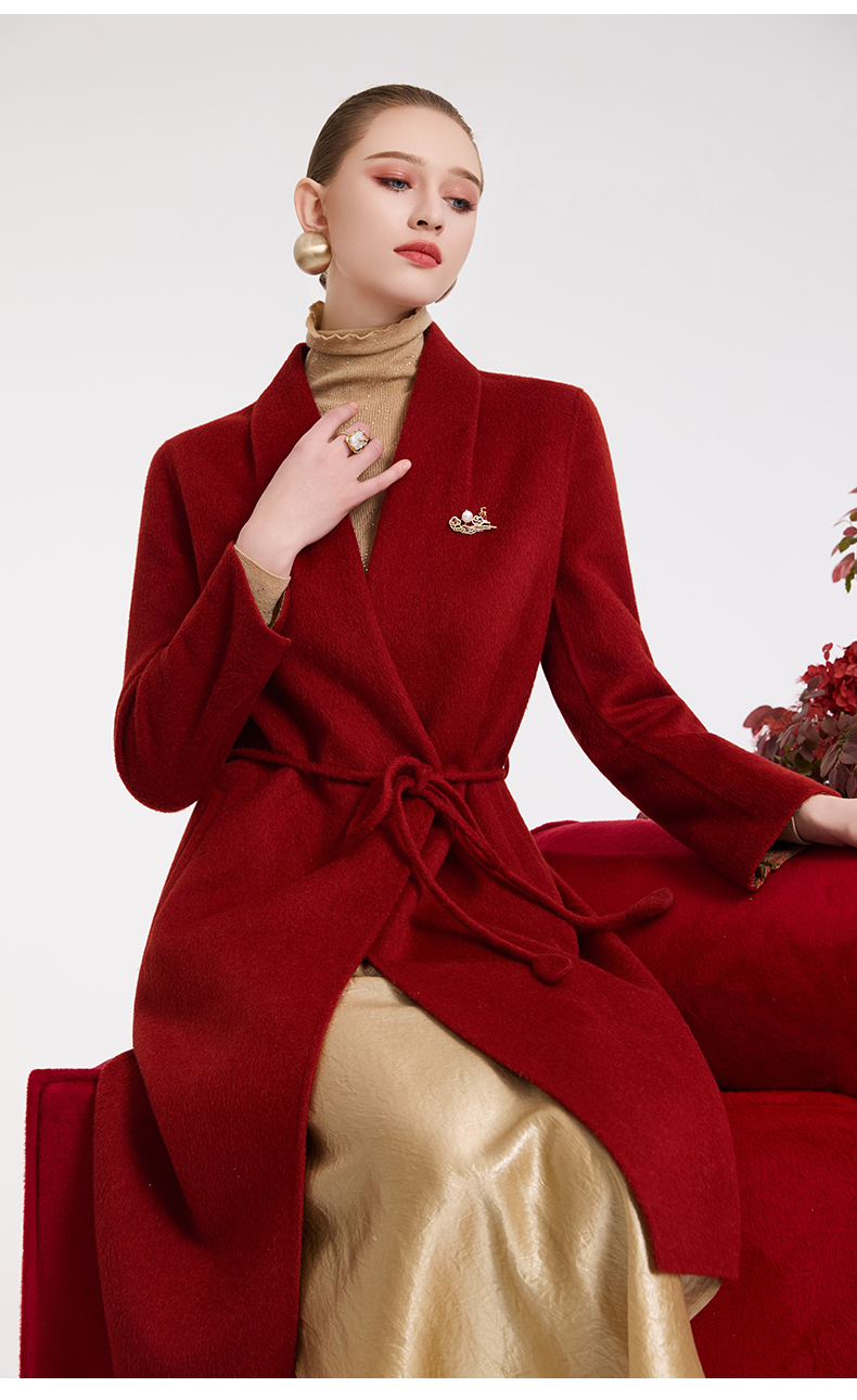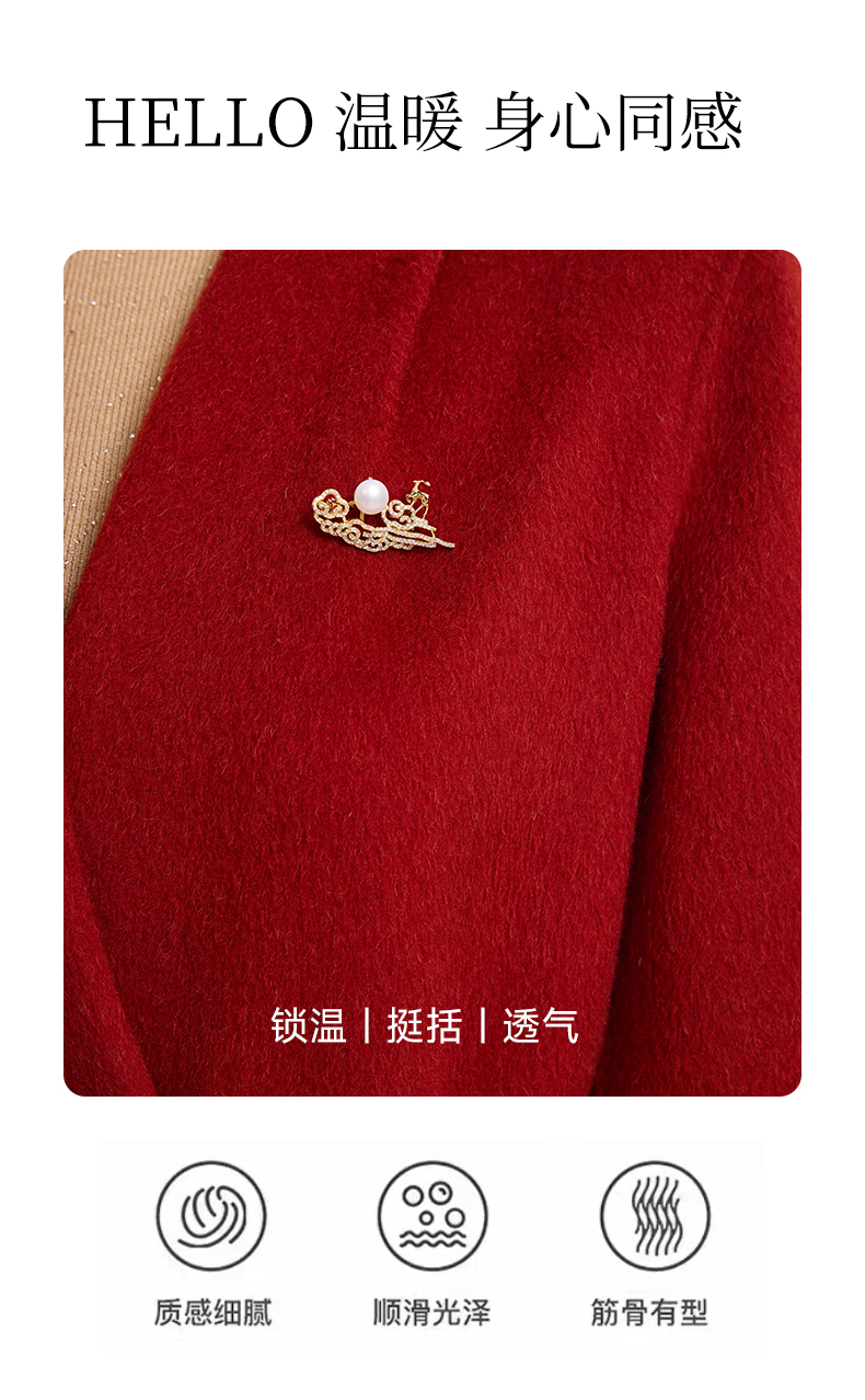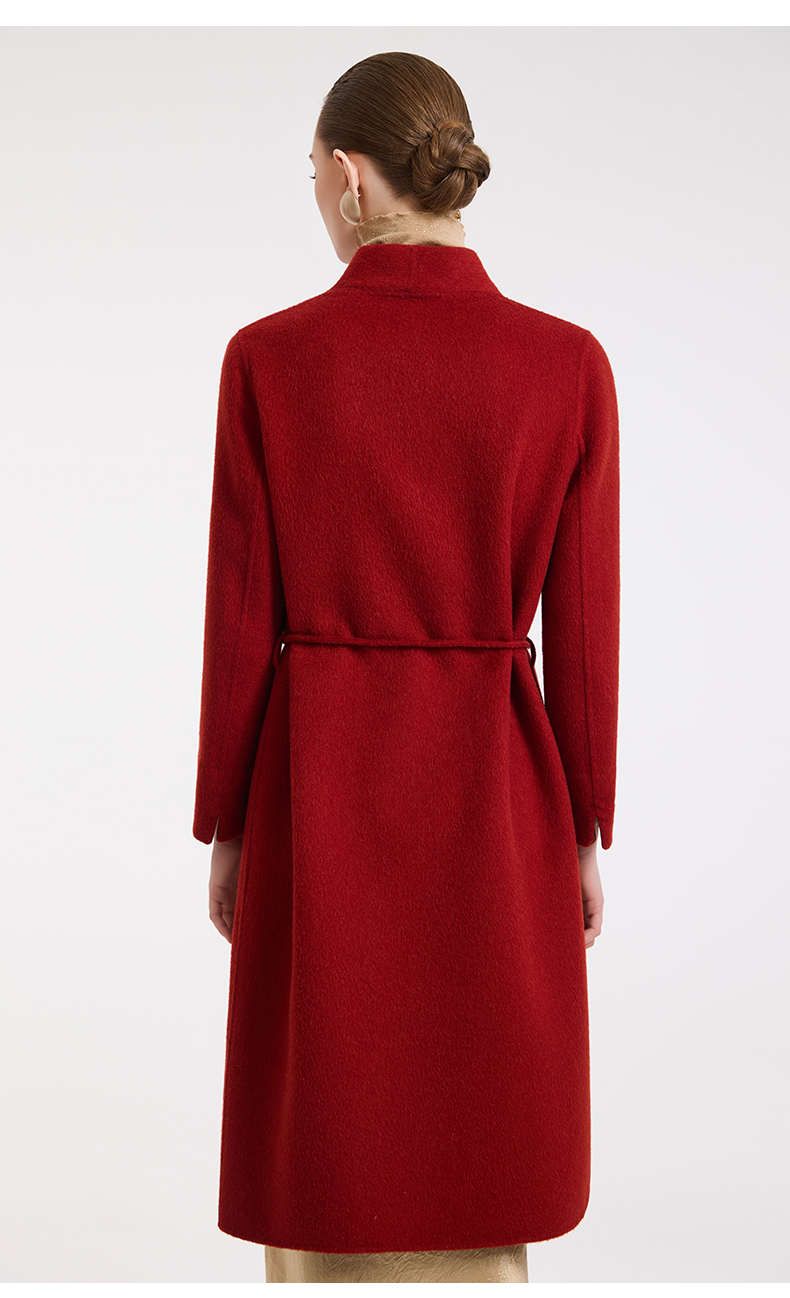 乔万尼100%驼绒气场朱砂红高级感中长款毛呢大衣ED4A740